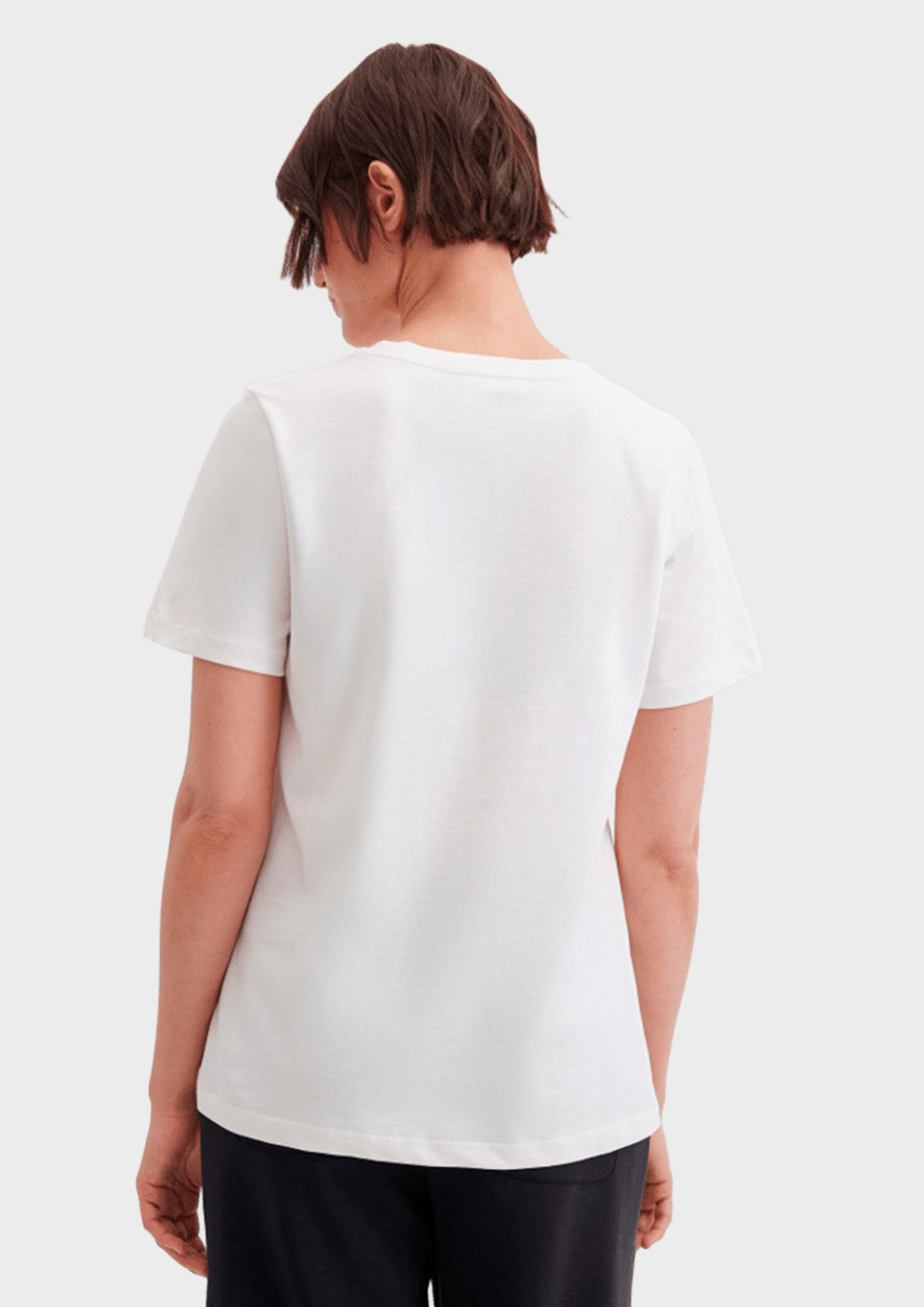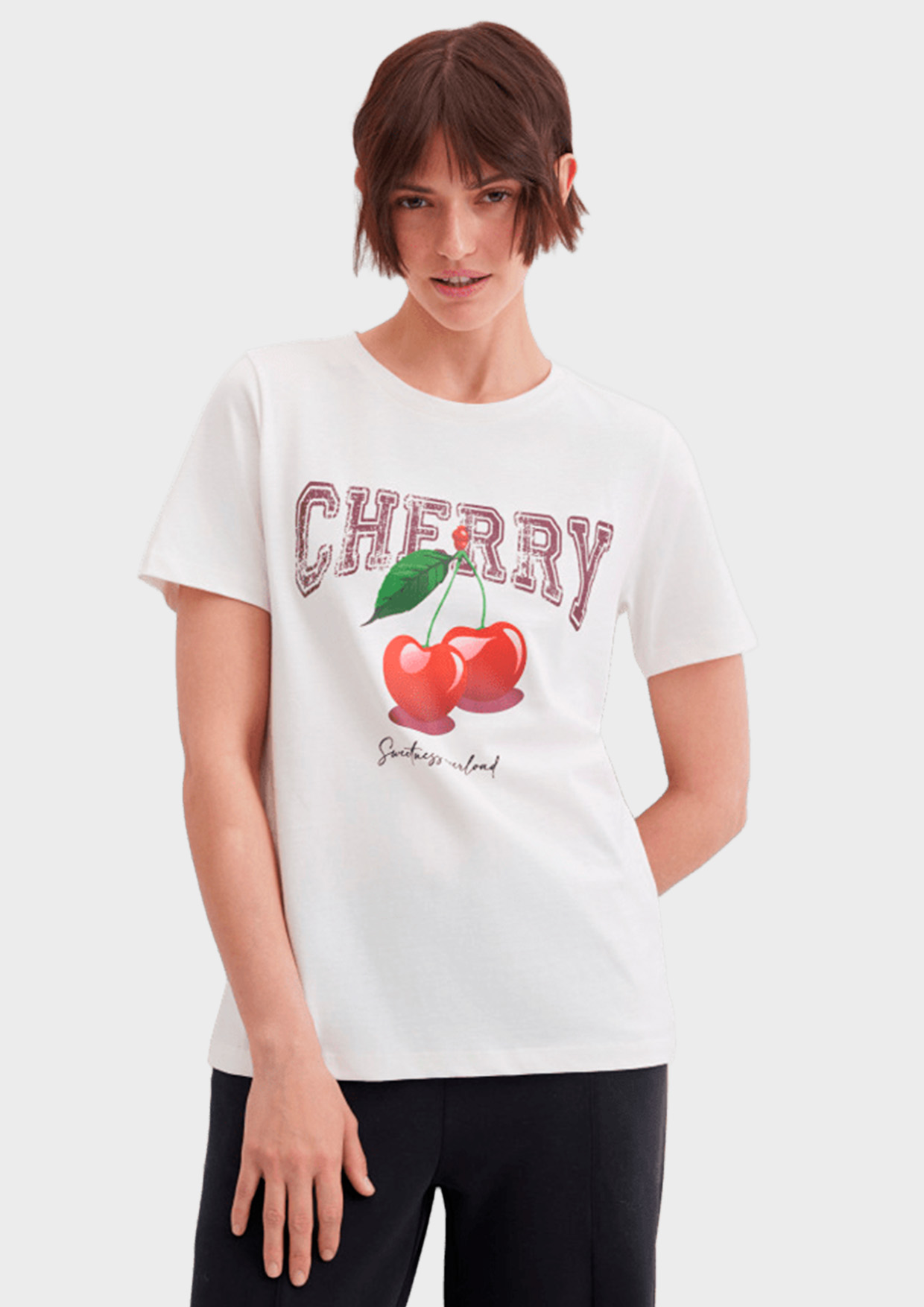 Базовая футболка прямого кроя из стопроцентного хлопка с лёгким стрейчем. Модель с коротким втачным рукавом и круглым вырезом. Спереди украшена принтом с ярким рисунком, подчёркивающими современный стиль и динамику.