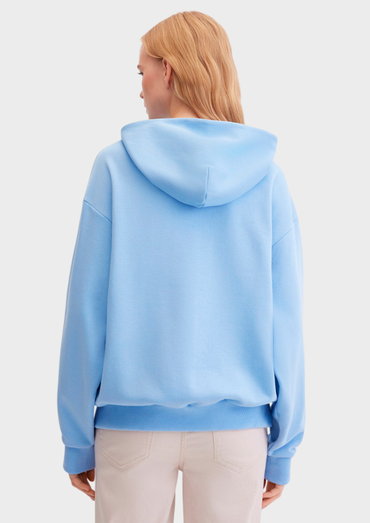 Свободный худи прямого кроя из мягкого смесового хлопка с модалом, что делает ткань комфортной, прочной, пластичной и дышащей . Спущенный рукав формирует расслабленную посадку, манжеты и нижняя резинка обеспечивают аккуратный силуэт и фиксацию и держат форму. Капюшон делает модель практичной в любую погоду.