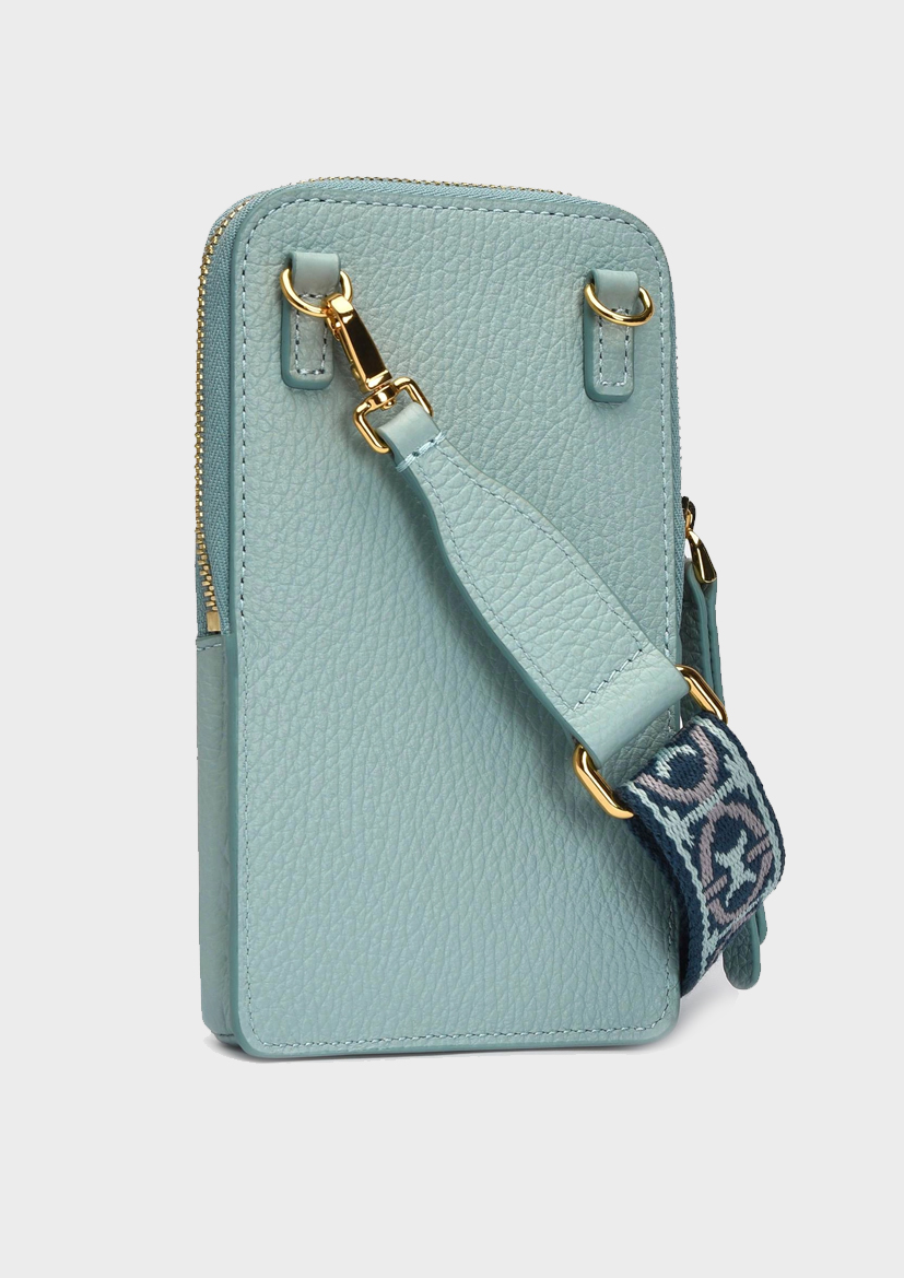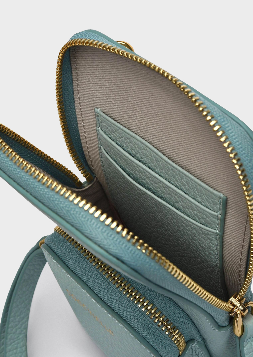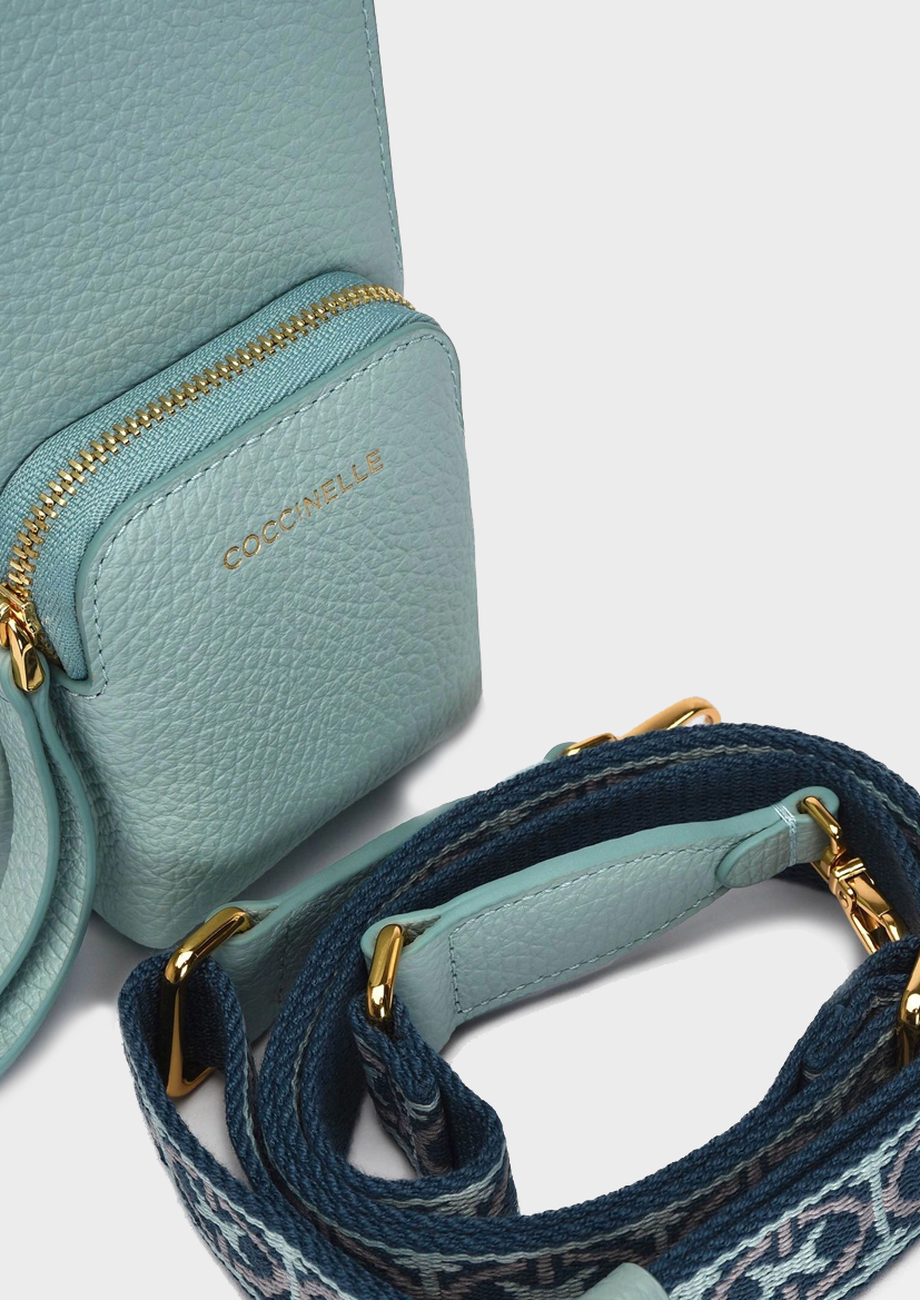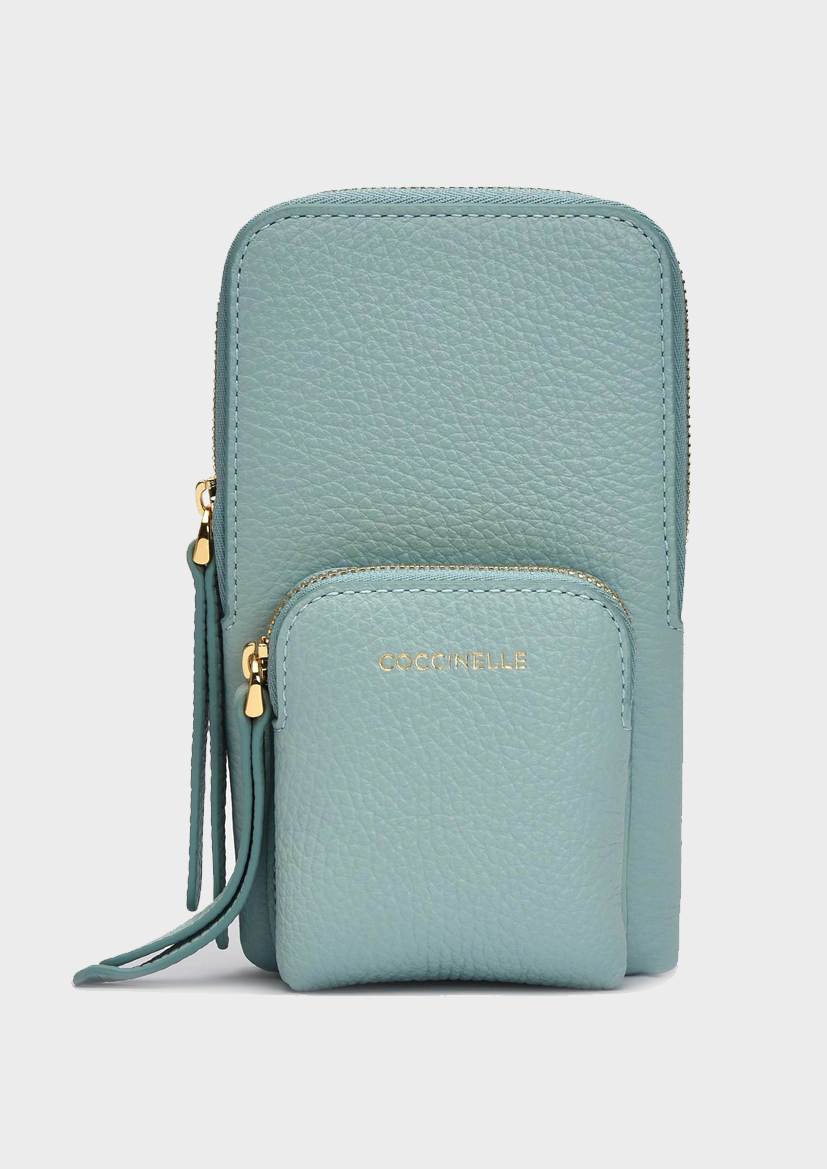 Бирюзовая сумка-чехол для телефона от бренда COCCINELLE — стильный аксессуар из натуральной кожи. Прочный материал обеспечивает надежную защиту устройства, а элегантный дизайн подчеркивает индивидуальность владельца. Удобная форма идеально подходит для ежедневного использования, сочетая практичность и модный внешний вид.
