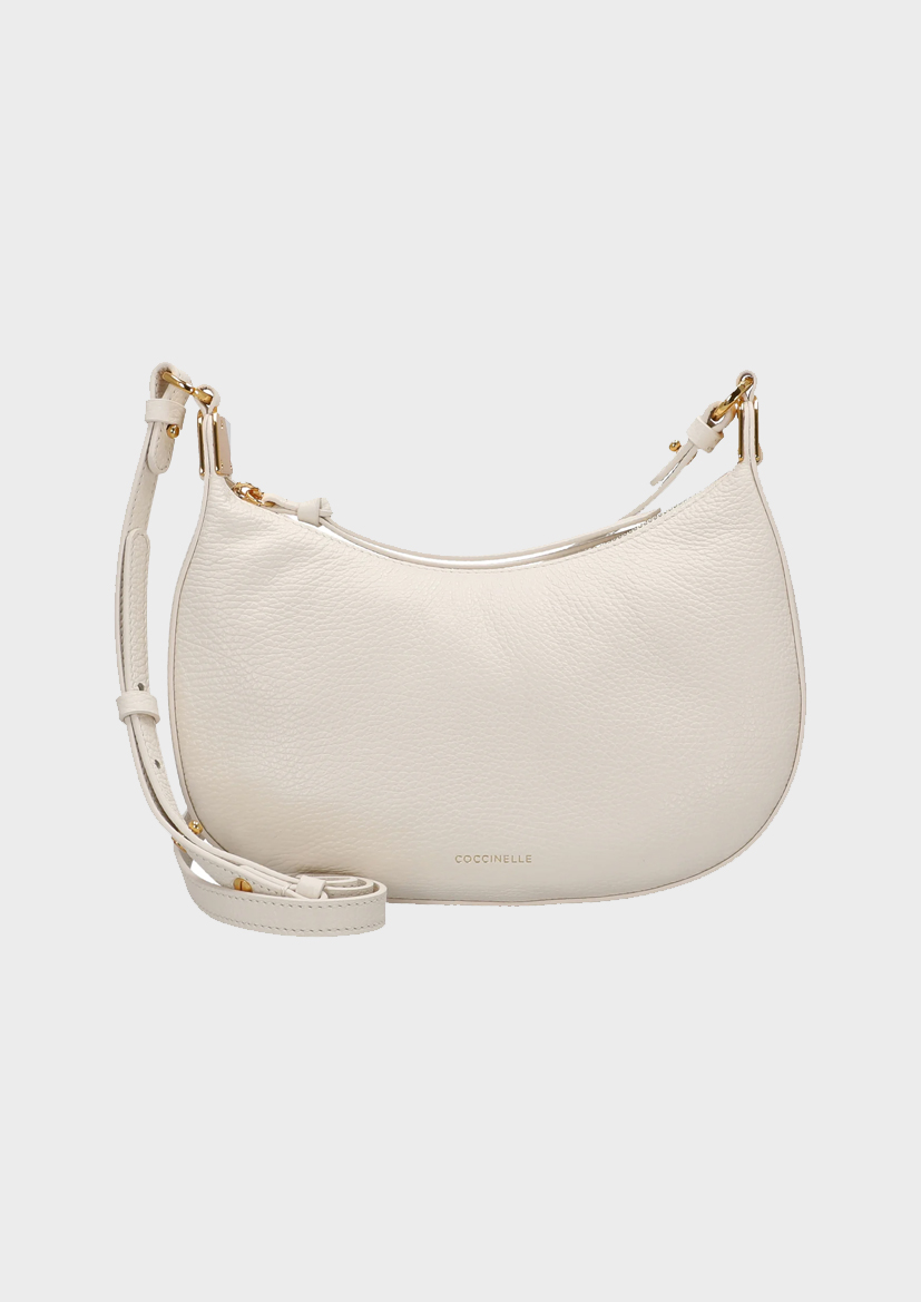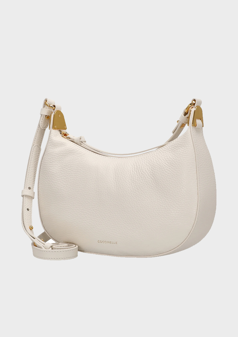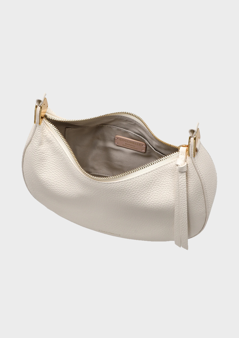 Сумка Coccinelle Fujiko элегантного жемчужно-белого цвета — модная находка для стильных женщин, которые ценят высококачественные материалы и неподвластный времени дизайн. Благодаря компактному размеру и изящным линиям она легко дополнит как повседневный образ, так и элегантный наряд для особого случая.