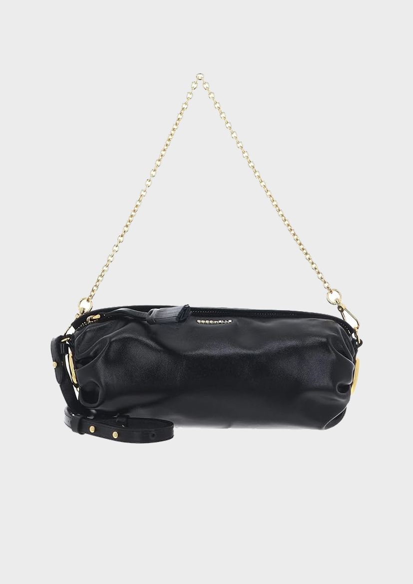 Эстетичная сумка через плечо COCCINELLE Roll Shiny Smooth выглядит безупречно. Детали золотистого цвета завершают образ. Внутри кожаной сумки достаточно места для смартфона, кошелька и других мелочей.