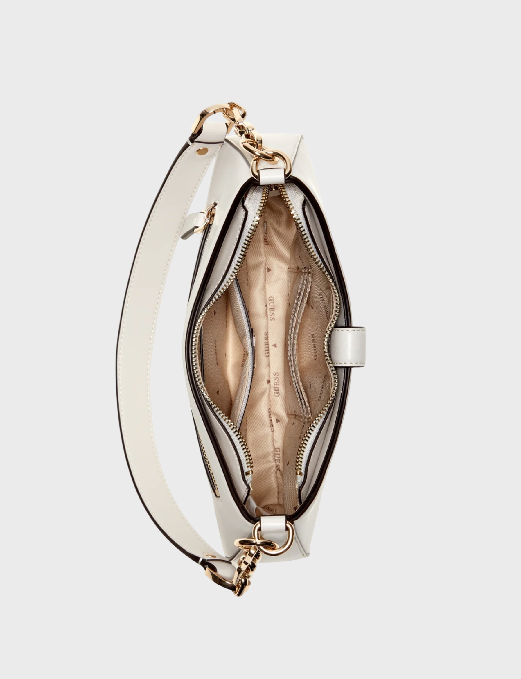 Женская сумка от бренда GUESS в молочном цвете. Изготовлена из качественного 100% полиуретана подчеркнёт ваш элегантный образ и станет незаменимым спутником в любой ситуации.