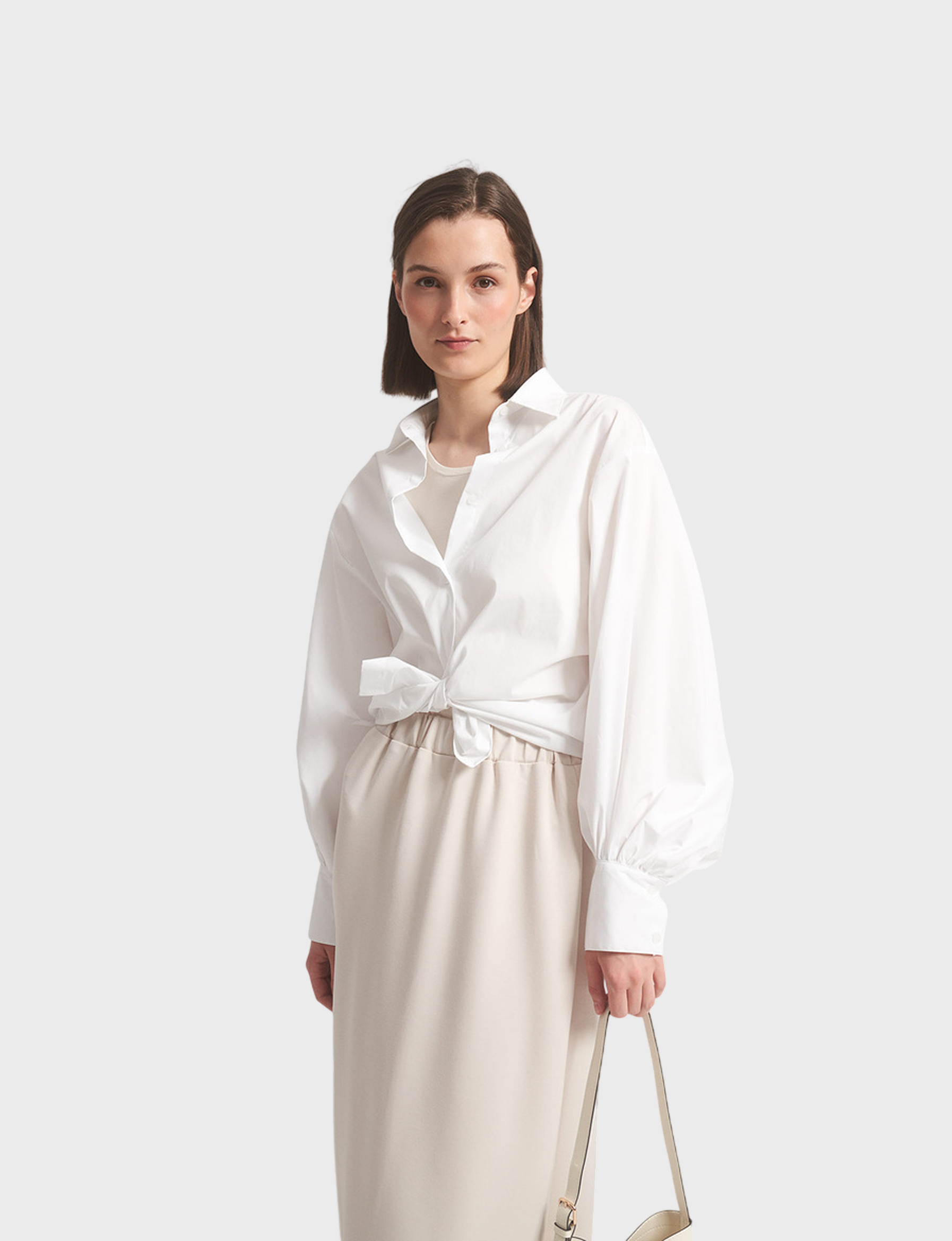 Белая блуза от бренда UNQ – Особые преимущества: - Комфорт благодаря сочетанию хлопка (60%), нейлона (37%) и эластана (3%). - Идеально подходит для сезона весна-лето 2026 года. - Универсальный стиль блузки позволяет сочетать её как с деловыми юбками и брюками, так и создавать непринужденные повседневные образы.