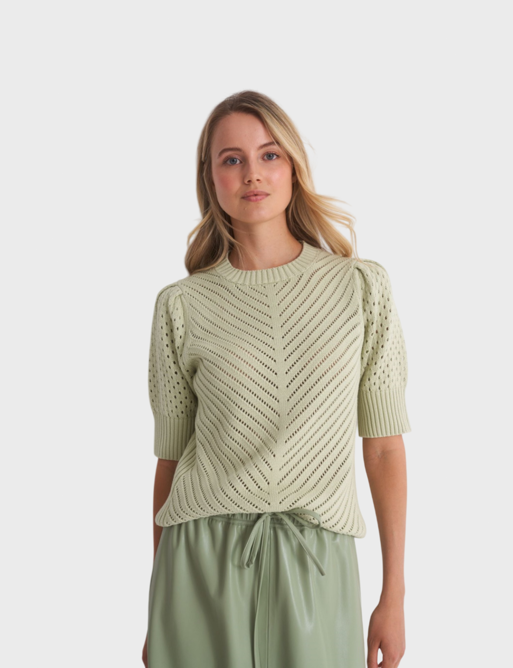 Джемпер от бренда UNQ – ваш стильный выбор! Изящно смотрится благодаря мягкому зелёному оттенку и качественному составу (100% хлопка).