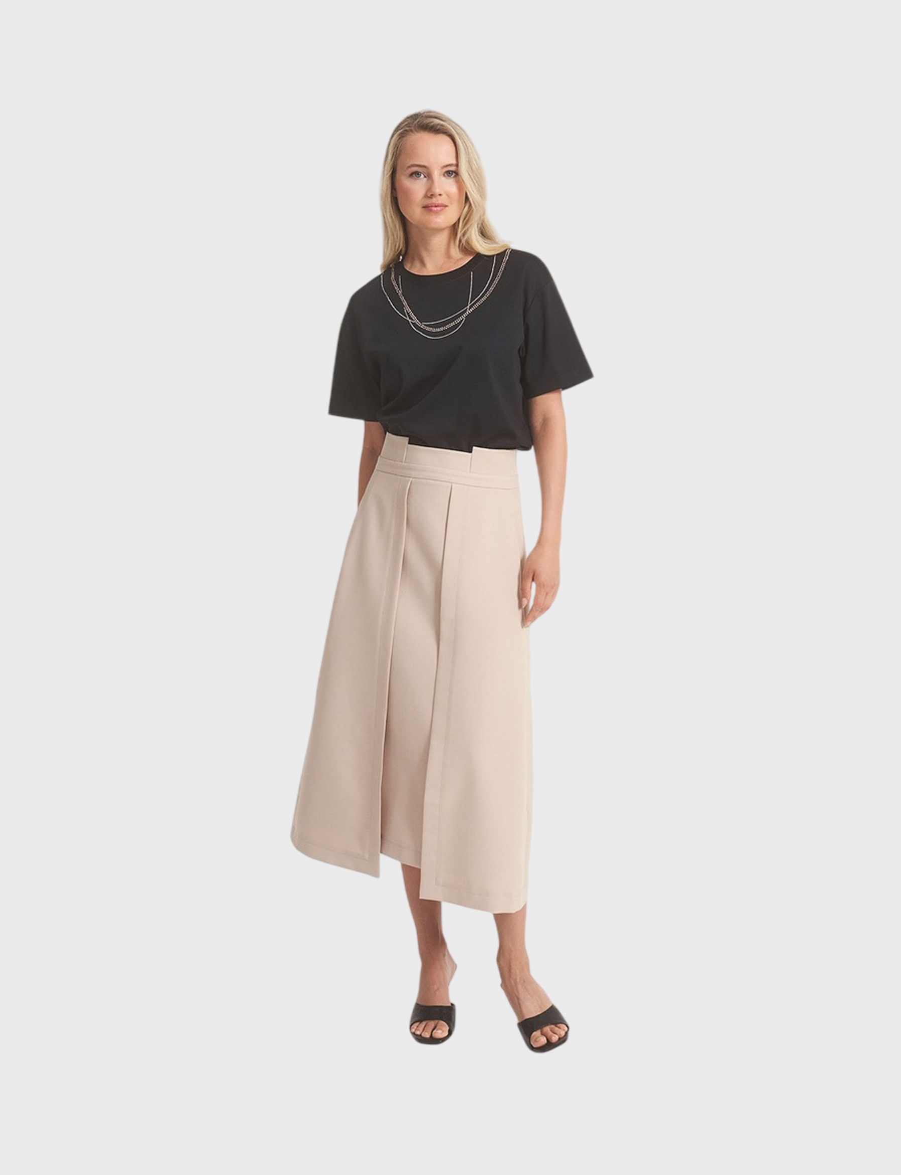 Бежевая юбка от бренда UNQ – В составе 77% полиэстера, 18% раяна и 5% спандекса обеспечивает комфорт и свободу движений.