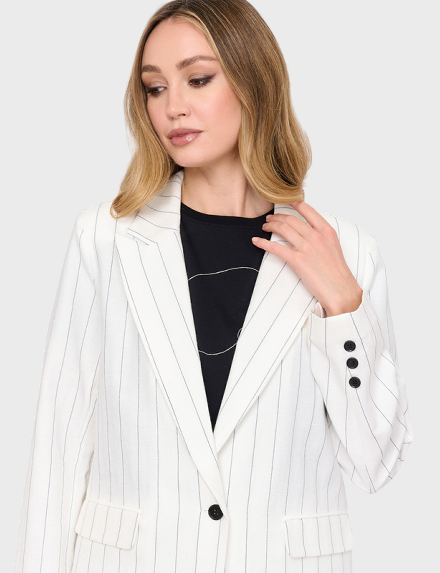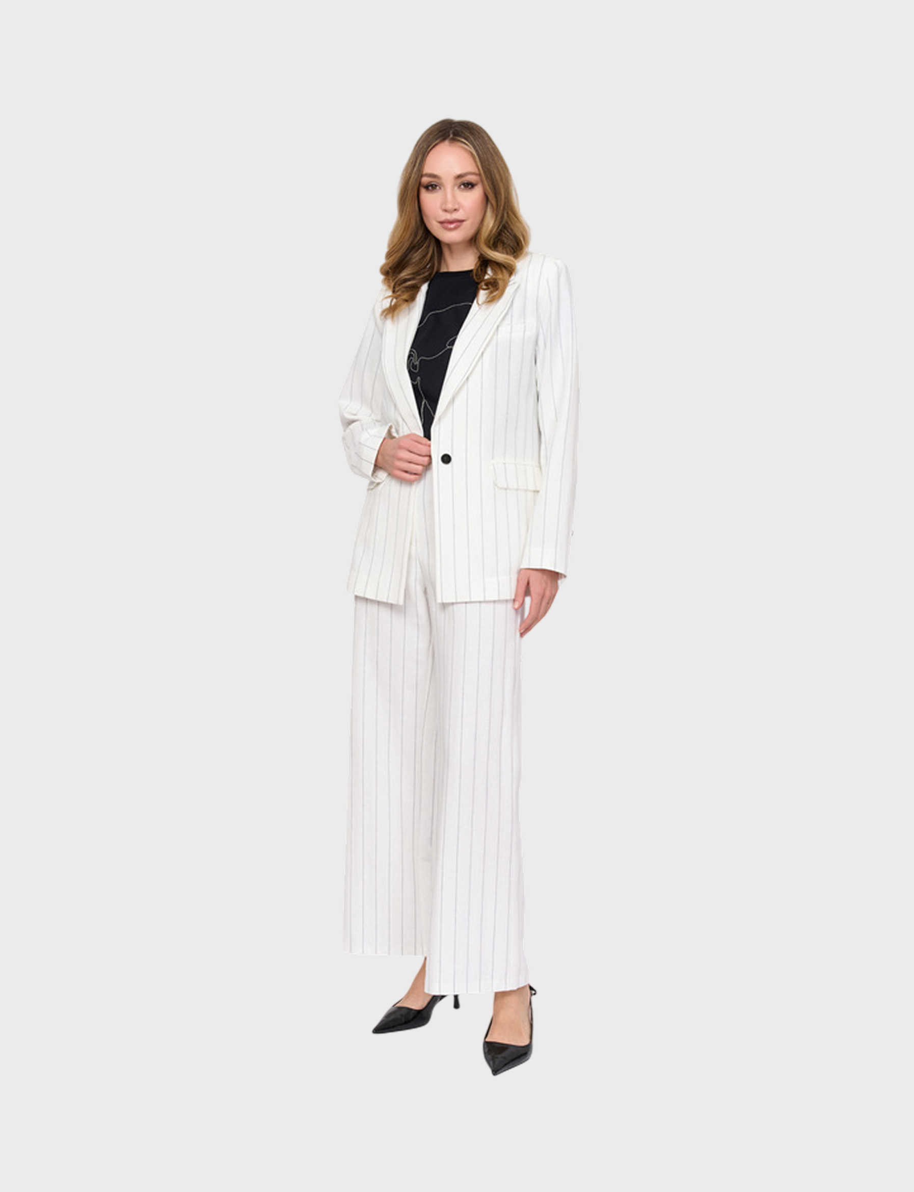 Белый жакет от бренда UNQ — стильный акцент вашего гардероба! Изящный крой подчеркивает фигуру, а сочетание льна (55%) и хлопка (45%) обеспечивает комфорт и свободу движений.