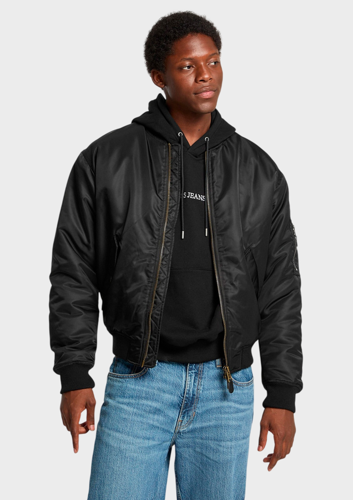 Мужская куртка-бомбер от бренда GUESS Jeans – стильный выбор для весны-лета! 100%-й полиамид верха обеспечивает прочность и износостойкость, наполнитель из полиэстера сохраняет тепло. Уход за одеждой прост и удобен. Прямой крой подчеркивает фигуру, а детали (воротник-стойка, резинка на рукавах и поясе) обеспечивают комфорт и идеальную посадку на фигуре. Стильный черный цвет подходит ко всему гардеробу. Идеально сочетается со спортивным и повседневным стилем.