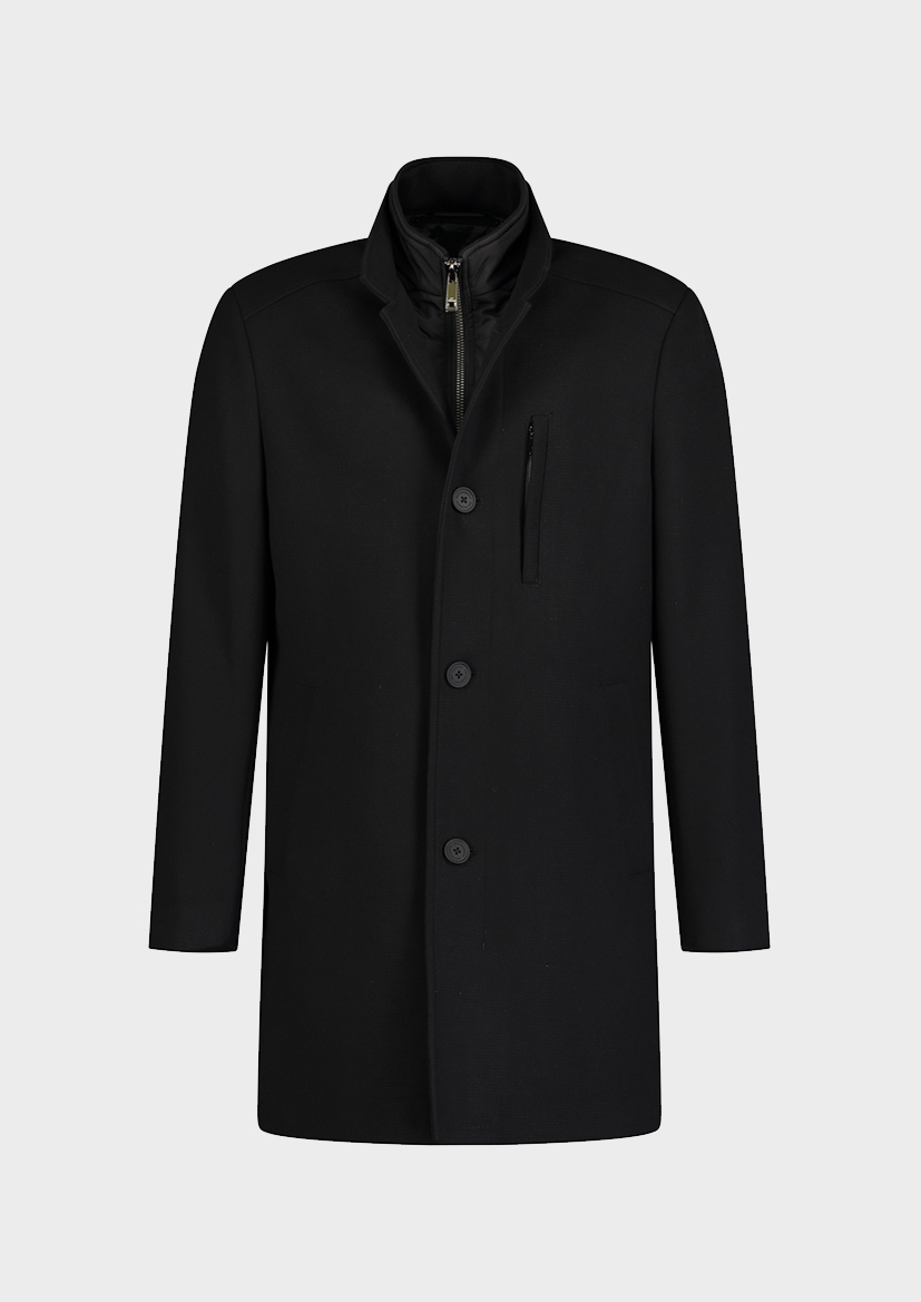 Черный цвет универсален и подойдет к любому образу. Износостойкий материал (верх: 70% полиэстер, 28% вискоза, 2% эластан) сохранит внешний вид пальто надолго, а теплый наполнитель из 100% полиэстера защитит от холода.