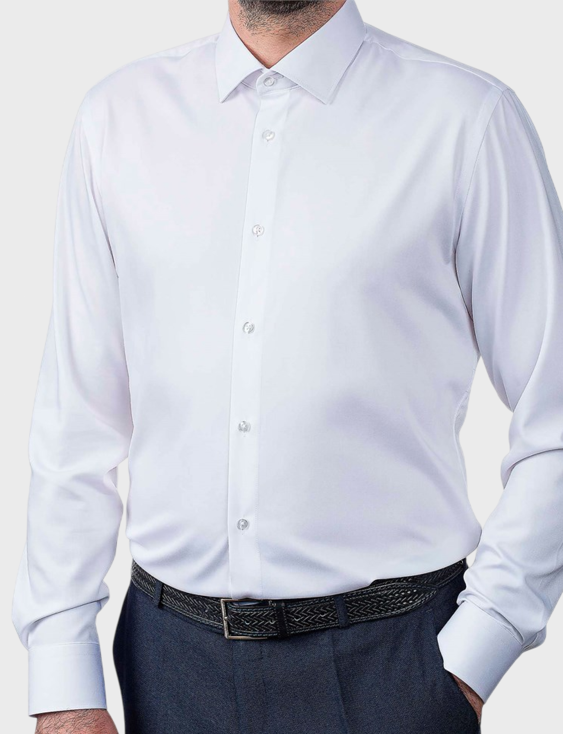 Мужская сорочка «Vester» — Белоснежная модель из инновационного состава (50% бамбука, 47% полиэстера, 3% эластана) обеспечивает комфорт в течение всего дня. Нежность бамбукового волокна, прочность современных материалов и идеальная посадка благодаря эластану делают эту рубашку незаменимой базовым элементом стиля.