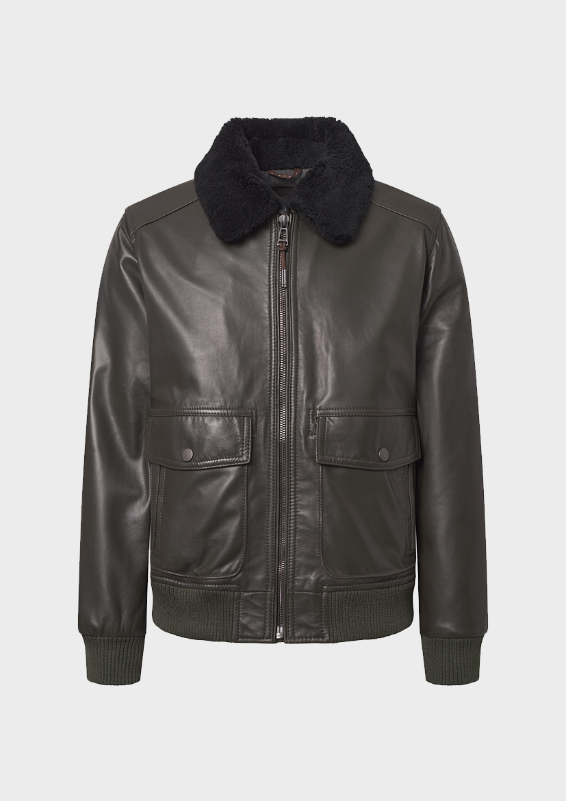 Мужская куртка из 100% кожи. Эксклюзивный тёмно-зелёный оттенок подчёркивает статус. Прочная натуральная кожа обеспечивает комфорт и защиту от непогоды.