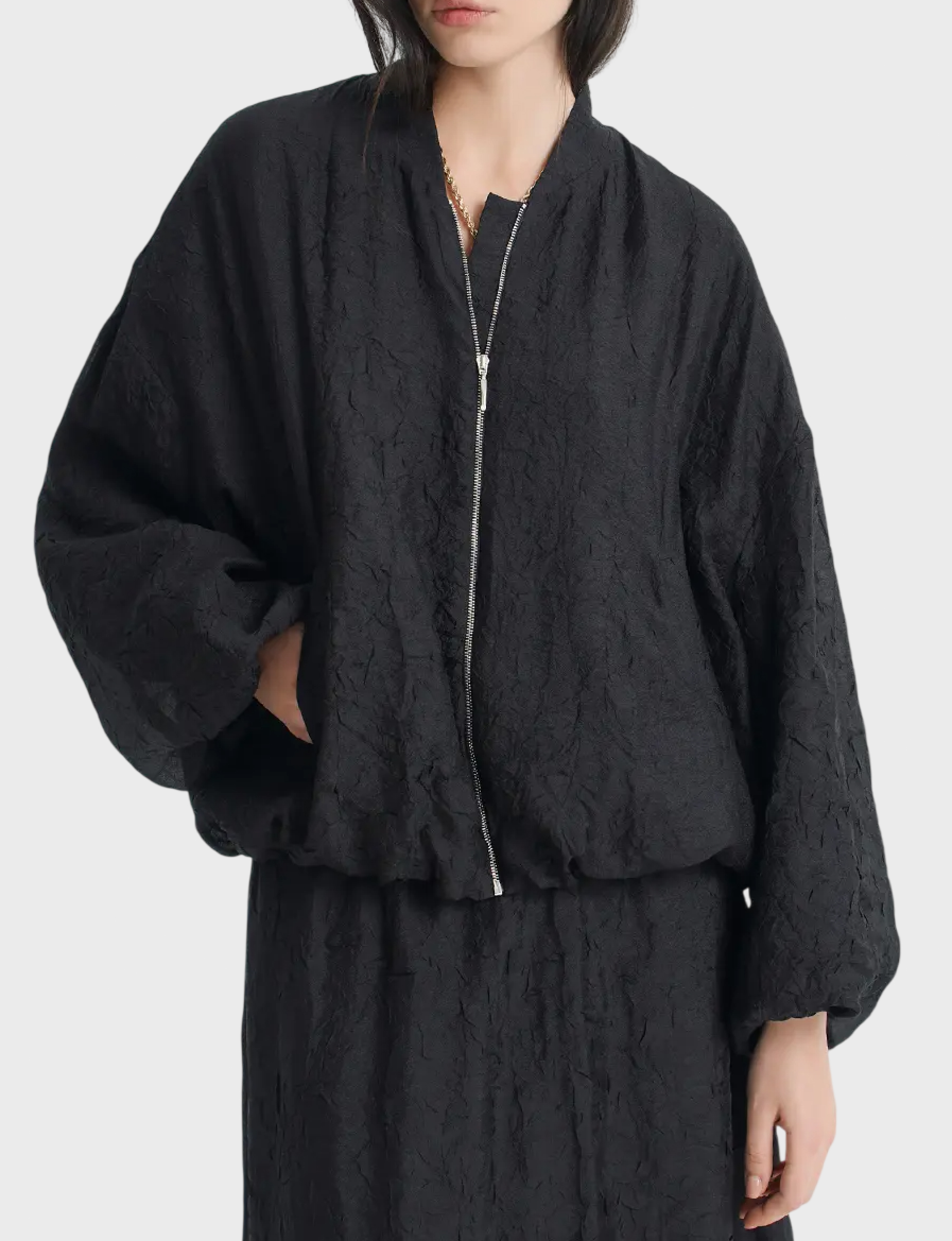 Чёрный бомбер от бренда FASHION REBELS – Изготовлен из качественного материала (78% вискозы, 22% rayon), обеспечивающего приятное к телу ощущение и долговечность. Подходит как базовый элемент гардероба, легко сочетается с джинсами, юбками и платьями.