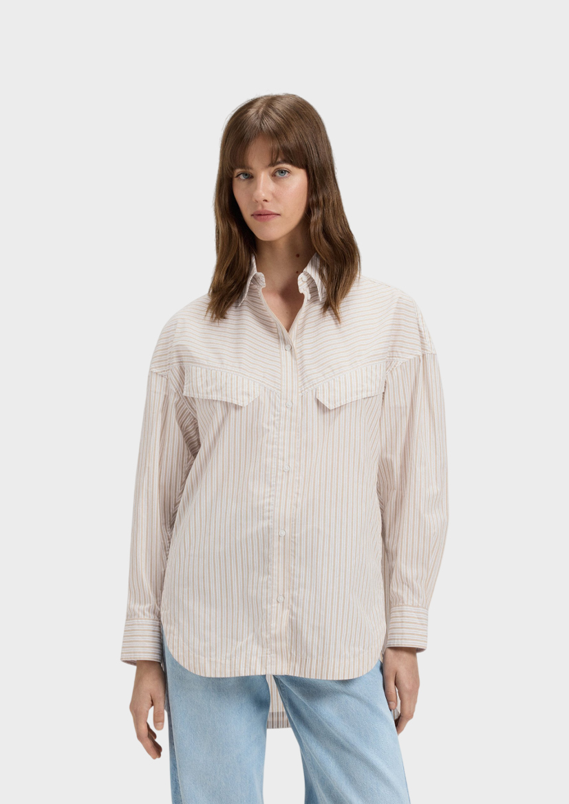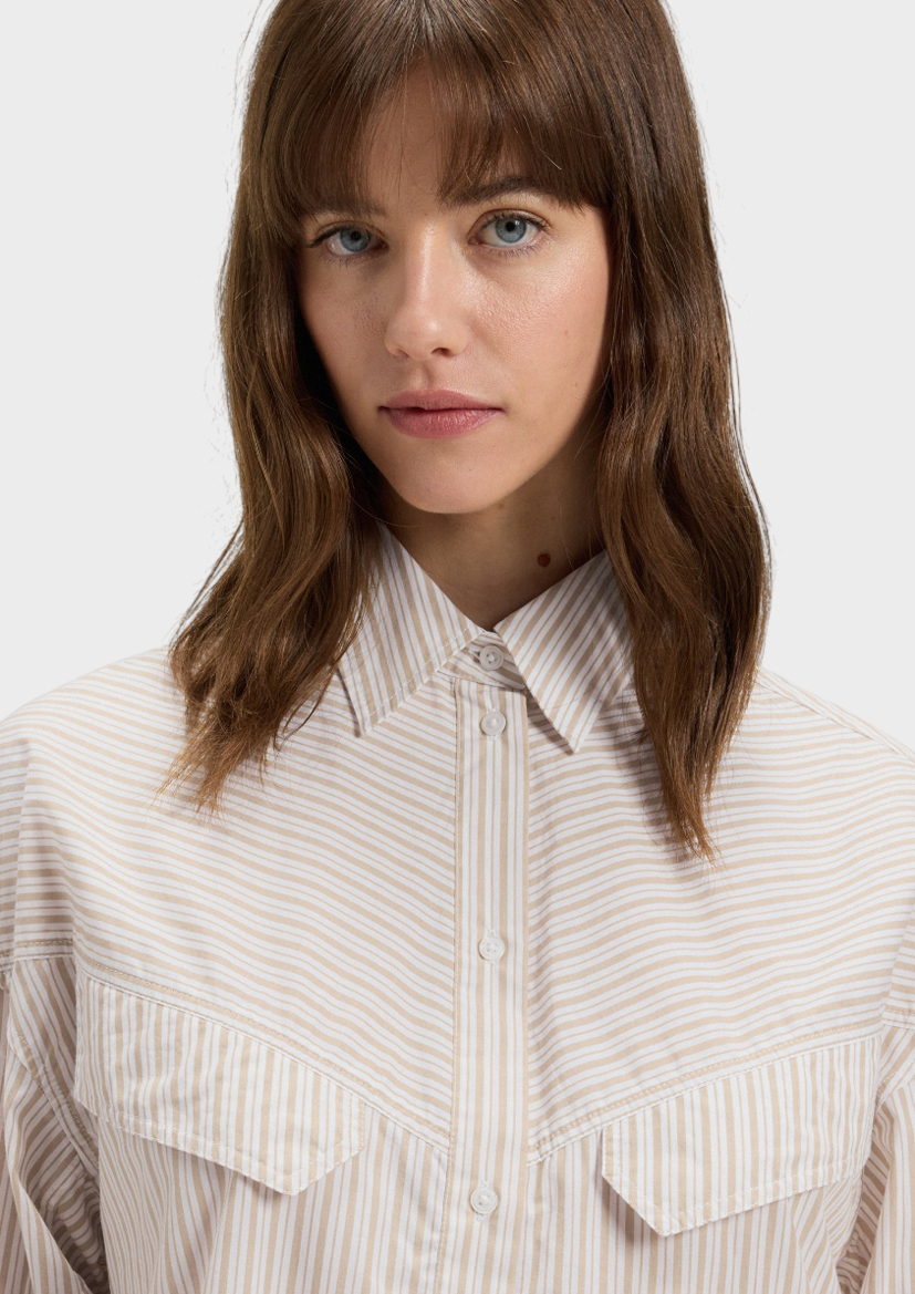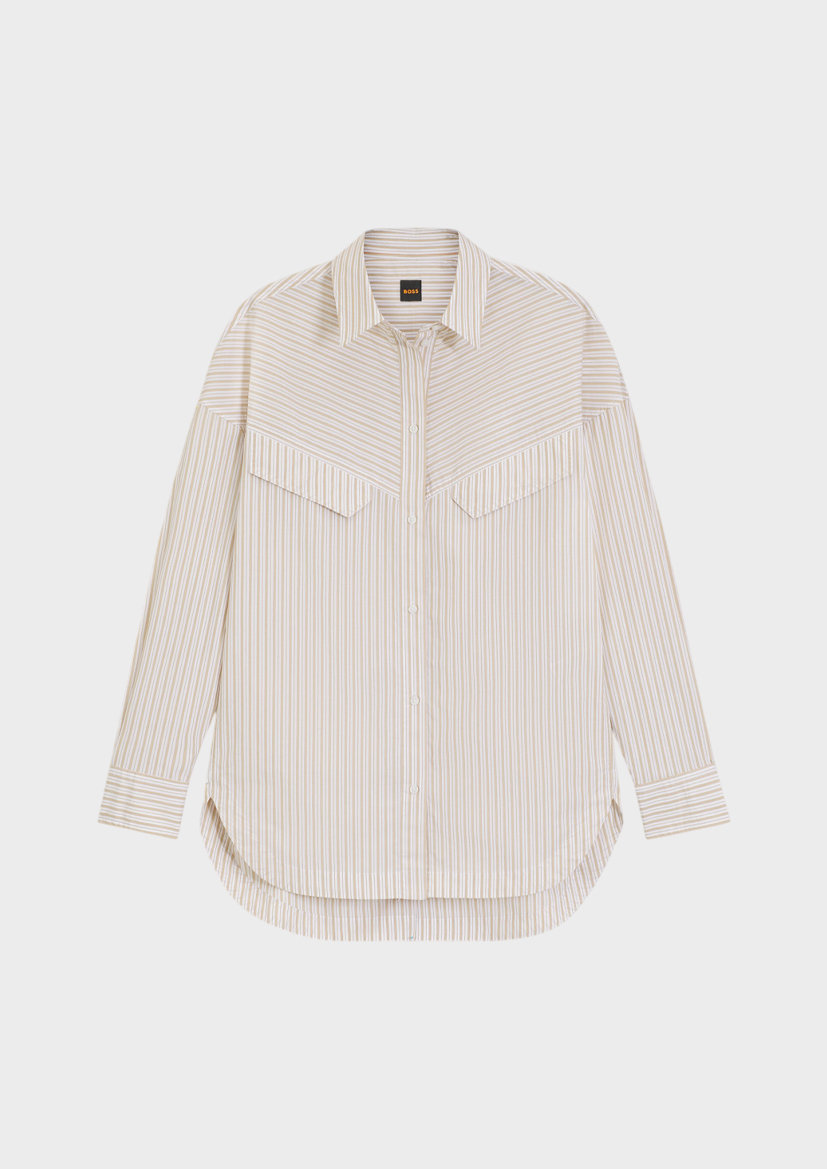 Белый с коричневыми акцентами – стиль и элегантность в каждой детали. Блуза от фирмы BOSS выполнена из качественного 100%-го хлопка, который дарит комфорт при носке.