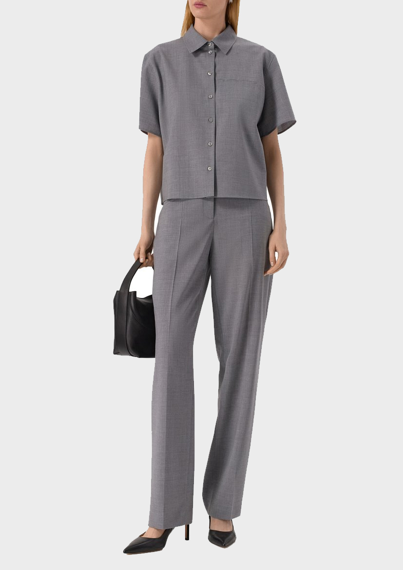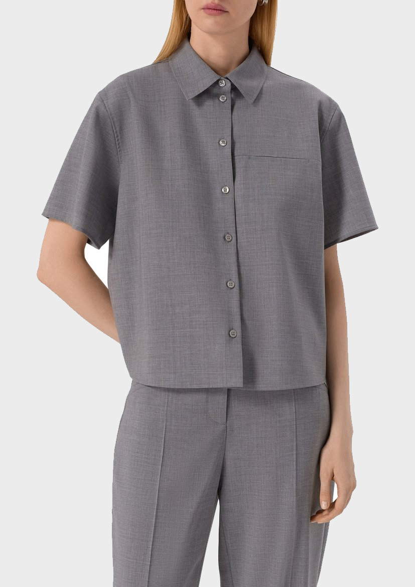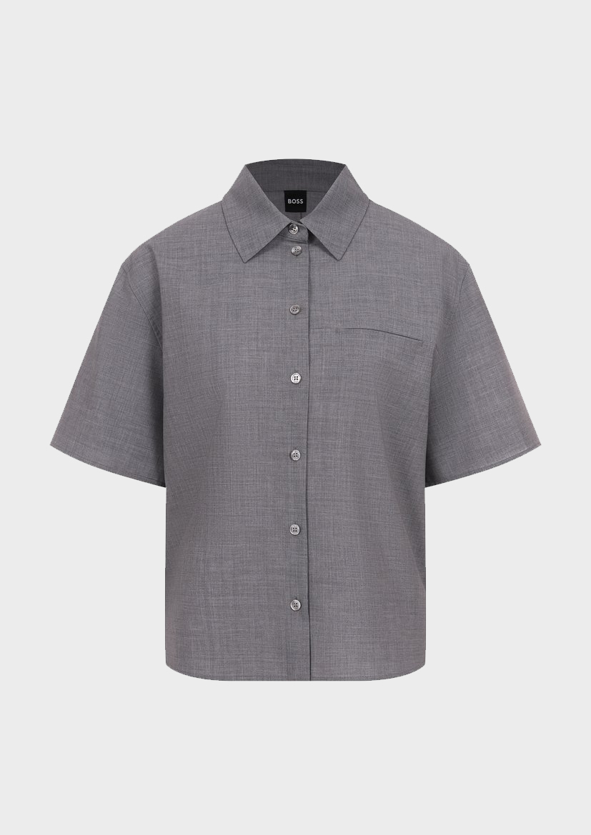 Укороченную рубашку Bulera кроя Regular fit выполнили из шерсти первого пострига. Модель c прорезным нагрудным карманом дополнили боковыми разрезами, над одним из которых – миниатюрная брендированная пластина.