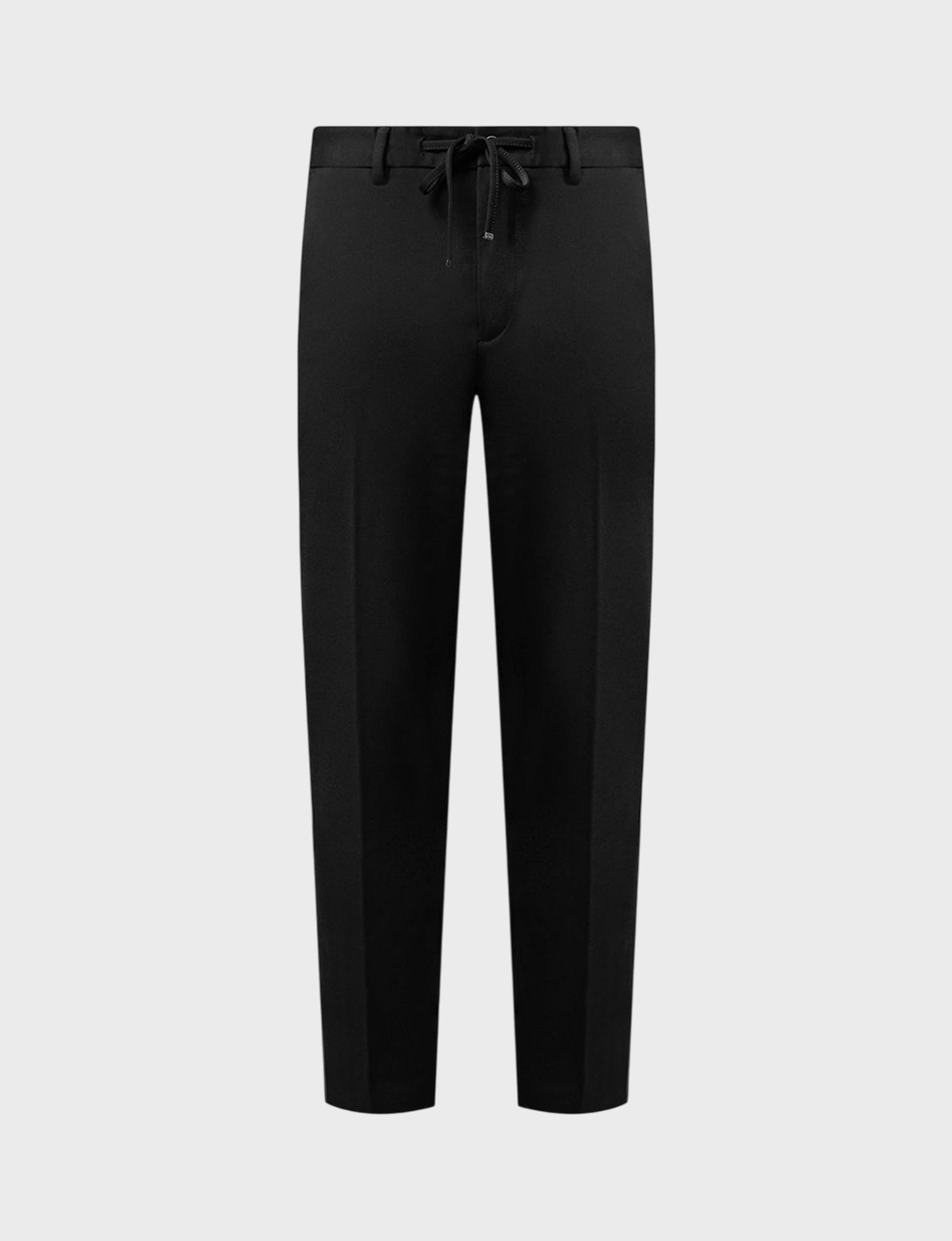 Брюки из лёгкой шерсти со шнурком на талии объединяют эстетику костюма и комфорт спортивного стиля. Мягкий материал и расслабленный крой обеспечивают свободу движений. Универсальный вариант для динамичного повседневного гардероба.
