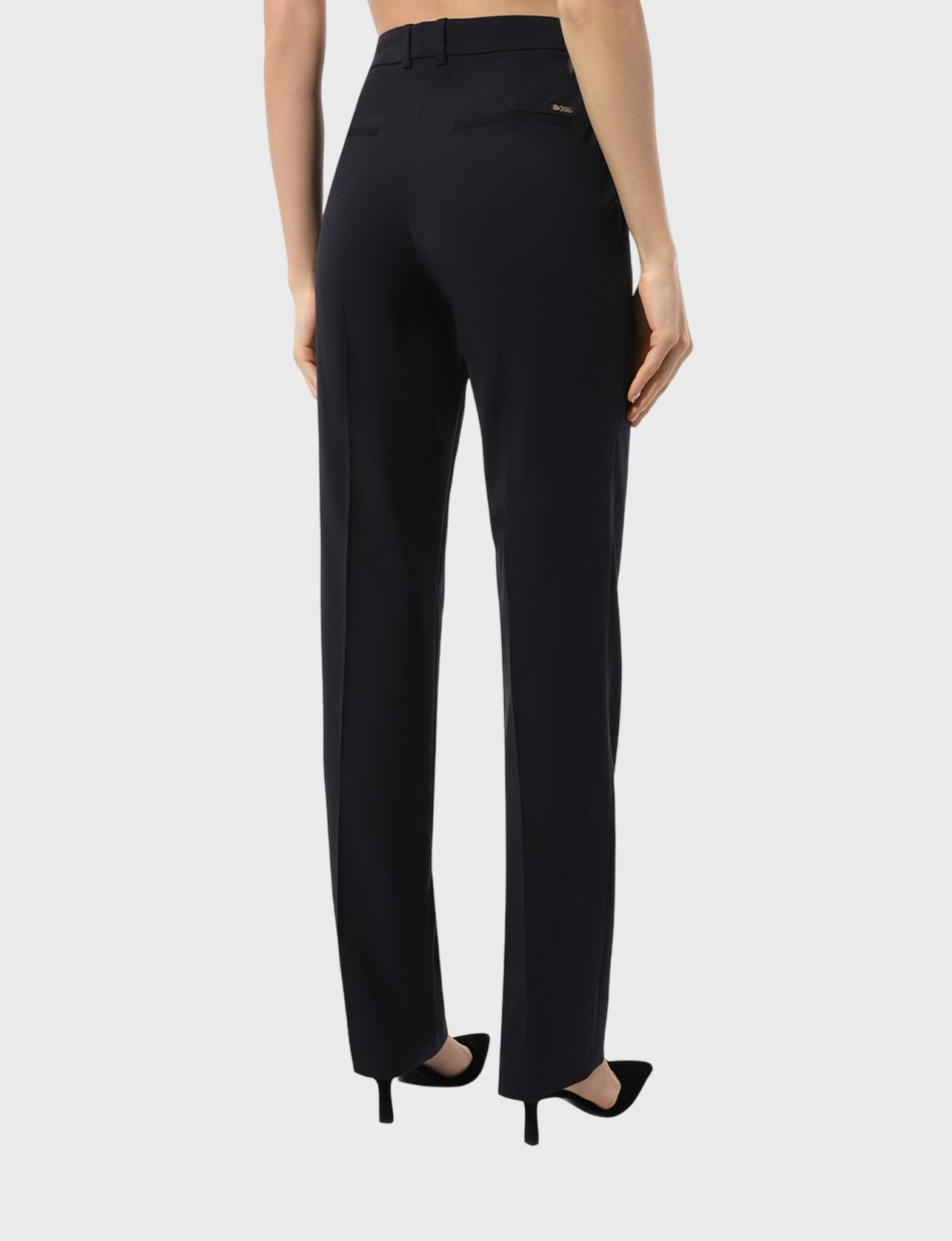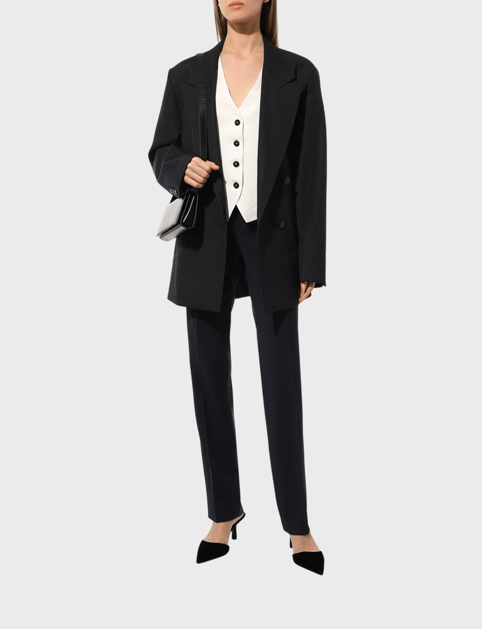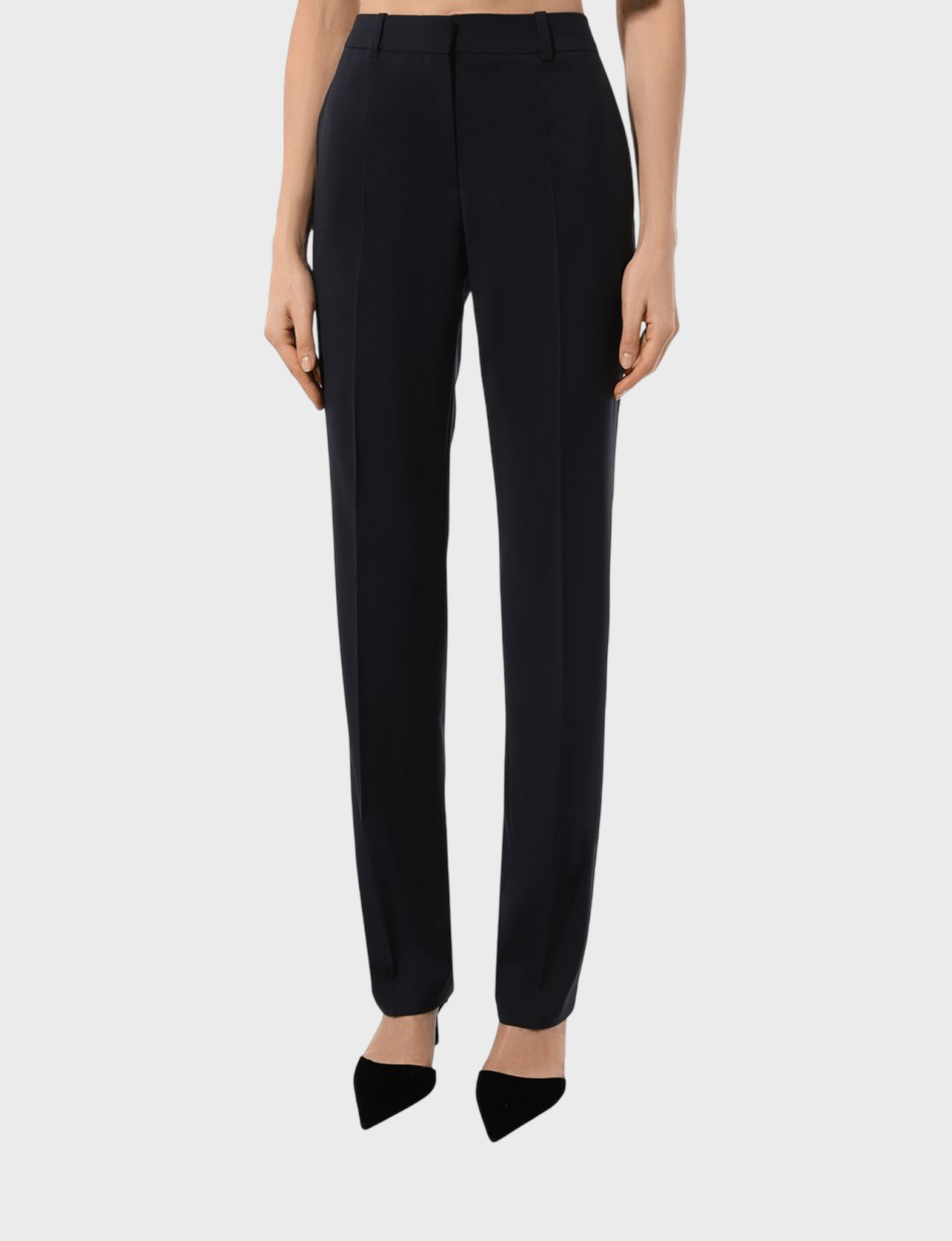 Изящные линии подчеркнут фигуру, а высококачественная 100%-ная шерсть обеспечит комфорт даже в самые прохладные дни. Тёмно-синий оттенок универсален и легко сочетается с различными верхами.