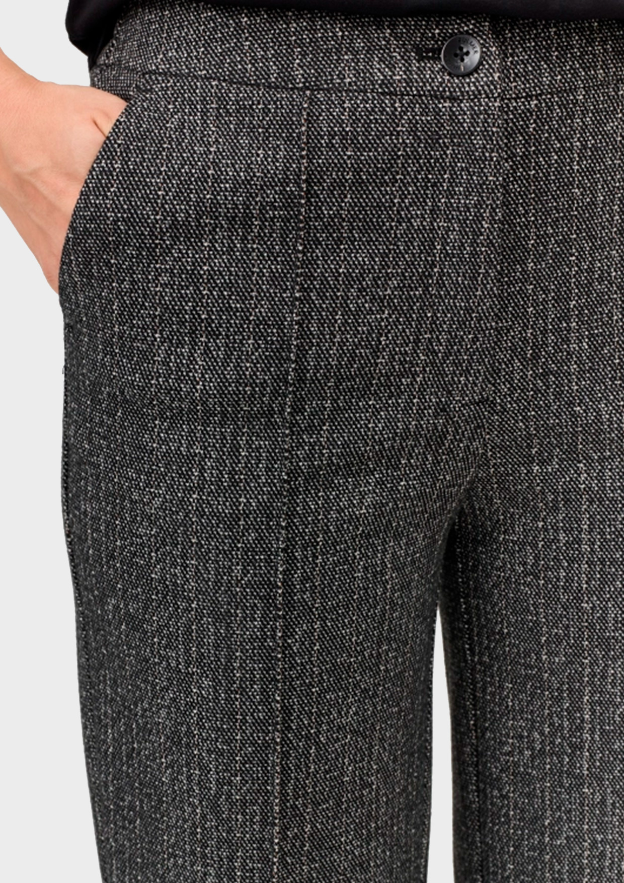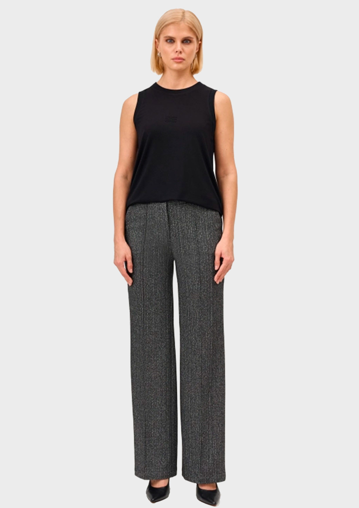 Широкие трикотажные брюки с застроченными стрелками. Свободный силуэт. Застежка на молнию и пуговицу. Резинка по линии талии сзади. Боковые карманы в швах. В составе вискоза и спандекс.