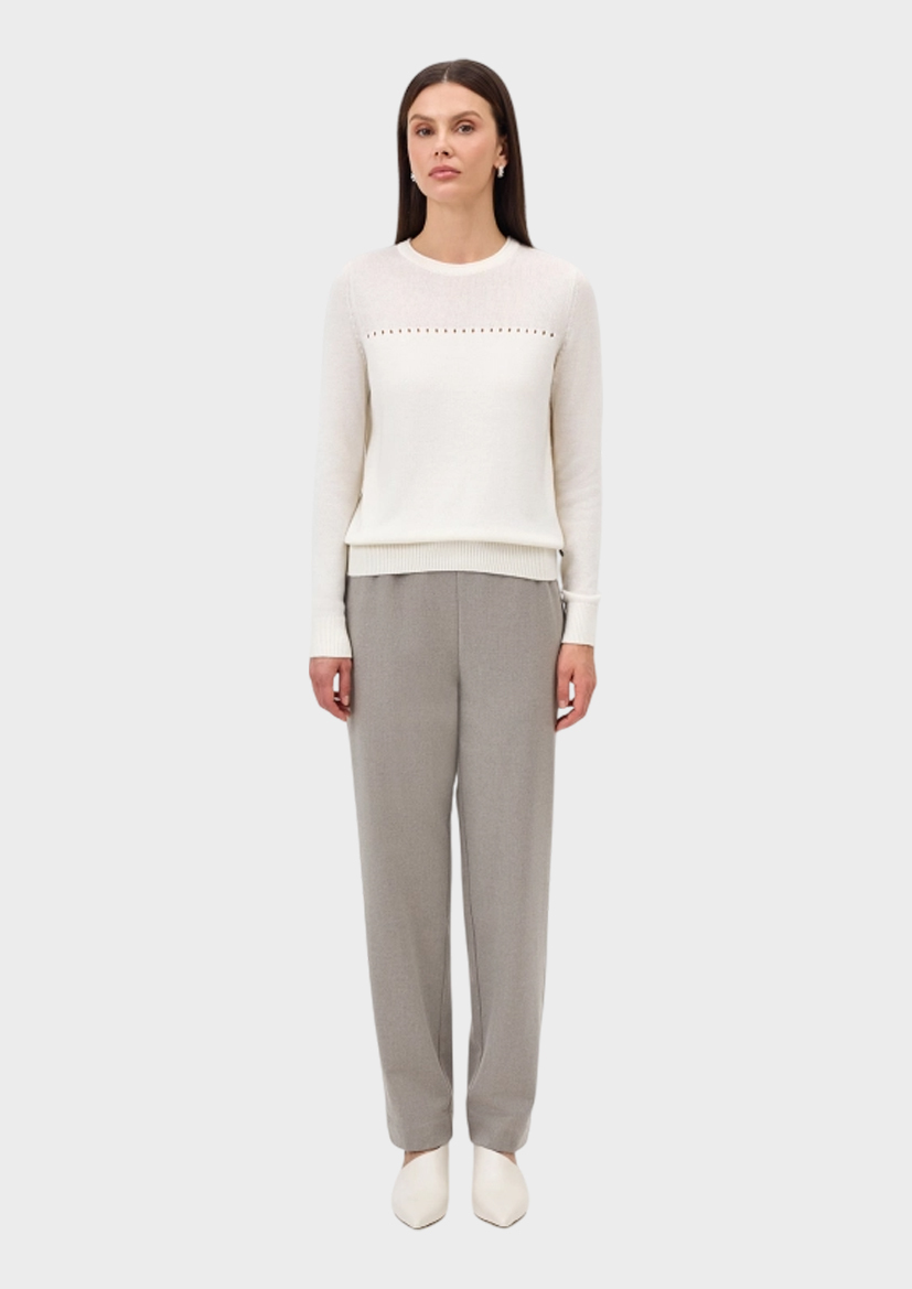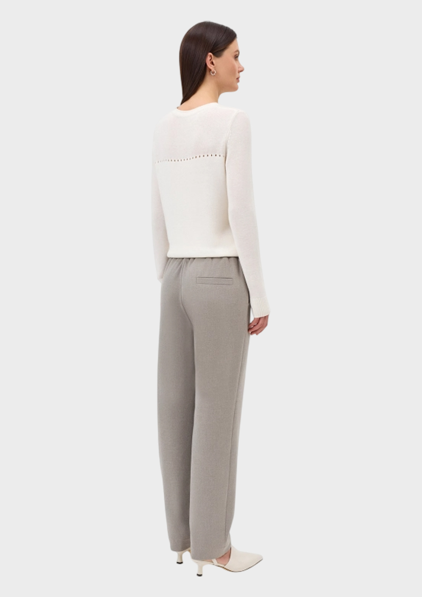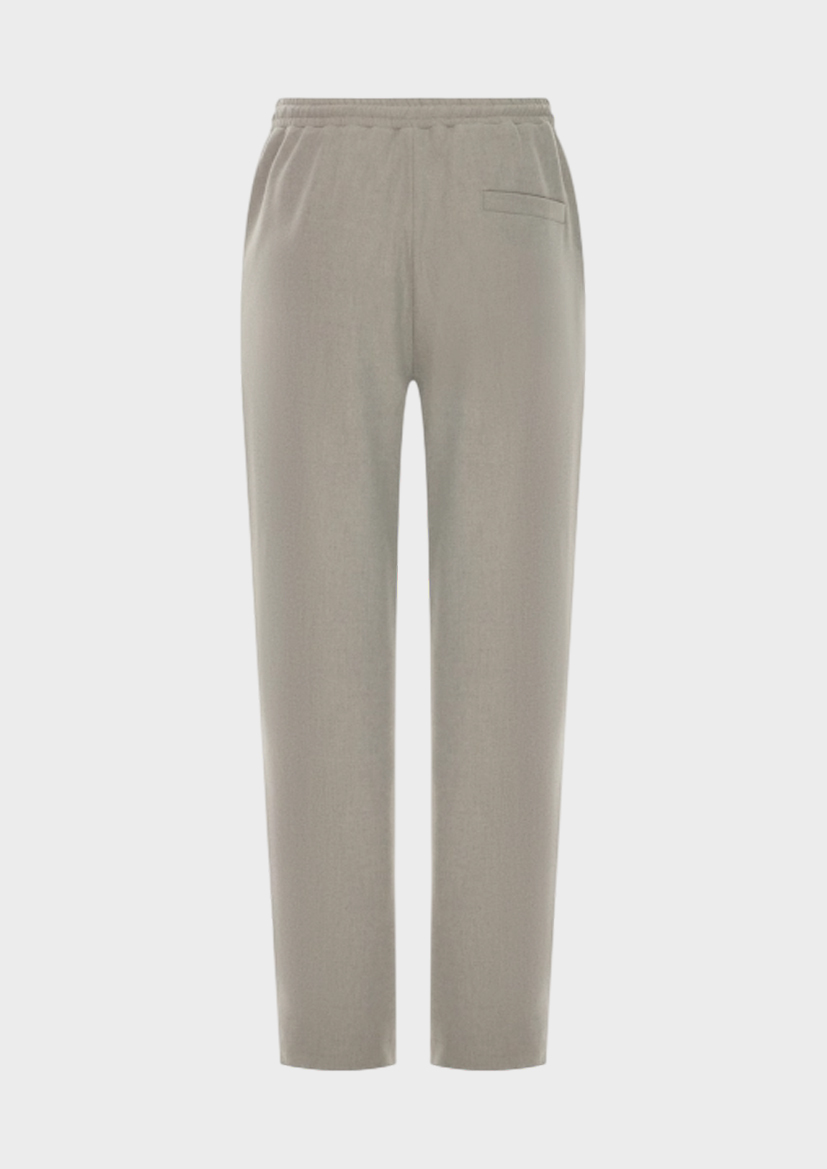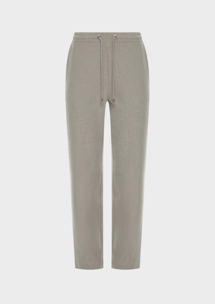 Текстильные брюки-джоггеры с шерстью в составе. Прямой силуэт. Резинка и шнурок по линии талии. Боковые карманы в швах. Задний прорезной карман. Дополнены шелковистой подкладкой.