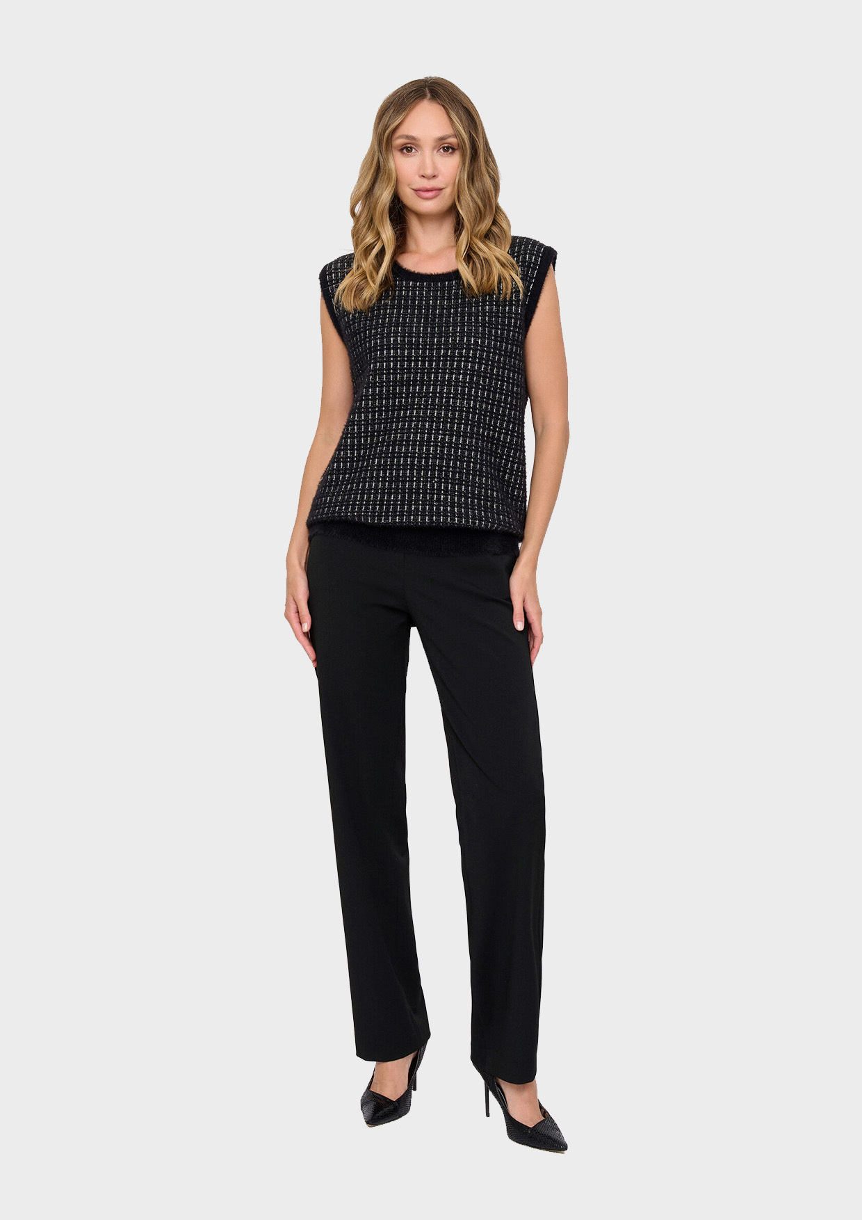 Прямой крой подчеркивает фигуру, а черный цвет универсален и подходит ко всему. Состав обеспечивает долговечность и свободу движений. Идеальный выбор для повседневного образа и деловых встреч!