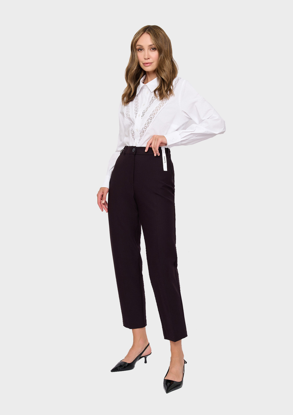 Прямые брюки Franco Vello из бордовой ткани – идеальный выбор для стильных женщин! Композиция материалов (75% вискозы, 20% полиэстера, 5% эластана) обеспечивает комфорт при носке, а элегантный дизайн подходит как для повседневного образа, так и для особого случая.