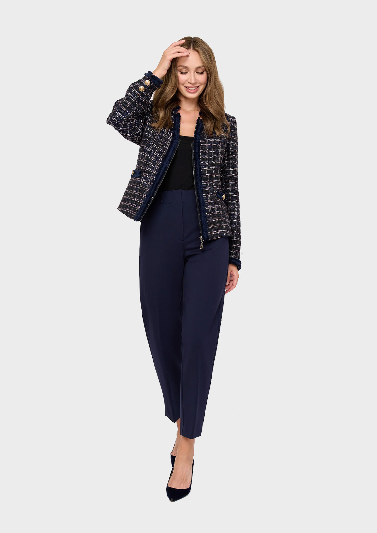 Прямые брюки тёмно-синего цвета — идеальный выбор для вашего гардероба! Элегантные, универсальные, подходят как для работы, так и для прогулок по городу. Средняя посадка обеспечивает комфортное ношение весь день, а стильный крой подчеркивает фигуру.