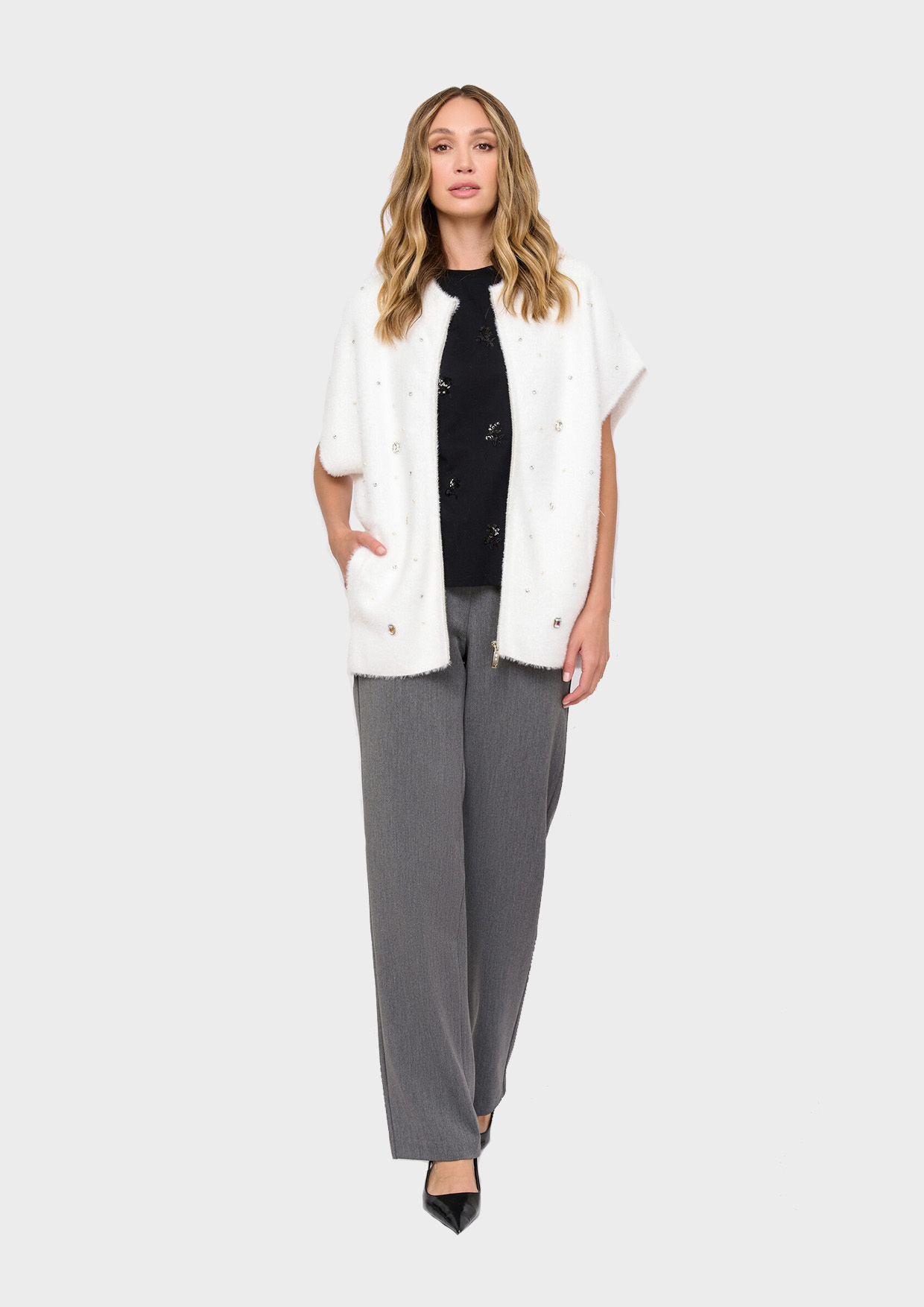Прямой крой подчеркивает фигуру, а серый цвет универсален и подходит ко всему. Состав обеспечивает долговечность и свободу движений. Идеальный выбор для повседневного образа и деловых встреч!