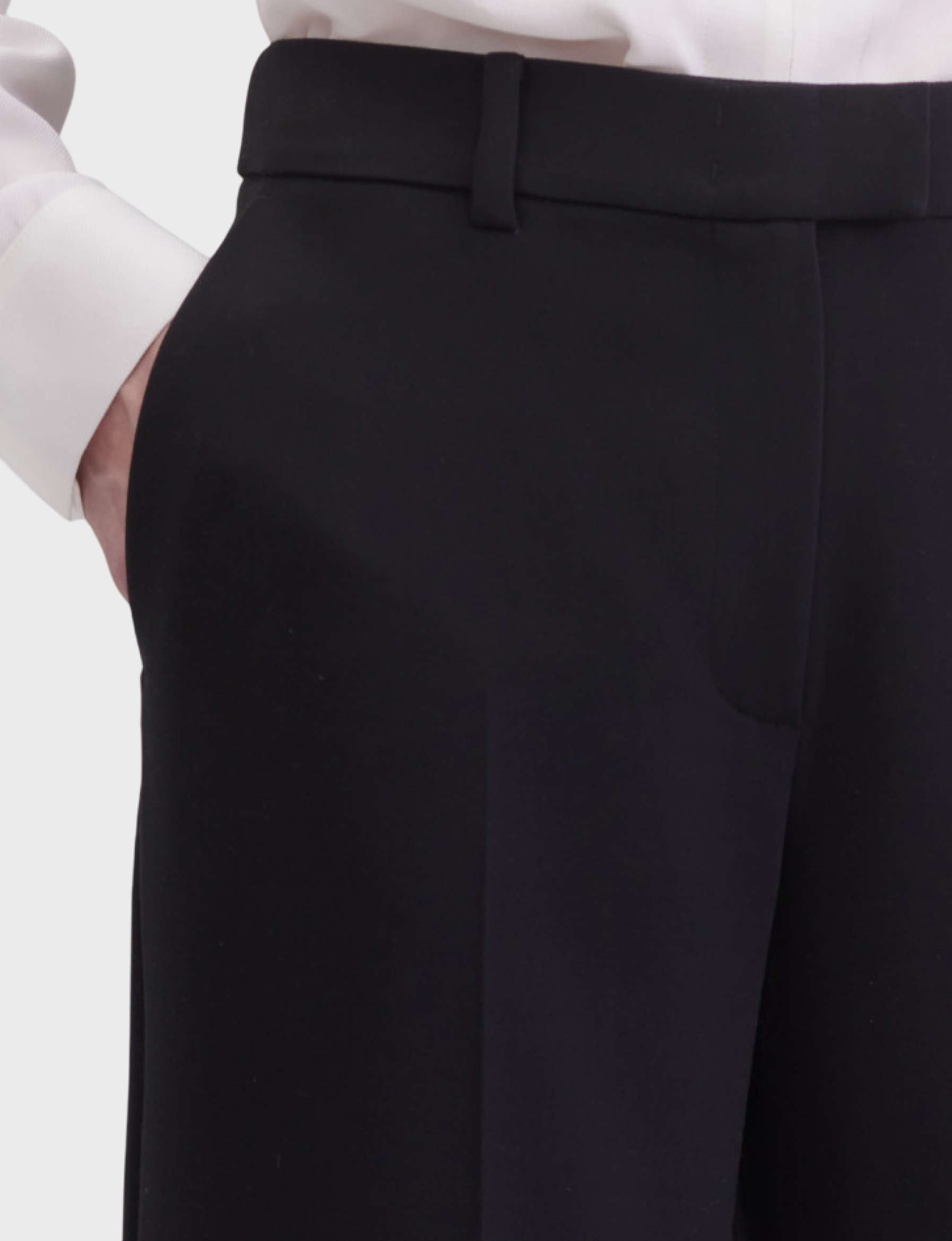 Классические брюки со стрелками и прямым кроем — базовая модель для офиса и городских луков. Посадка средней высоты и лаконичный дизайн подчёркивают строгую эстетику.