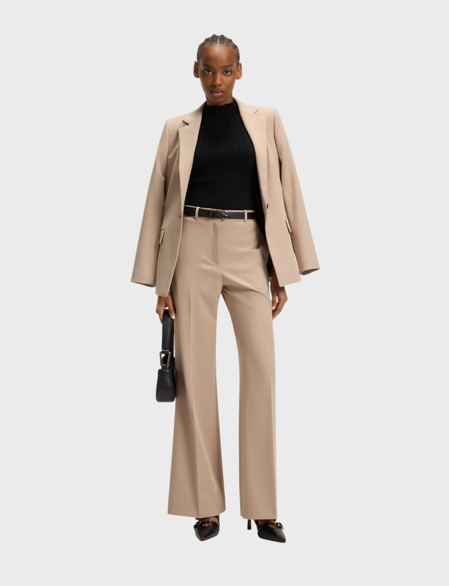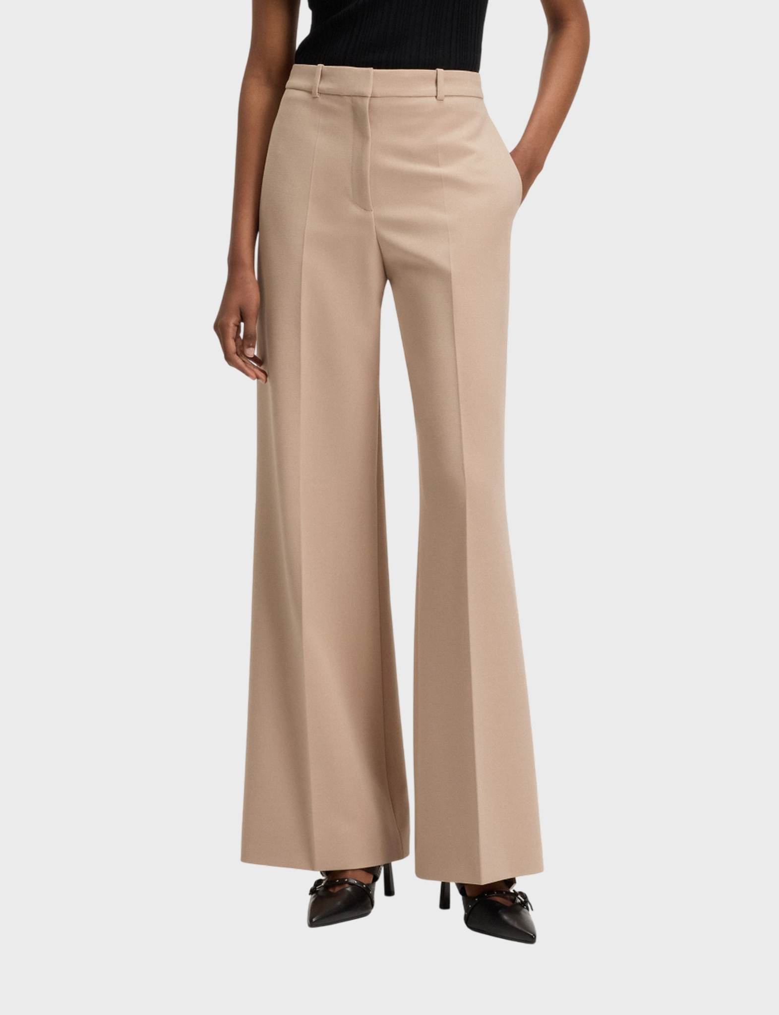 Эти женские бежевые брюки HUGO Hasmina станут основой стильного образа! Благодаря сочетанию материалов (64% полиэстер, 31% вискозы, 5% эластана), они дарят комфорт при носке, сохраняют форму и цвет после стирки. Идеально подойдут как для повседневных прогулок, так и деловых встреч – универсальность стиля и качества Hugo Boss очевидна.