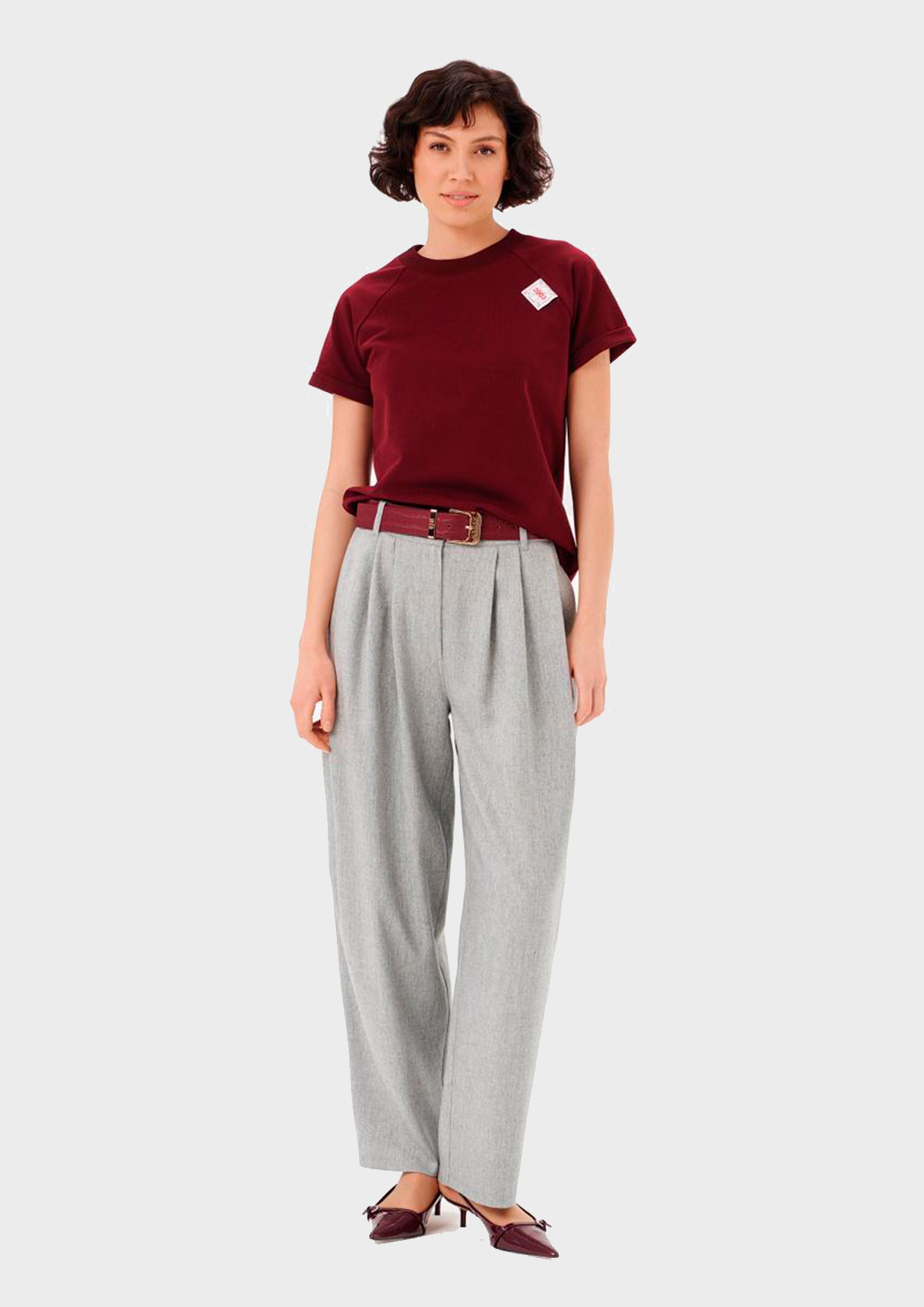 Элегантные серые брюки с защипами. Классическая деталь создает идеальную посадку по талии и безупречный строгий силуэт. Неотъемлемая основа делового гардероба для безупречного вида.
