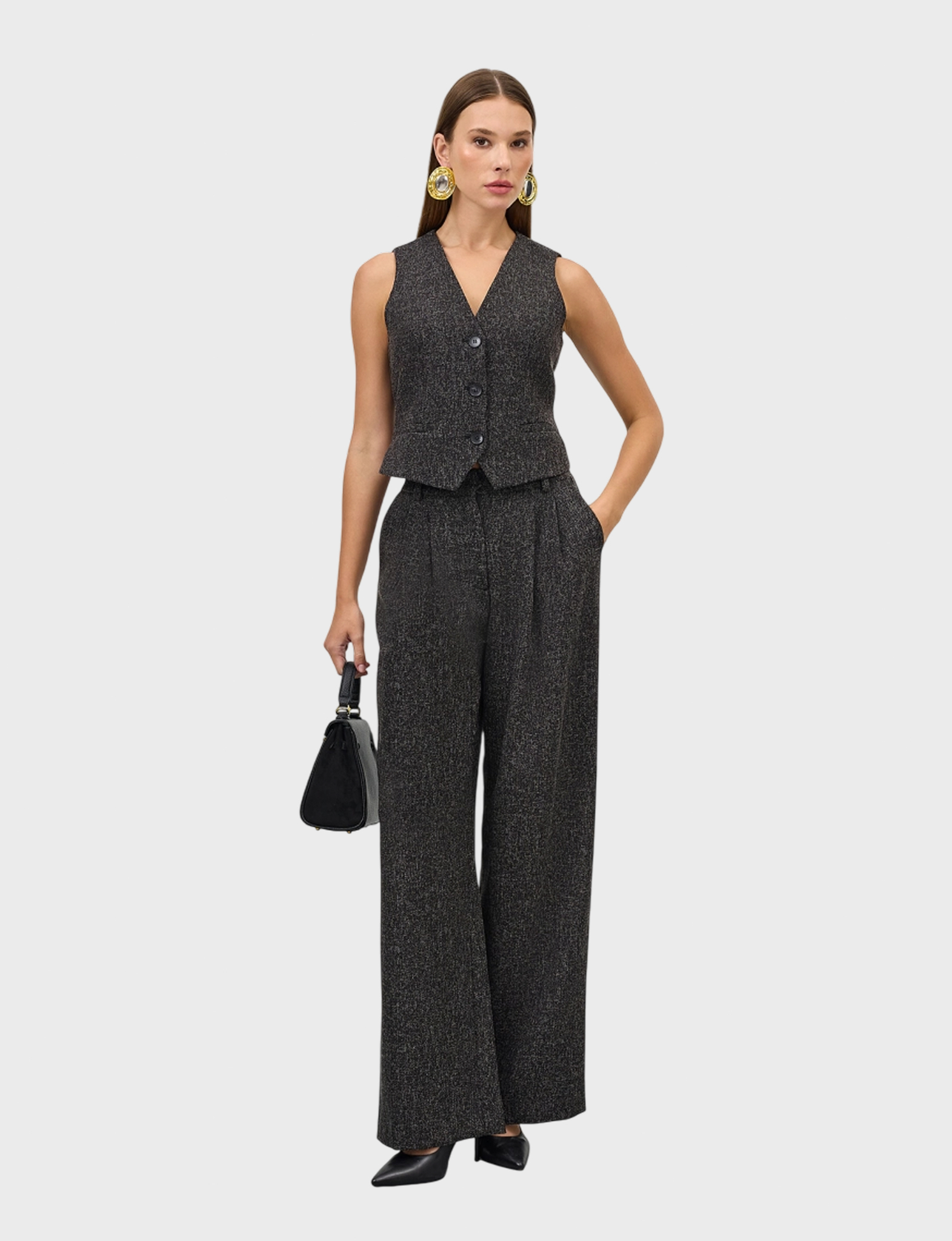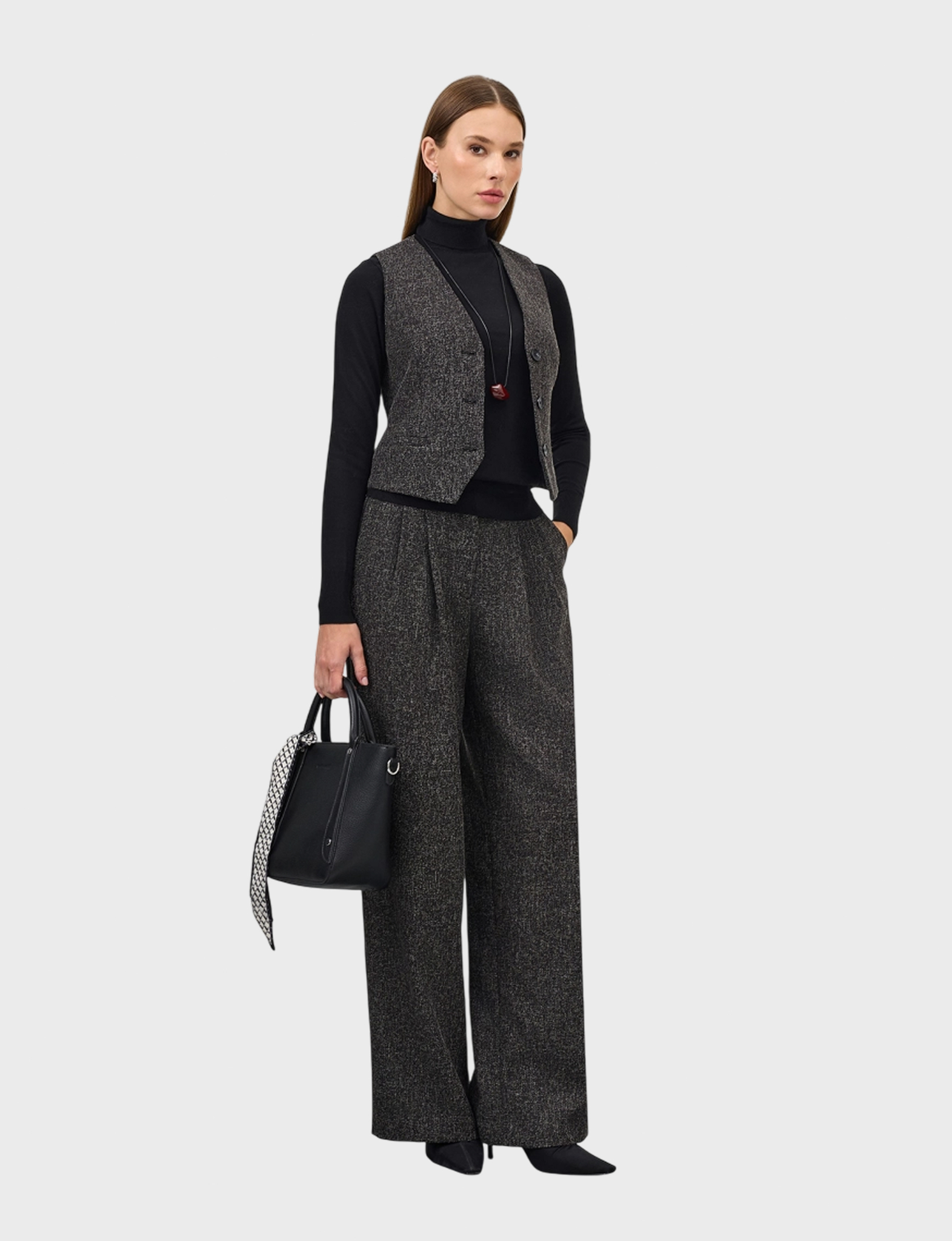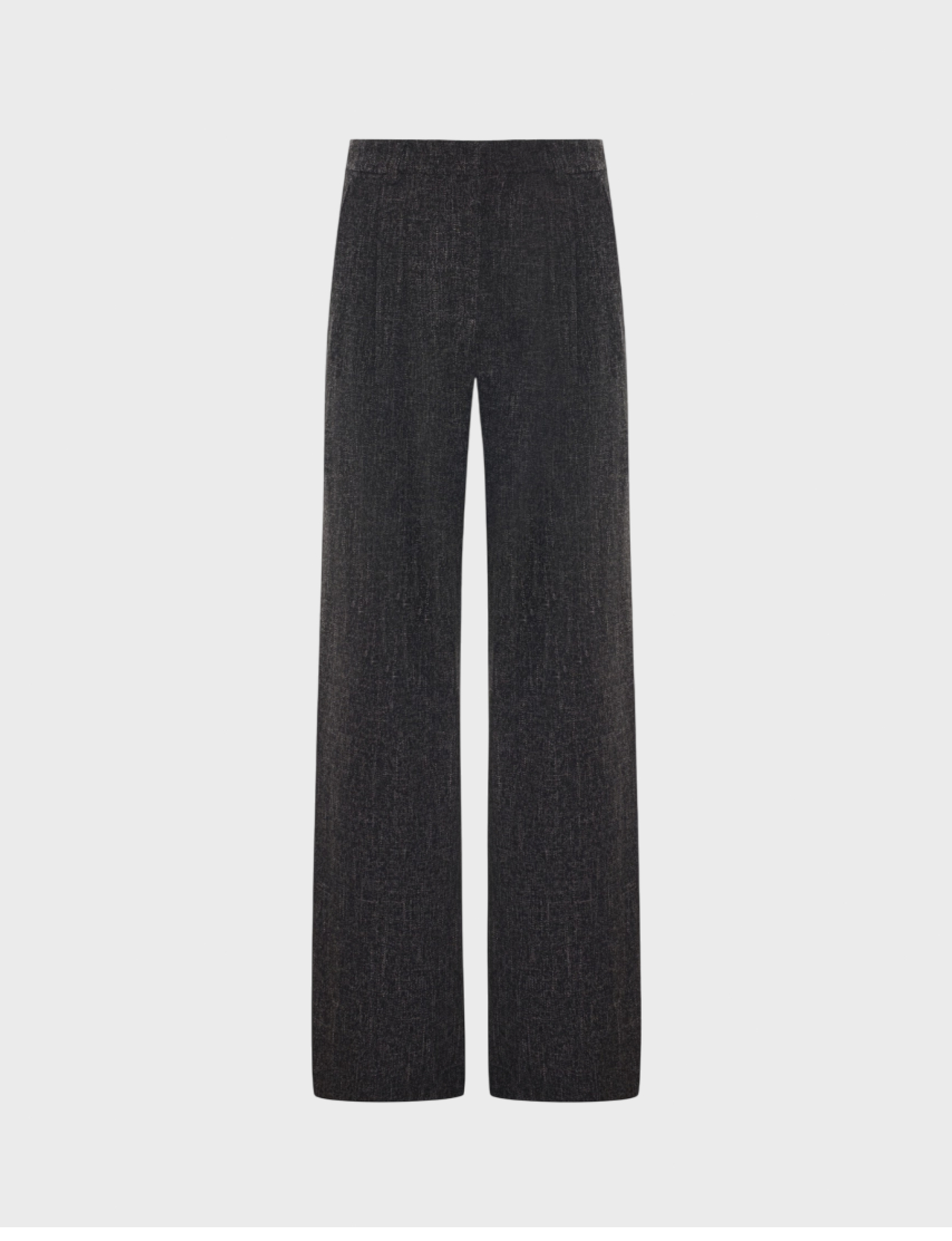 Брюки с мягкими складками из смесовой вискозы. Свободный силуэт. Застежка на молнию и пуговицу. Боковые карманы в швах. Высокая посадка.