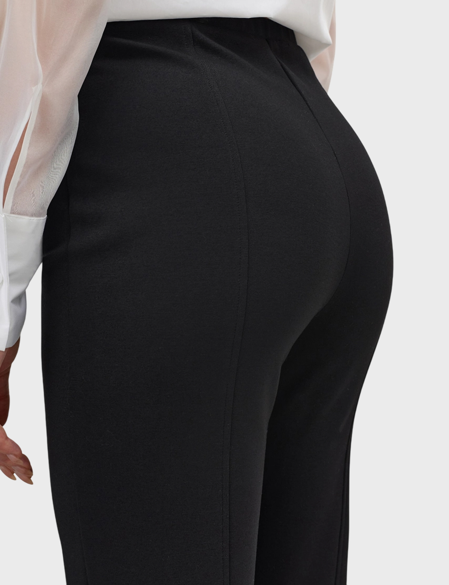 Брюки из трикотажной вискозы с акцентными рельефами. Облегающий силуэт. Резинка по линии талии. В составе спандекс.