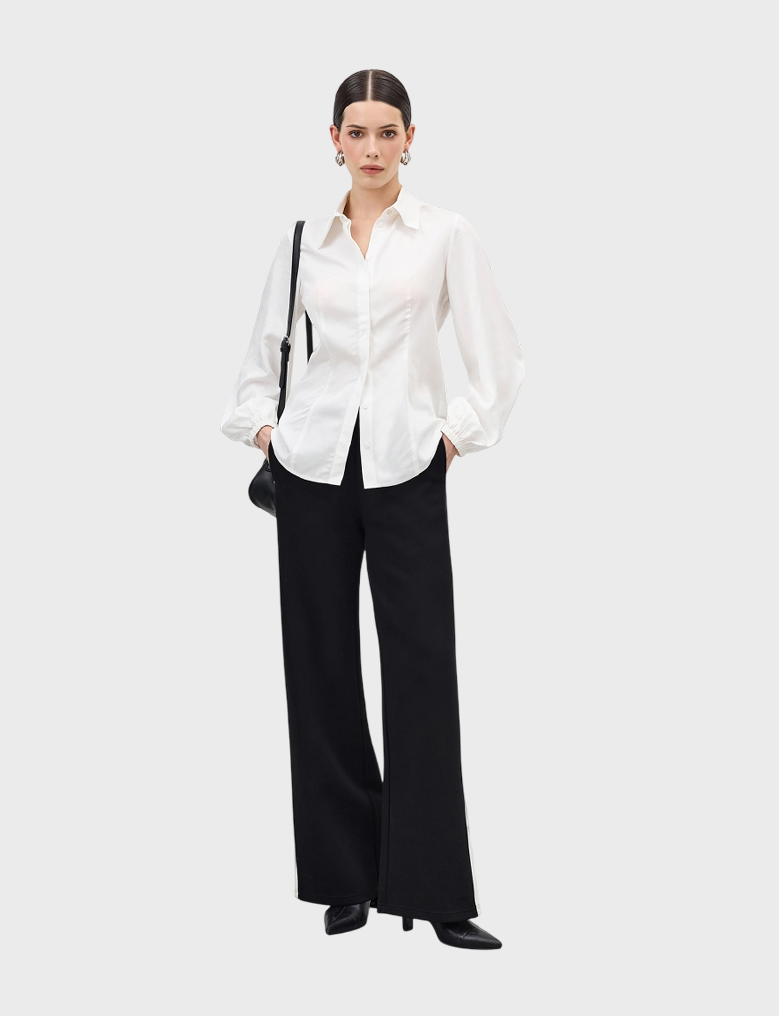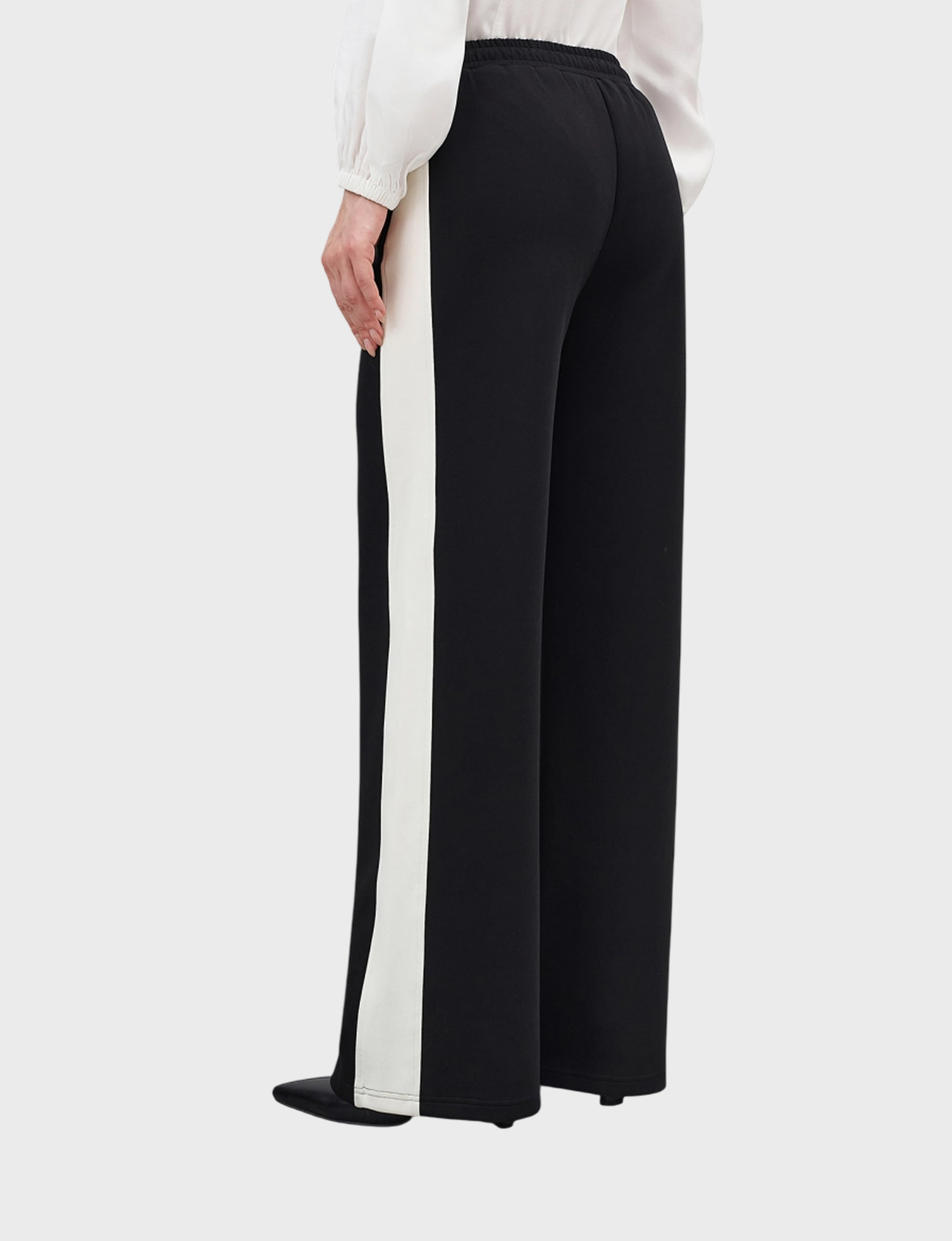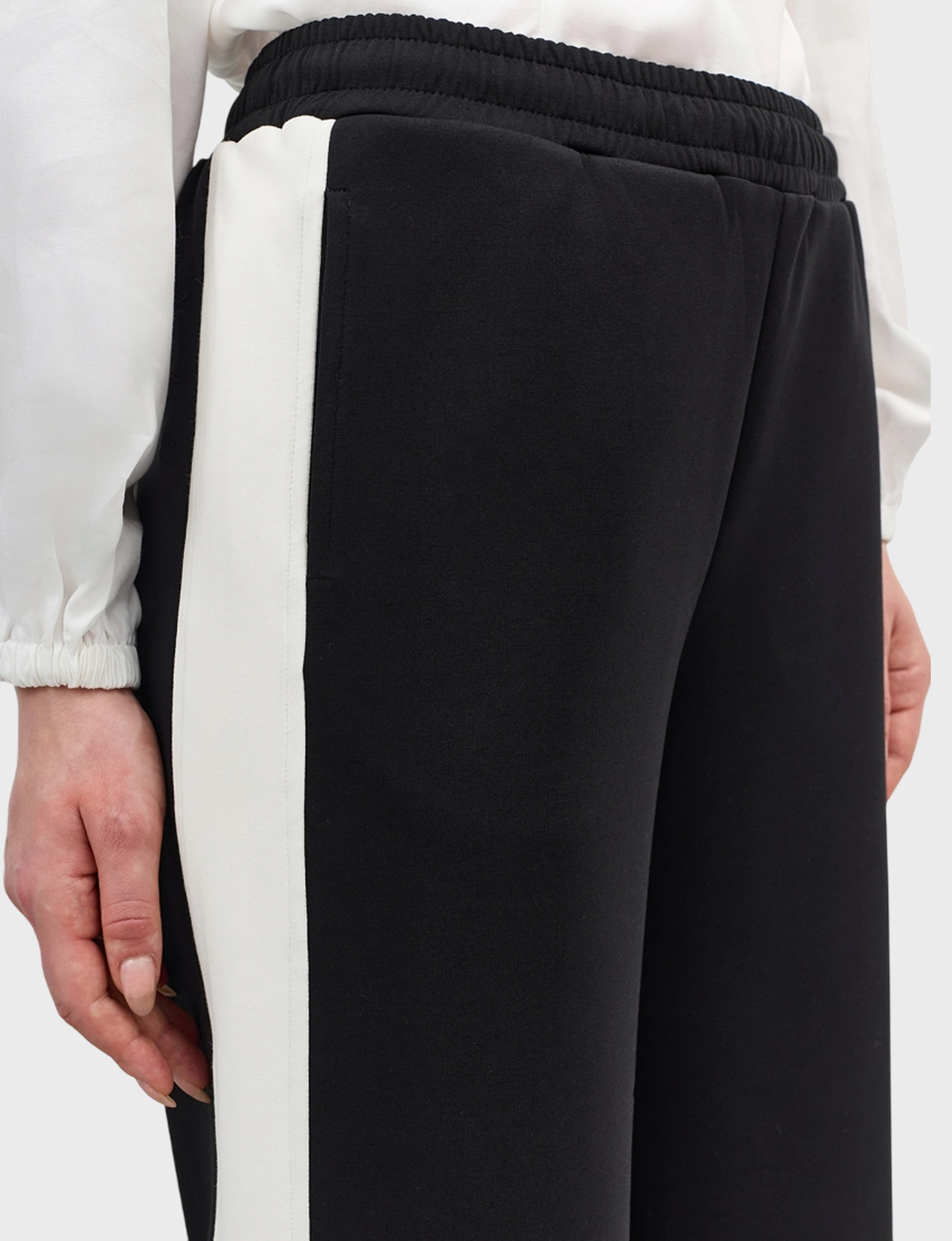 Трикотажные брюки с контрастными лампасами. Свободный силуэт. Резинка по линии талии. Боковые карманы. В составе хлопок.