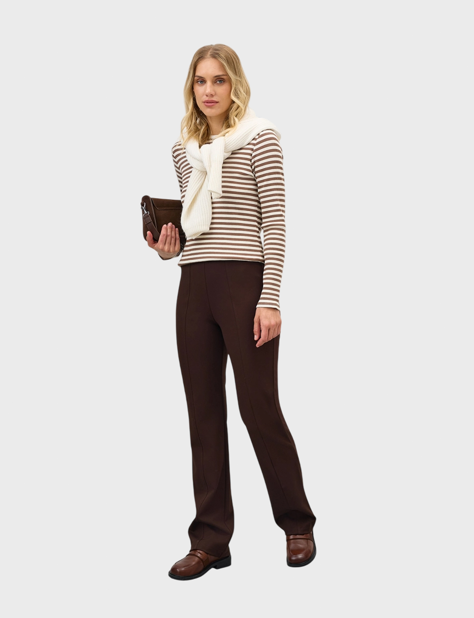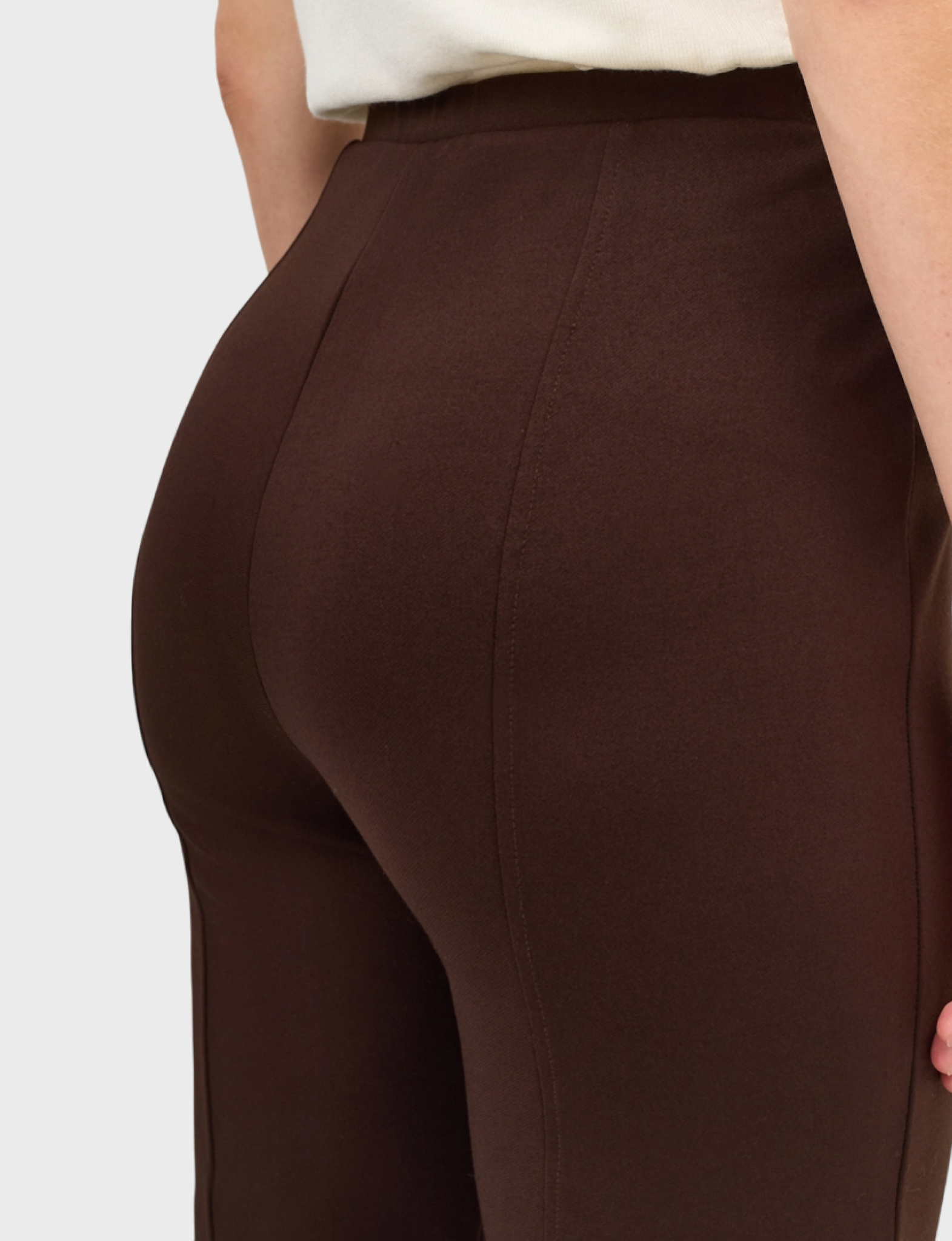 Брюки из трикотажной вискозы с акцентными рельефами. Облегающий силуэт. Резинка по линии талии. В составе спандекс.