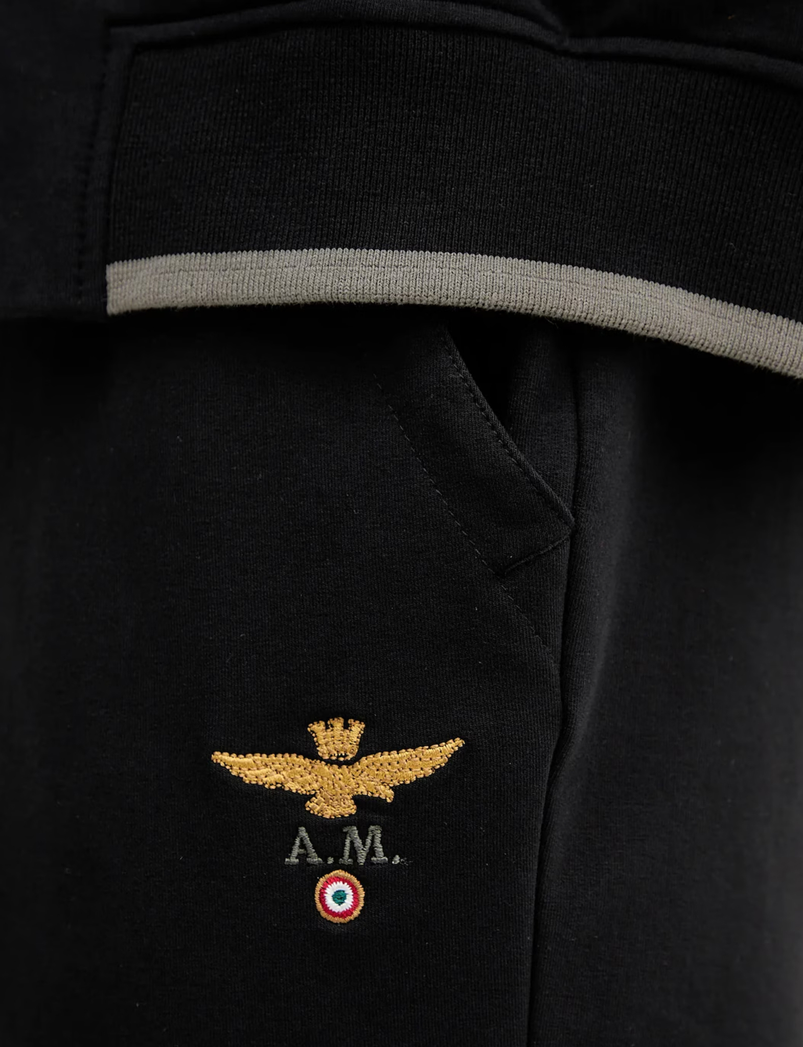 Спортивные брюки AERONAUTICA – идеальный выбор для мужчин, ценящих комфорт и стиль! В составе 95% натурального хлопка и 5% эластана обеспечивают свободу движений, дышат и сохраняют форму после стирки. Черный цвет универсален и подходит к любому спортивному верху или повседневной футболке.