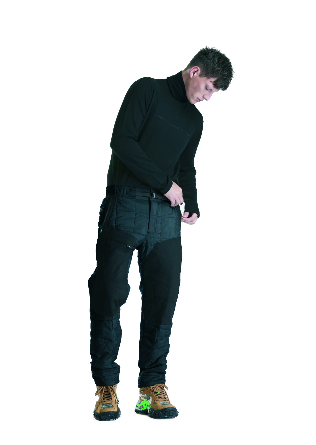 Утеплённые брюки CHEOPS с 7 карманами сделаны из ткани, полученной путём переработки пластиковых бутылок. Оснащены карманом с RFID-защитой, предотвращающей считывание банковских карт. Названы в честь космического телескопа CHEOPS.