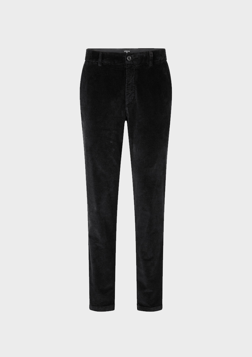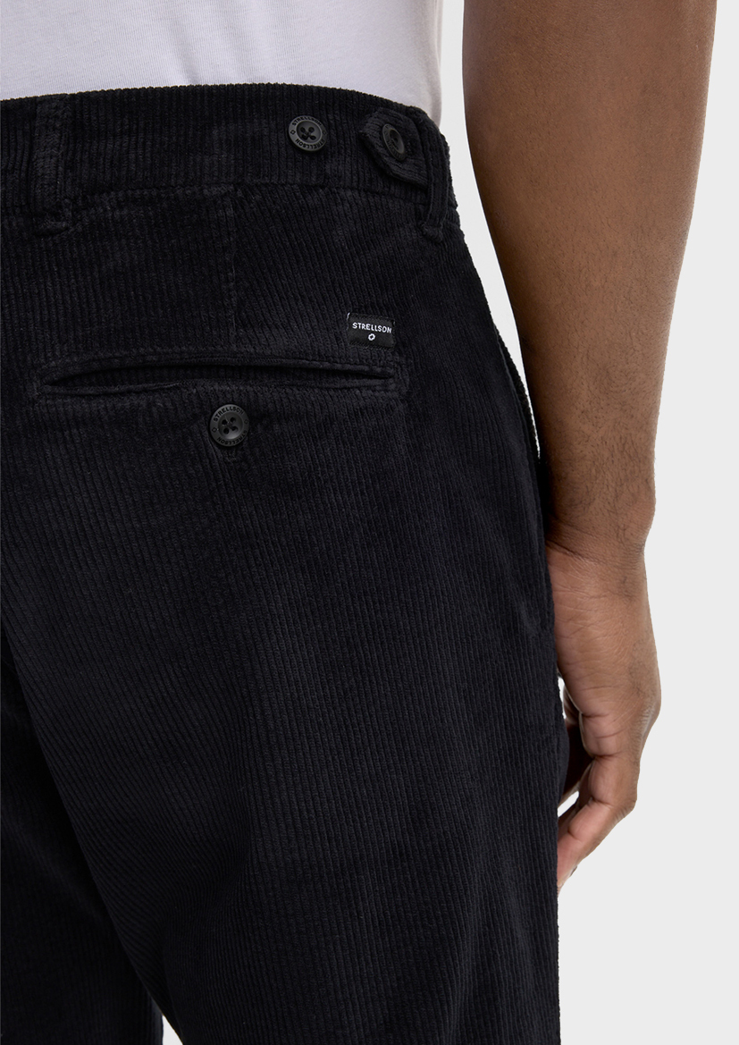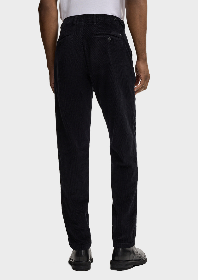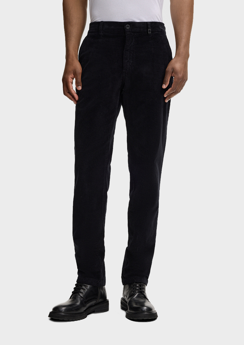 Элегантные вельветовые брюки Rion с прорезными карманами в швах и потайной застежкой на молнию. Шлевки для ремня на поясе и бирка с логотипом дополняют это изделие. Выполнено из эластичного хлопка.