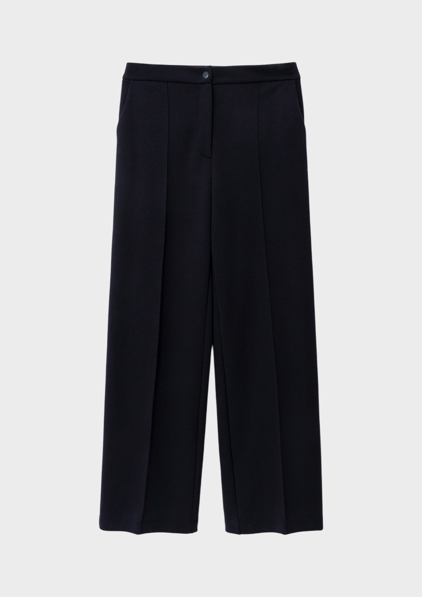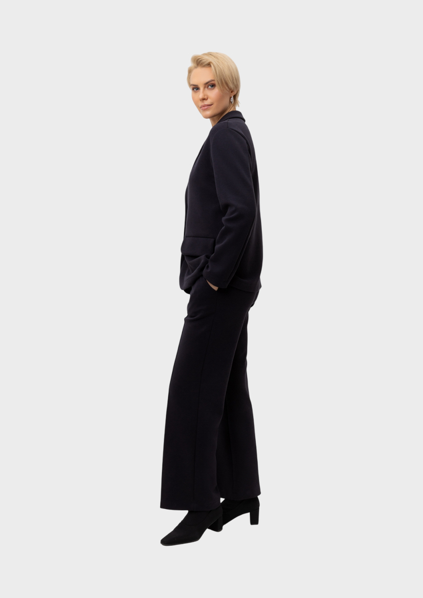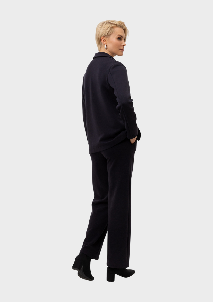 Брюки со стрелкой изготовлены из инновационного трикотажного материала, известного как рибана DOUBLE FACE. Это полотно характеризуется уникальной вязкой, что придает ему исключительную эластичность и мягкость. Современный силуэт и сдержанный дизайн делают их универсальным выбором для самых разных мероприятий — от деловых встреч до непринужденных прогулок по городу.
