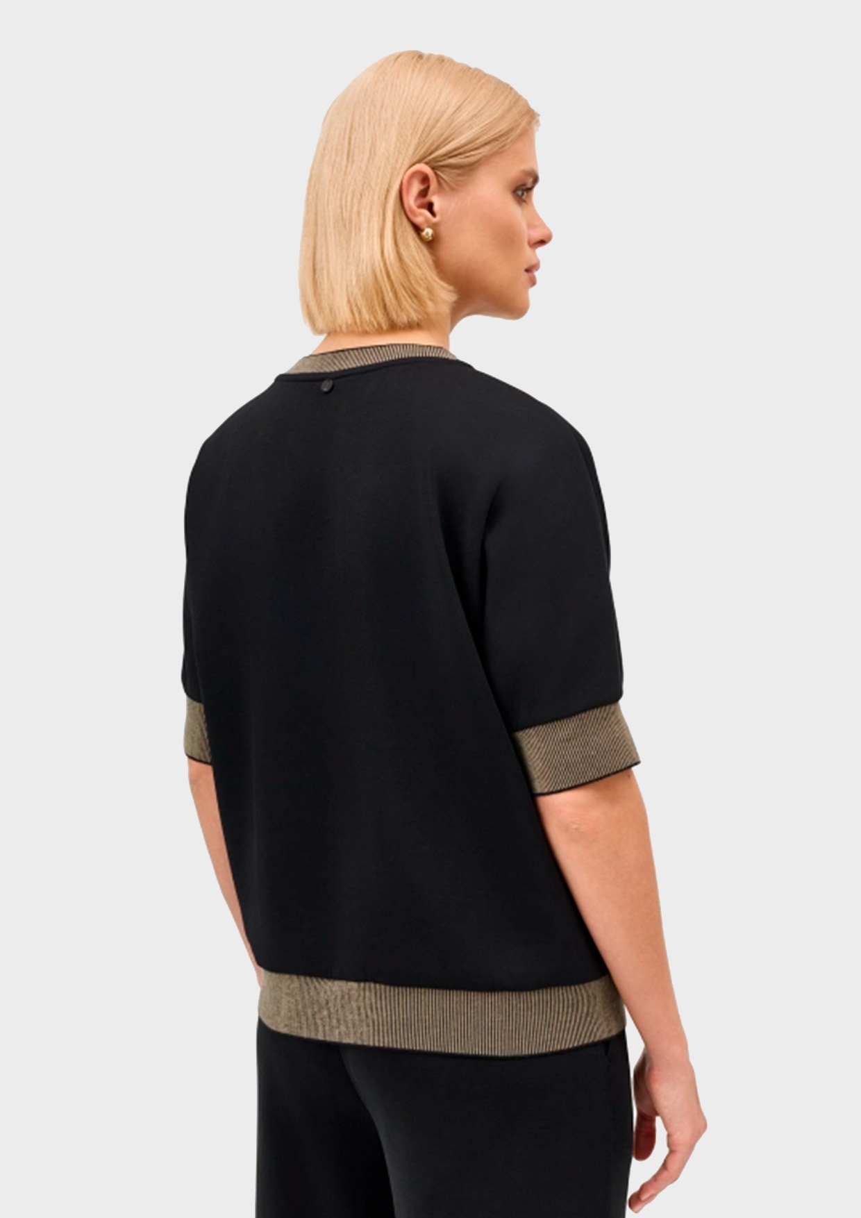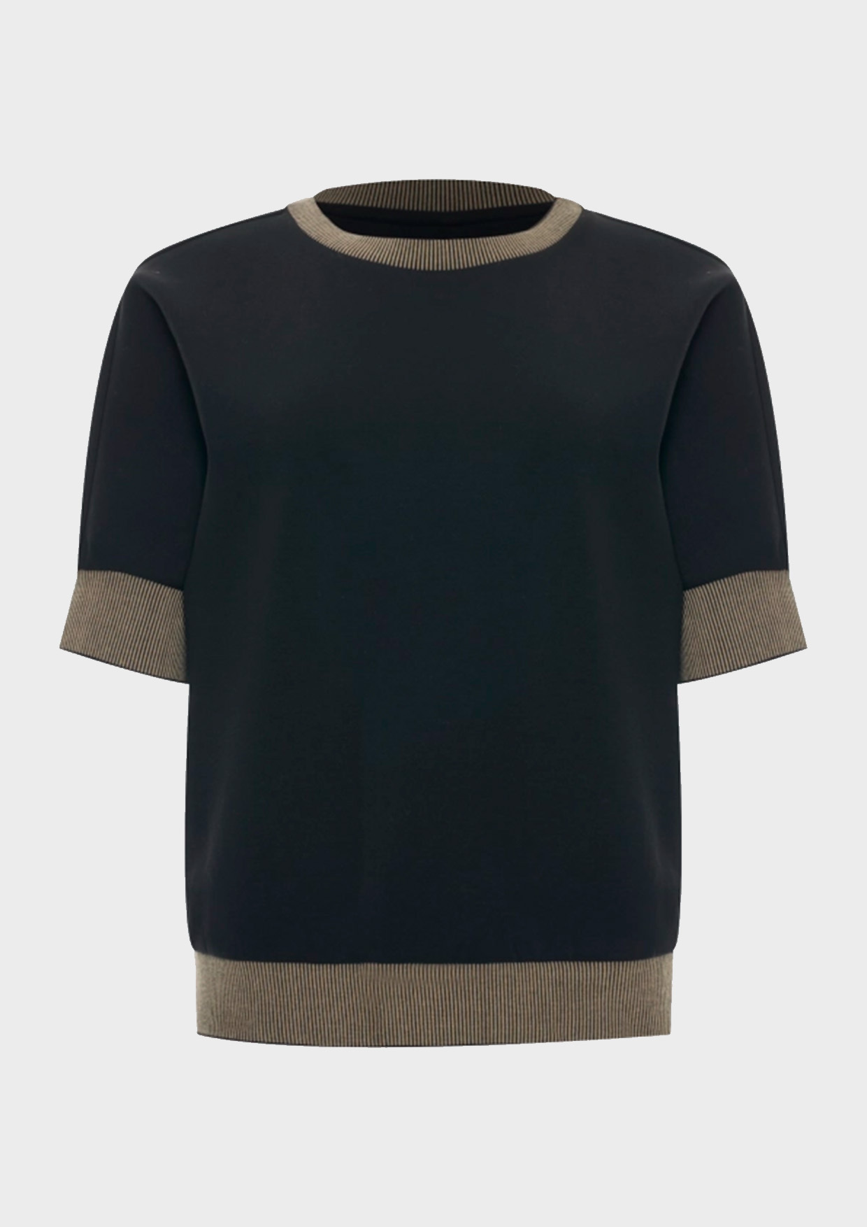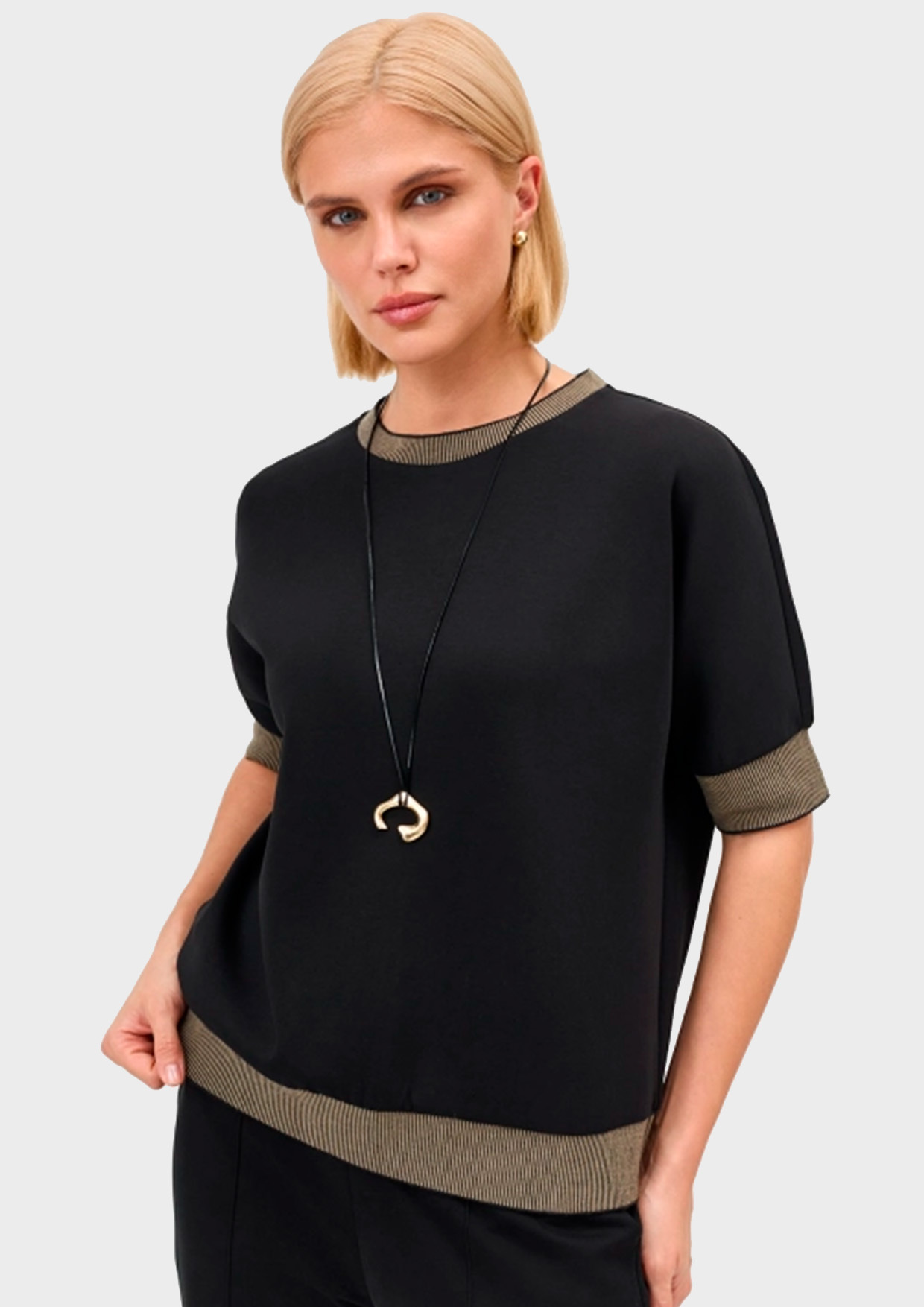 Трикотажный джемпер. Свободный силуэт. Круглый вырез. Укороченные цельнокроенные рукава. В составе хлопок и модал.