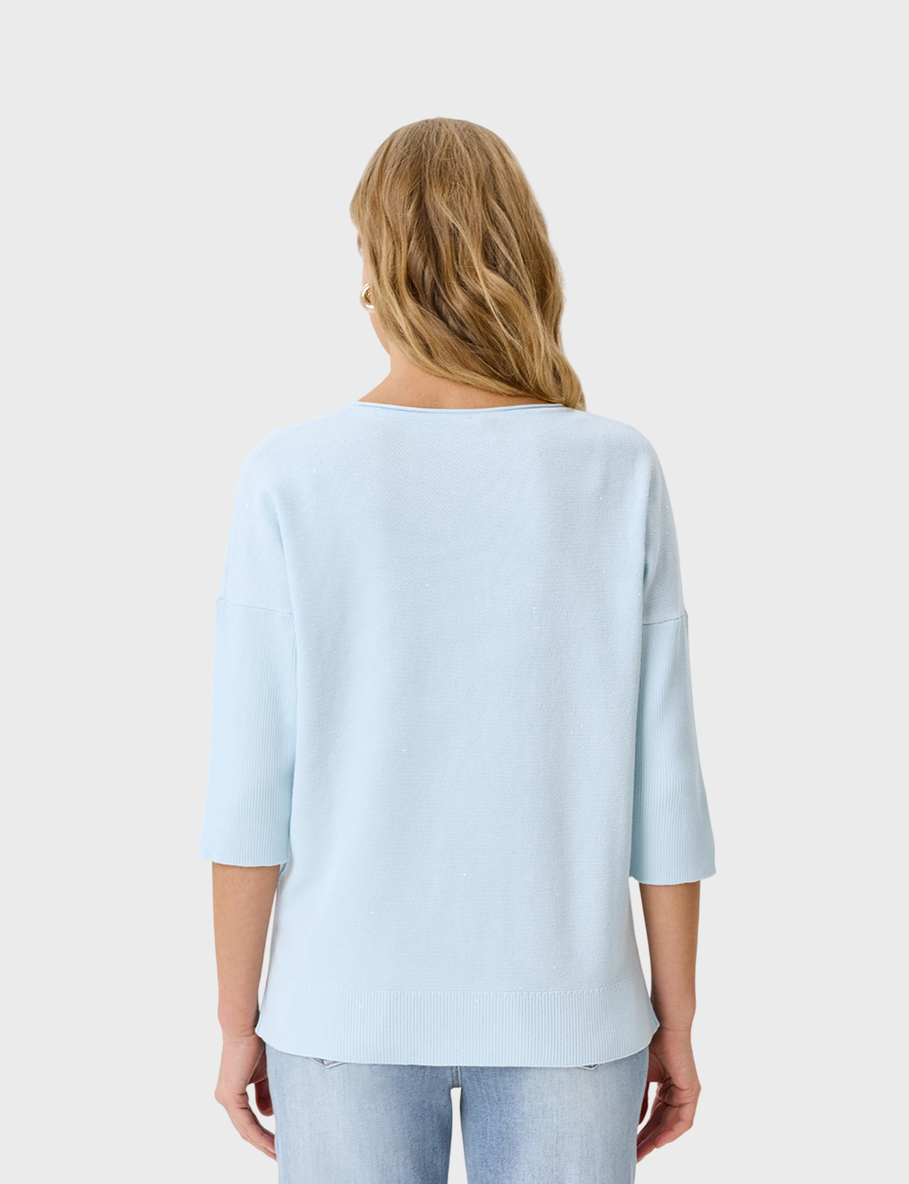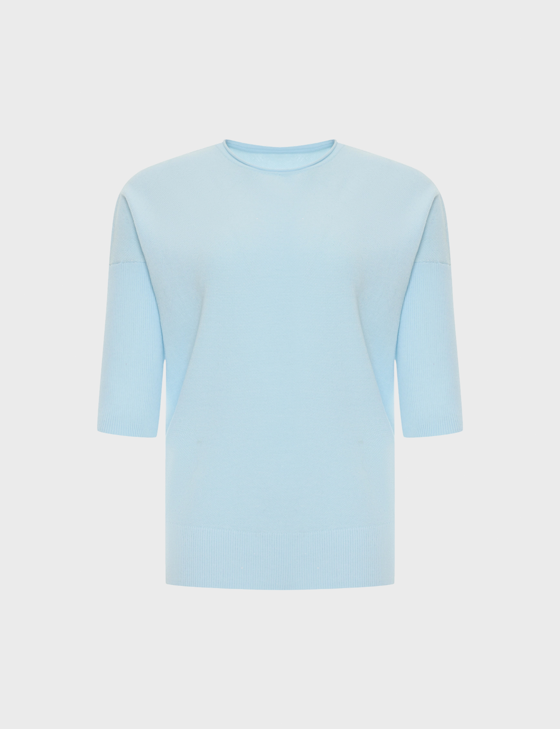 Яркий джемпер из модала и хлопка. Свободный силуэт. Круглый вырез. Цельнокроенные укороченные рукава дополнены широкими манжетами. Дополнен разрезами в боковых швах.