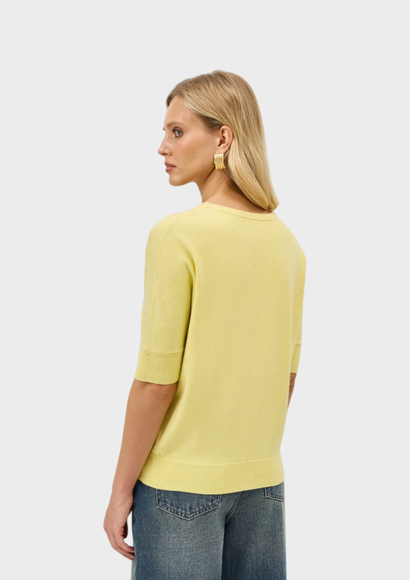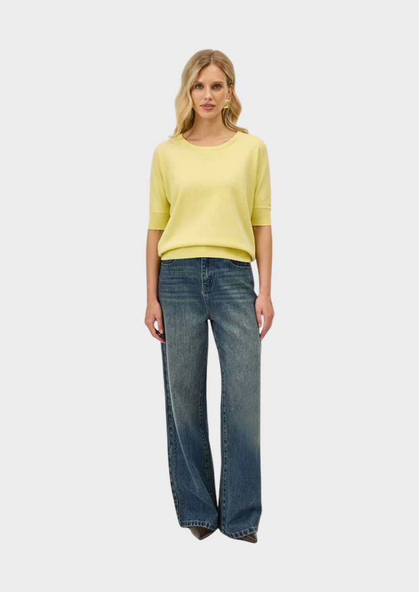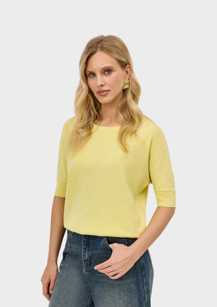 Яркий джемпер из смесовой вискозы с шерстью в составе. Свободный силуэт. Круглый вырез. Короткий цельнокроенный рукав. Риб по низу рукавов и изделия.