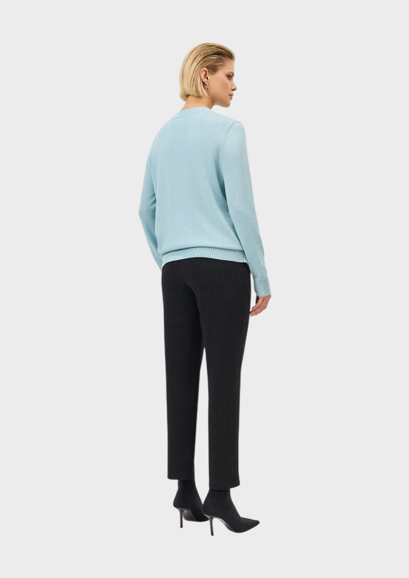 Джемпер фактурной вязки с узором ромбы и деликатными пайетками. Прямой силуэт. Круглый вырез. Длинные втачные рукава. В составе вискоза и кашемир.