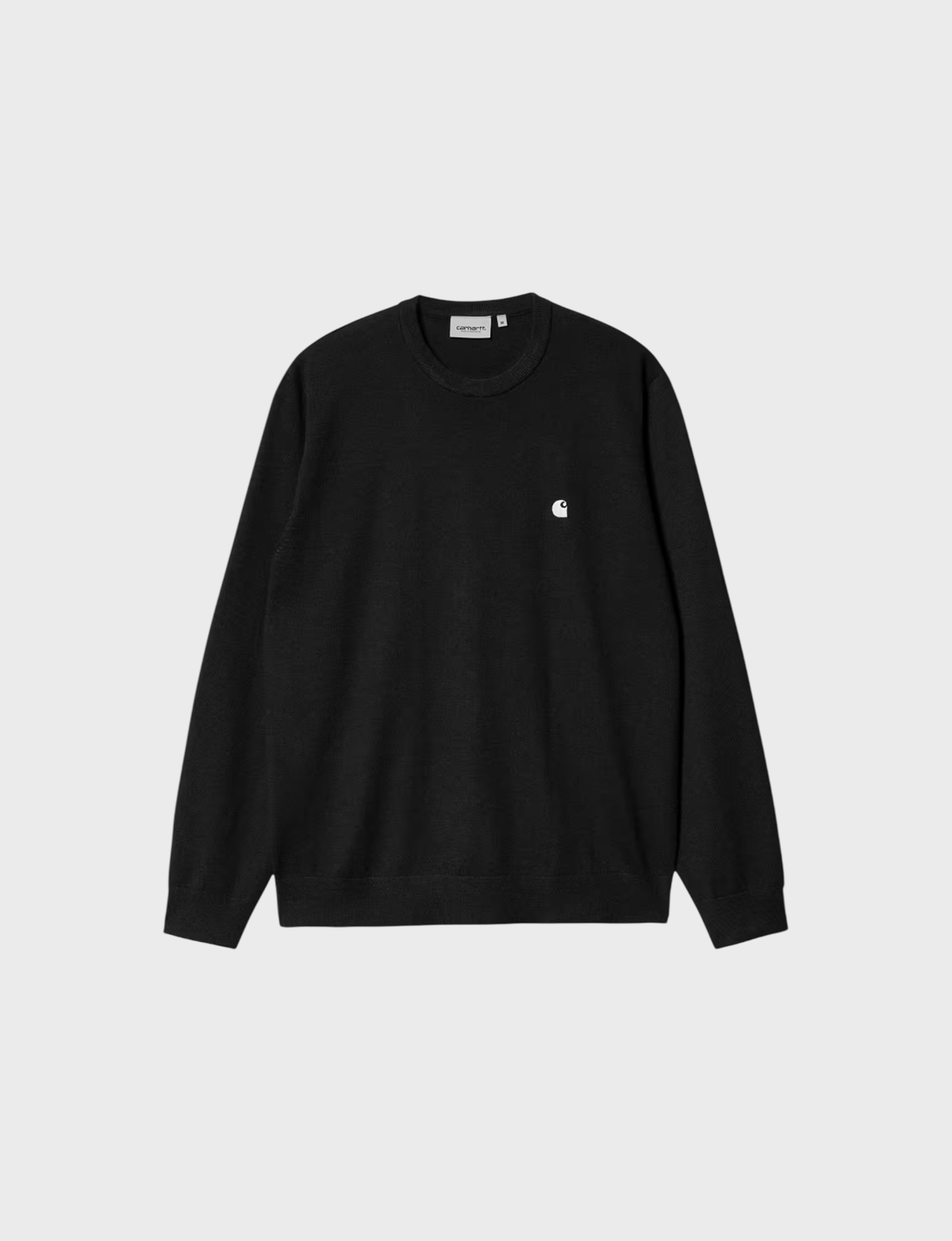 Джемпер Madison, связанный из мягкой смеси овечьей шерсти и нейлона, имеет классический силуэт с ребристым воротником, подолом и манжетами.