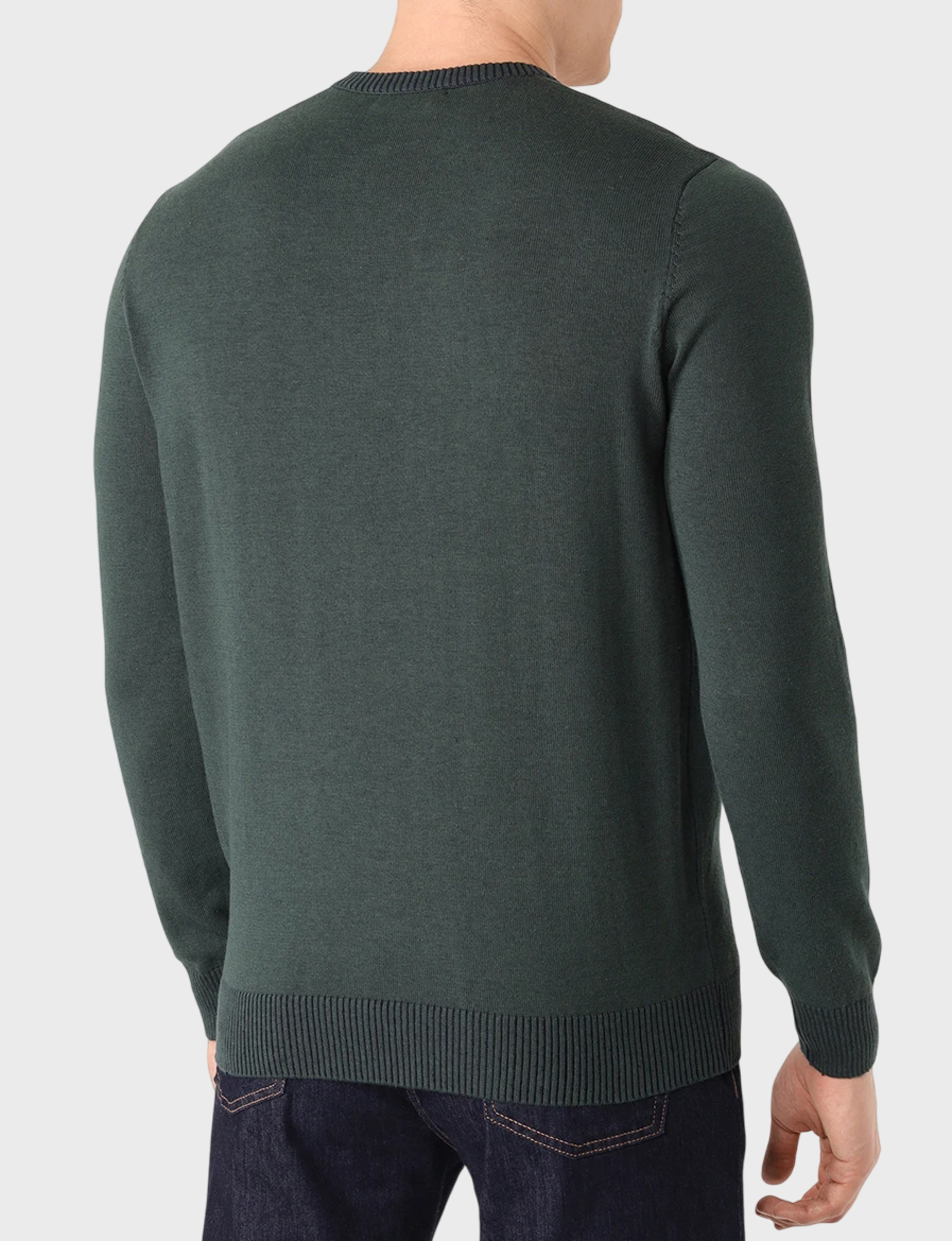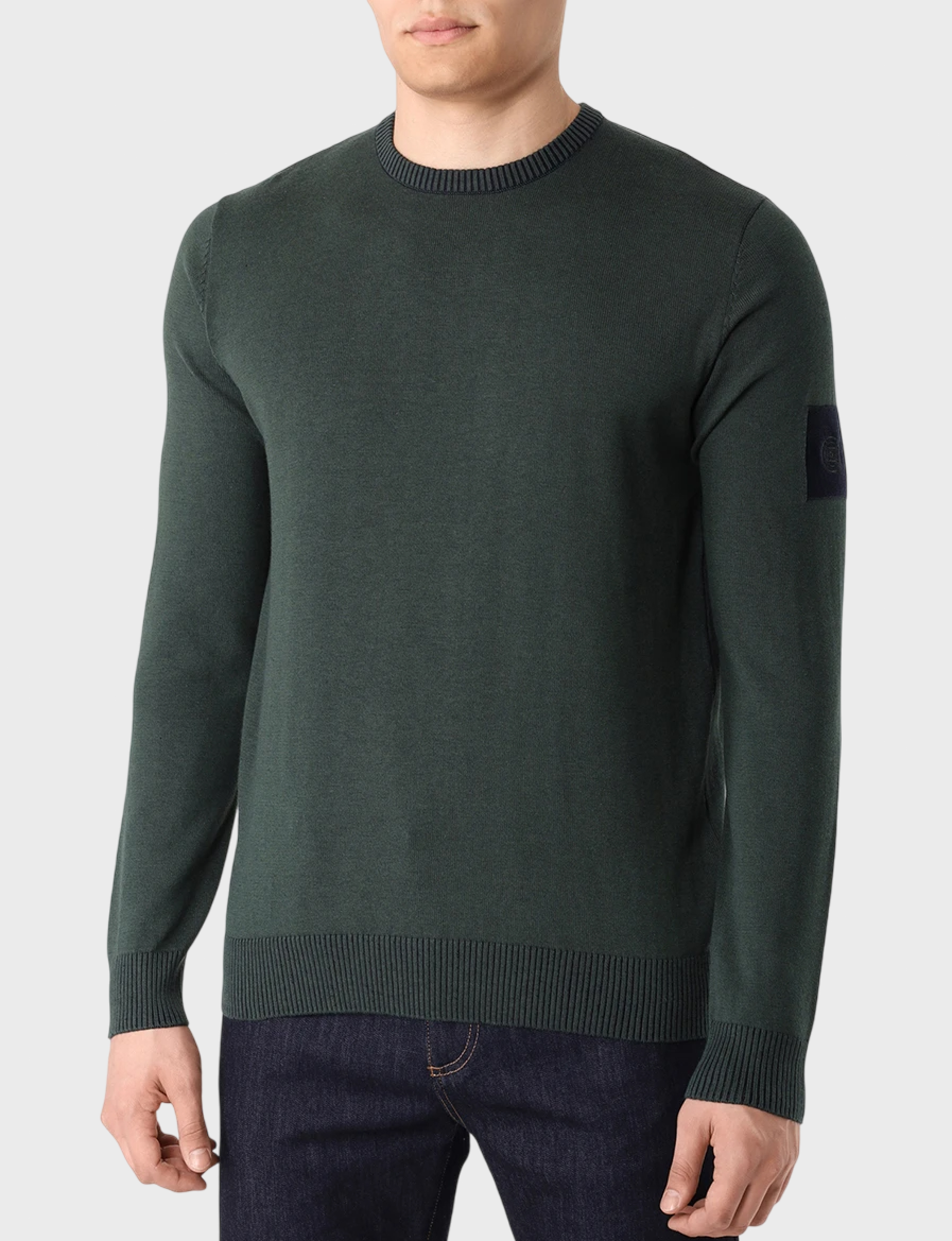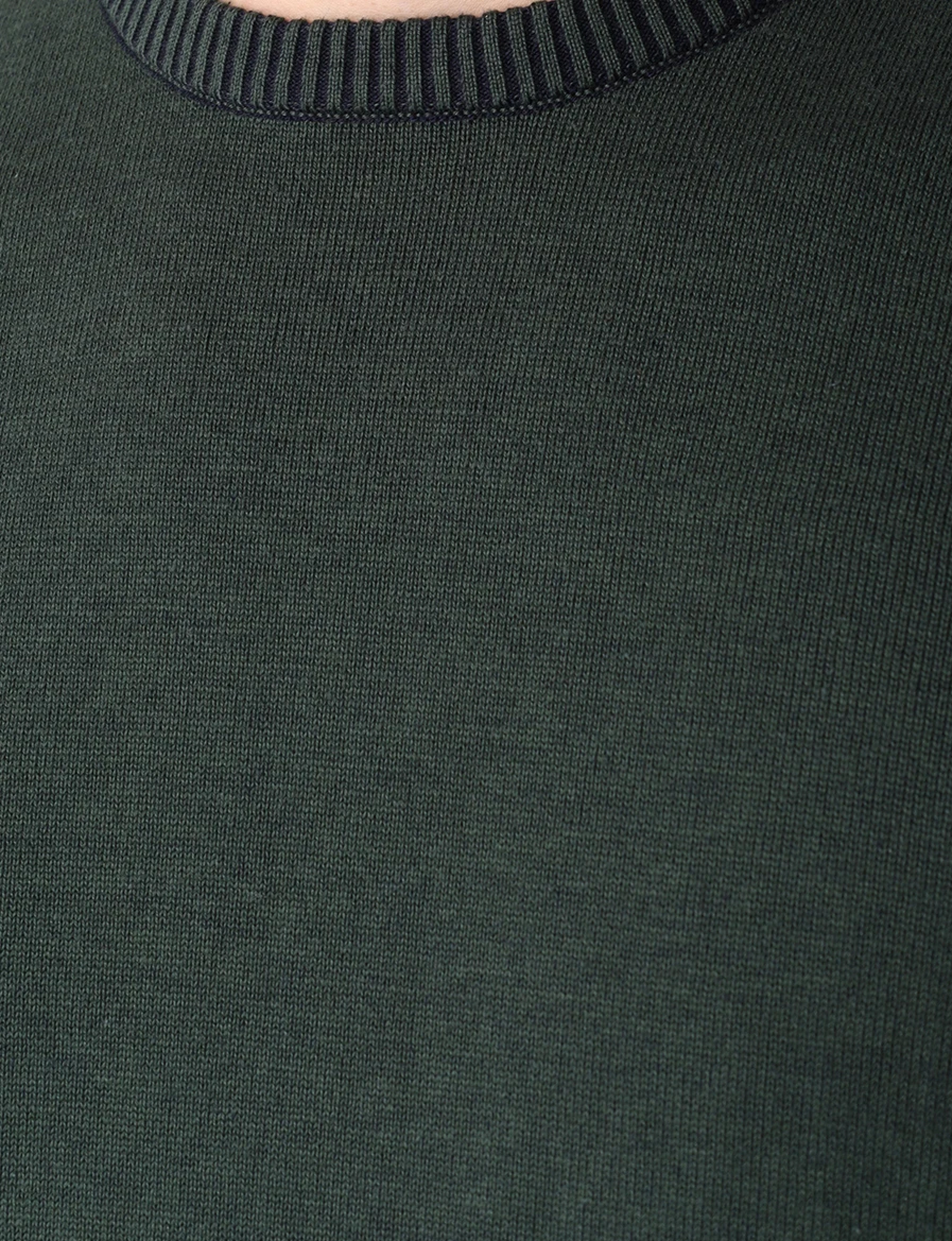 Зеленый джемпер из мягкого хлопка от CUDGI. Модель полуприлегающего силуэта с длинными рукавами, рельефными манжетами, поясом и отделкой круглого выреза горловины, логотипом бренда на плече. Джемпер дополнит повседневные образы с джинсами и курткой.