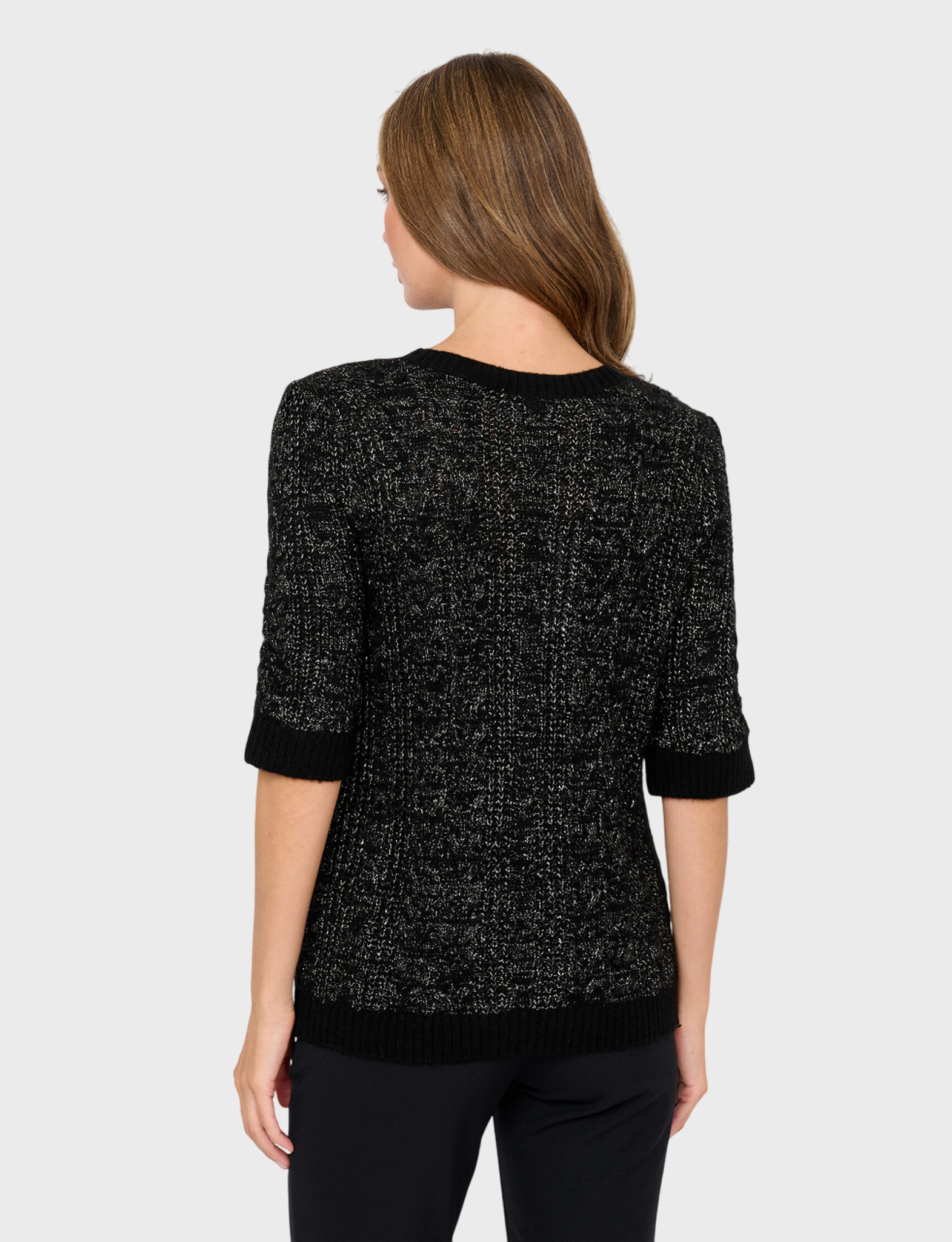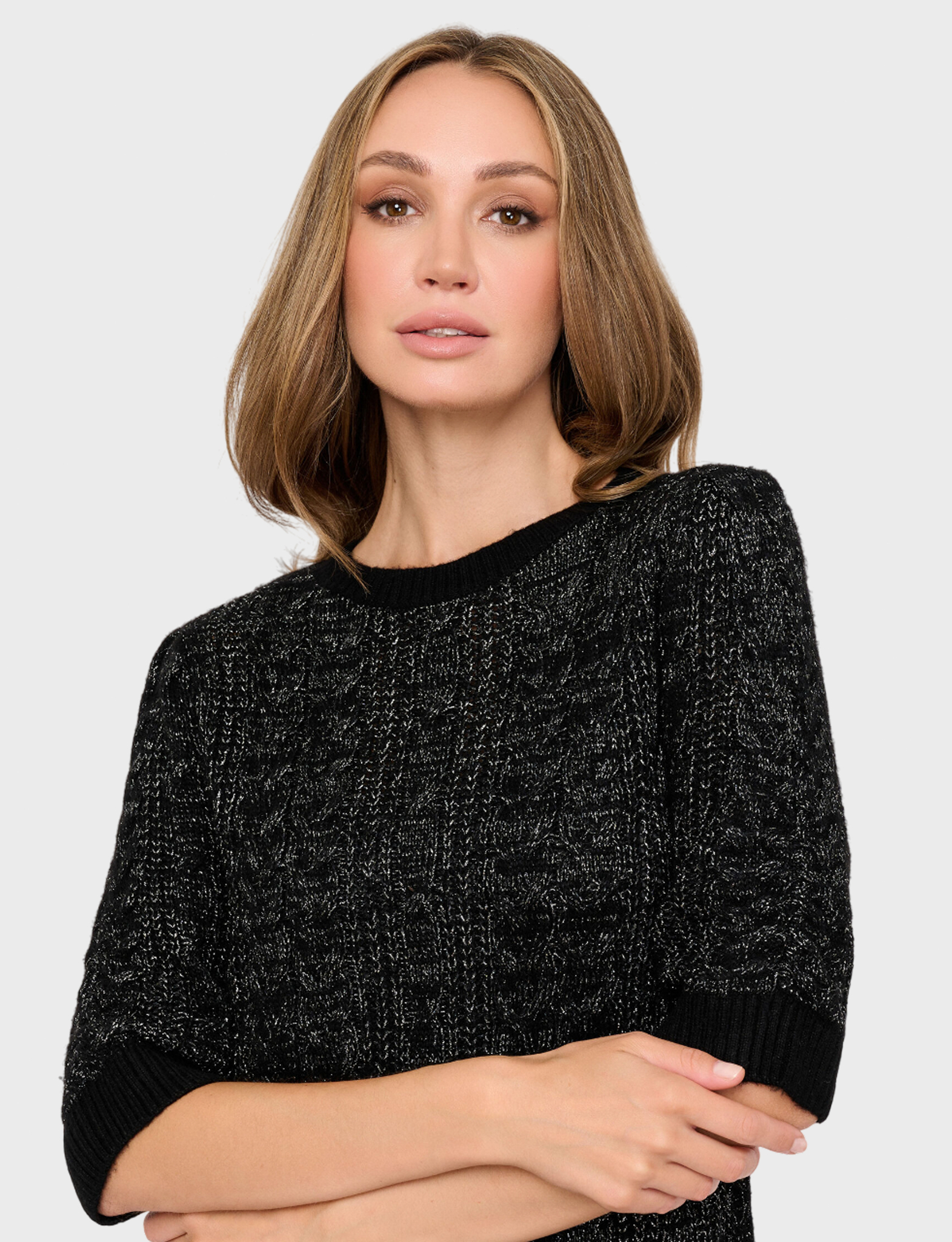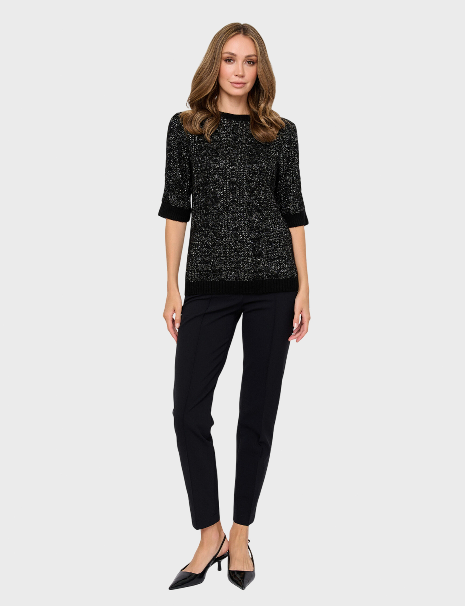 Погрузитесь в мир элегантности вместе с джемпером Franco Vello! Черный цвет универсален и подчеркнет вашу изысканность. Подходит как для повседневных образов, так и для особых случаев. Ткань сочетает 35% шерсти (тепло и комфорт), 35% нейлона (прочность) и 30% люрекса (блеск и стиль).
