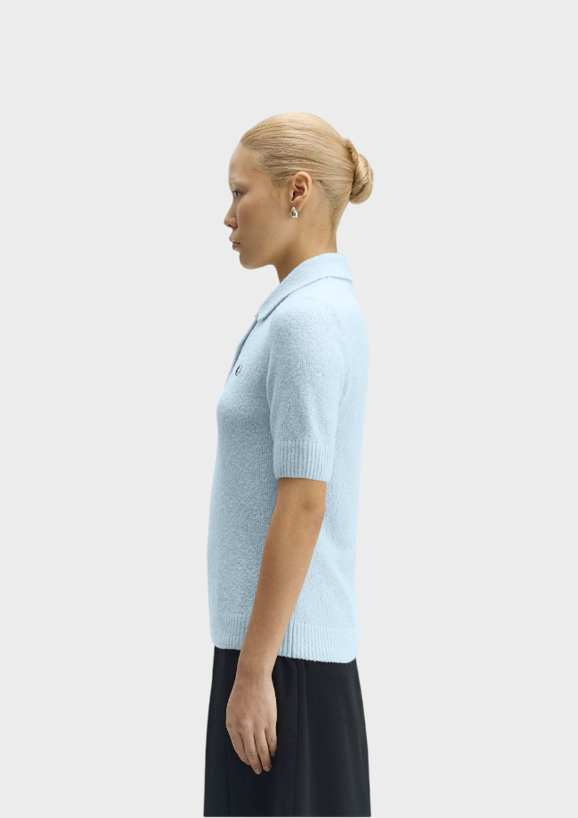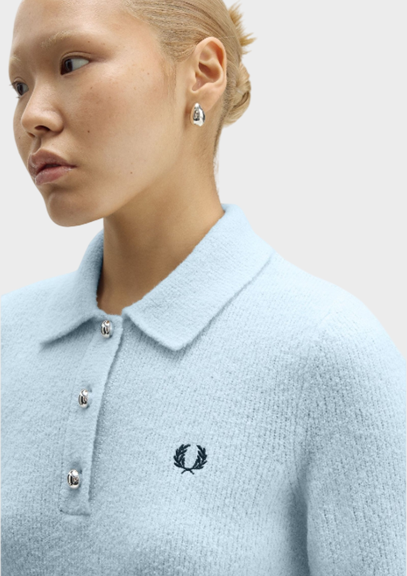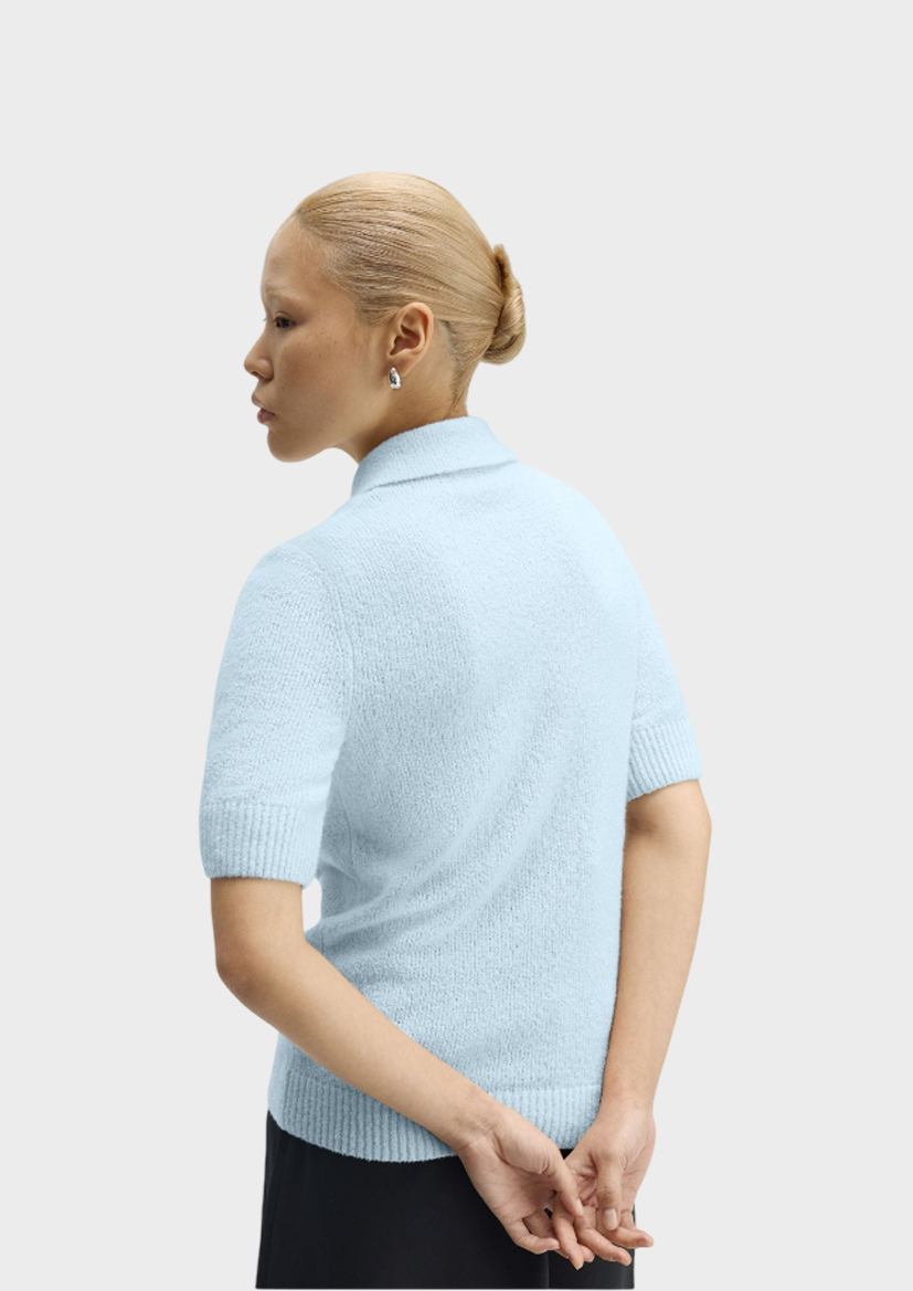 Вязаный топ из пряжи букле с рельефной отделкой и купольными пуговицами. Трикотаж из смеси хлопка, шерсти и переработанного нейлона. Классический крой. Контрастный вышитый логотип в виде лаврового венка на левой стороне груди