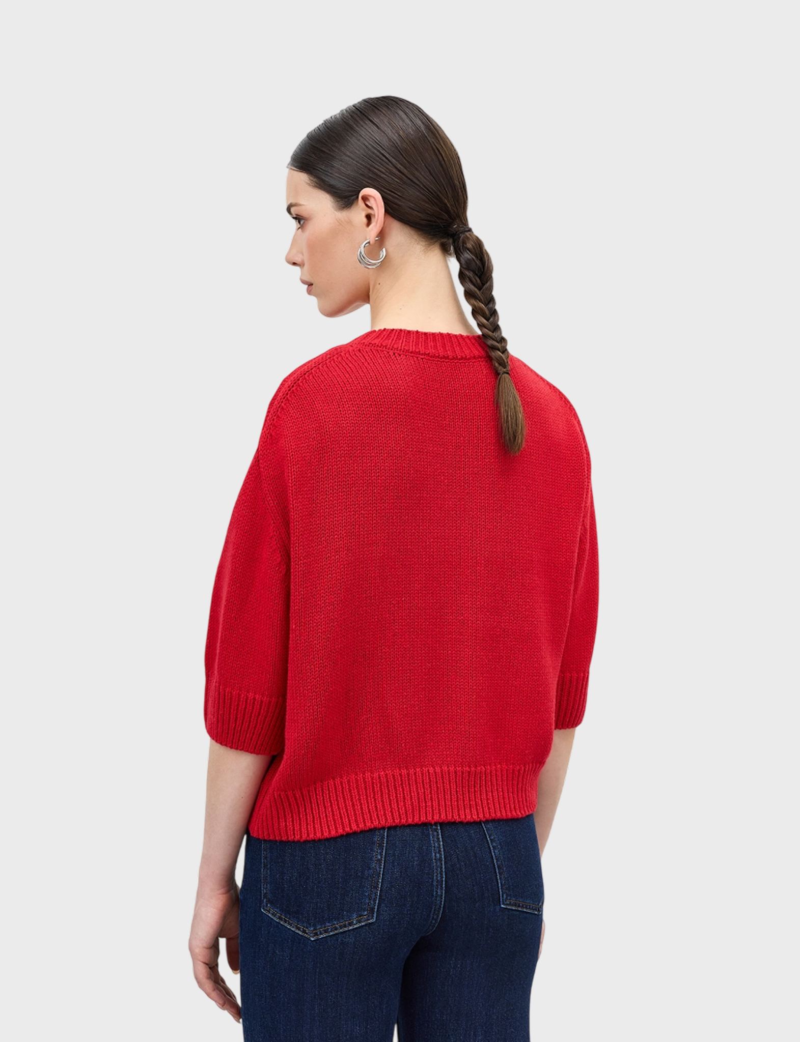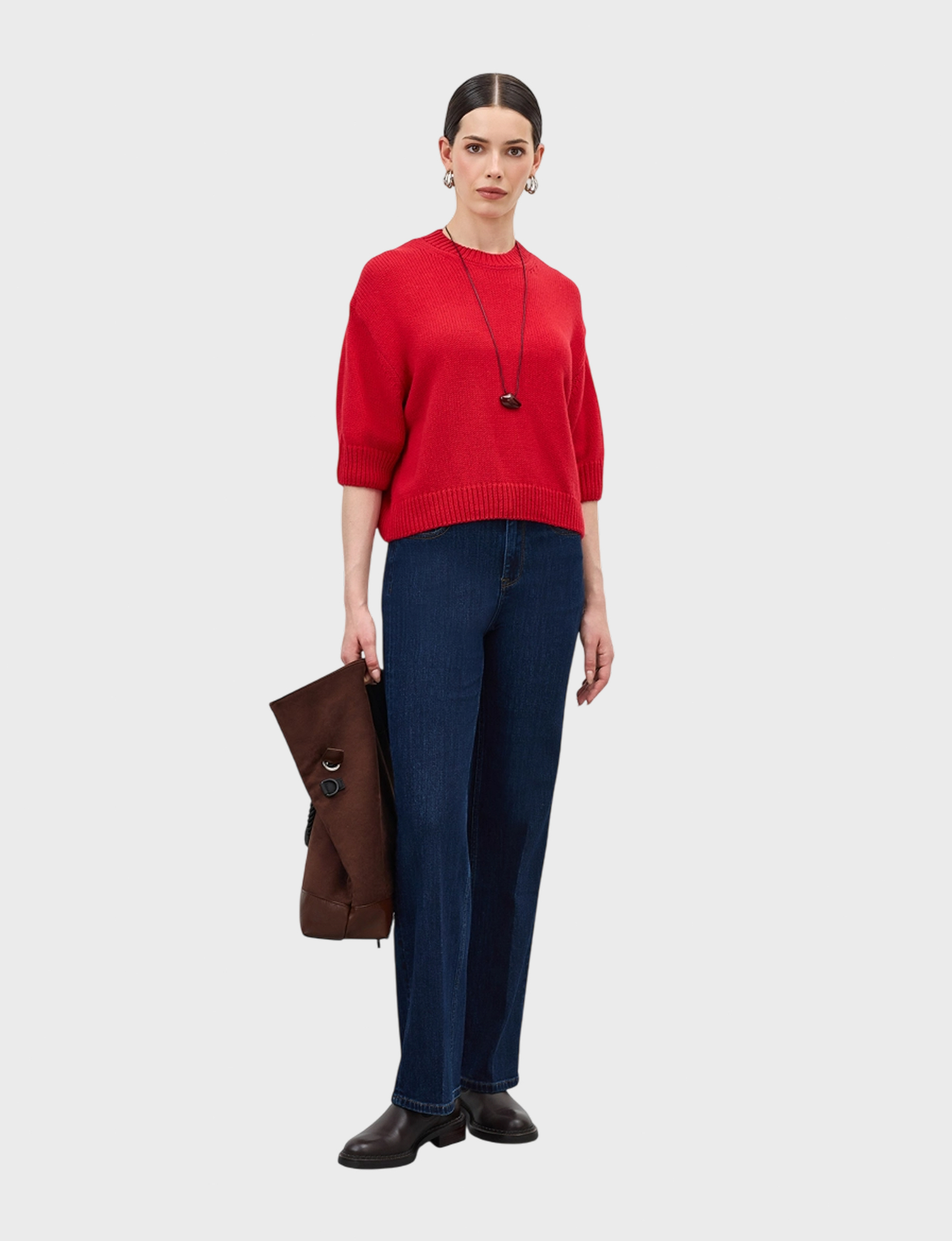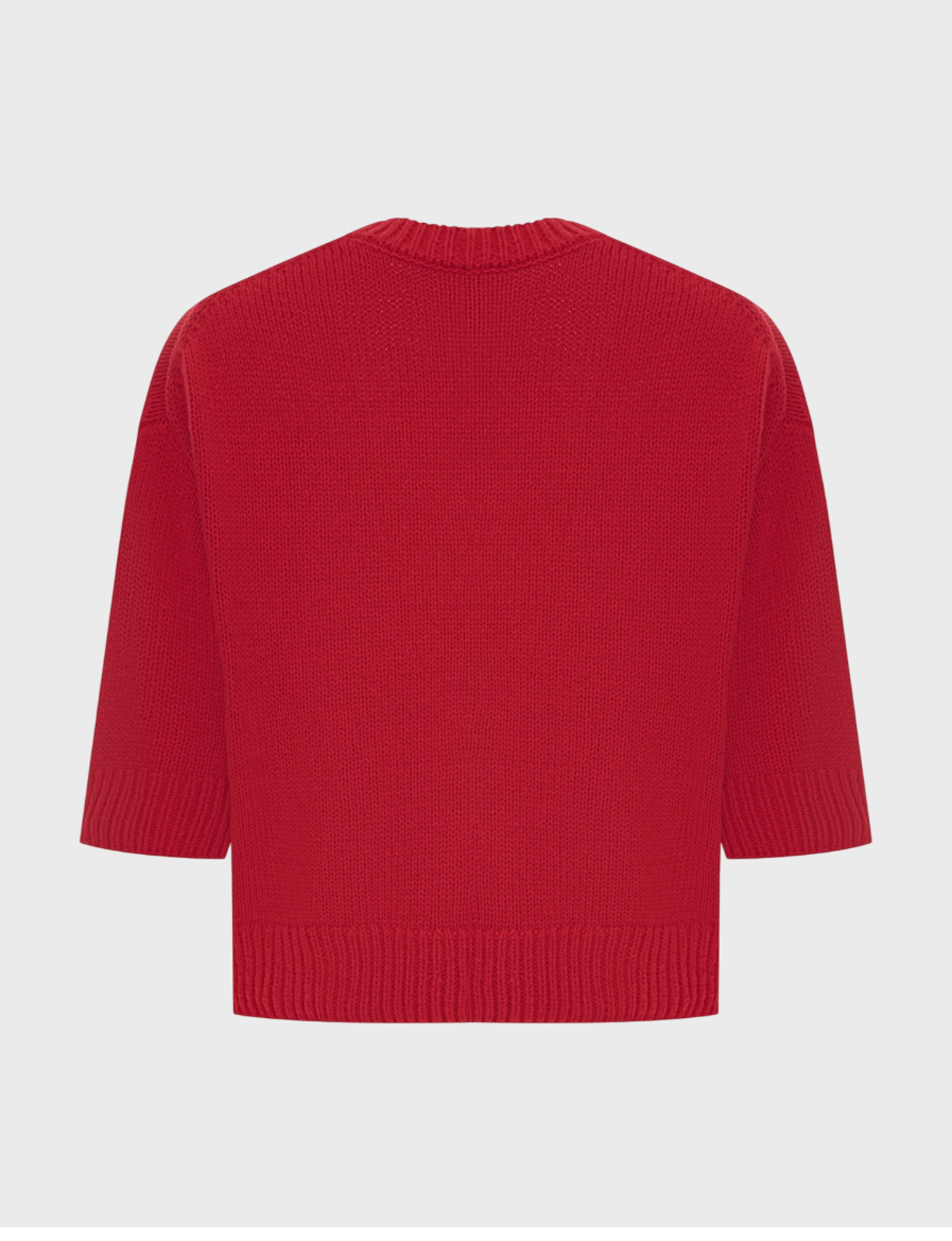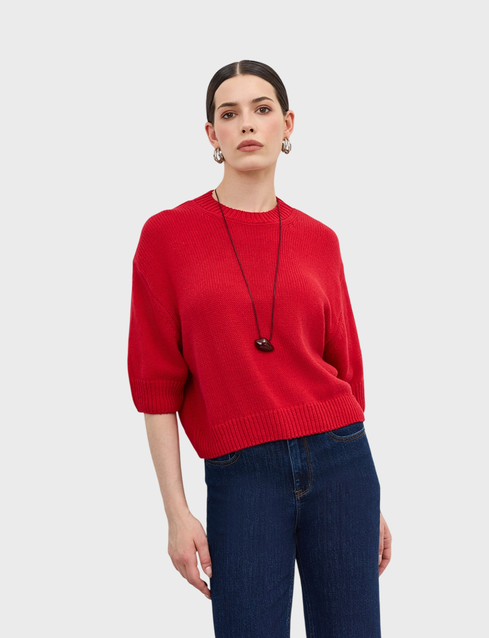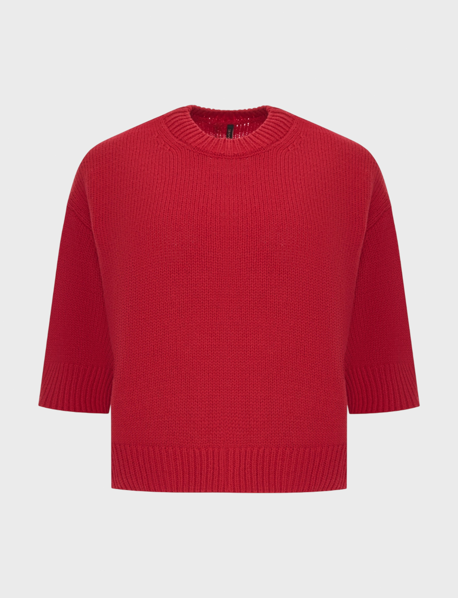 Укороченный джемпер свободного силуэта. Рукава 3/4. Круглый вырез. Спущенная линия плеч.