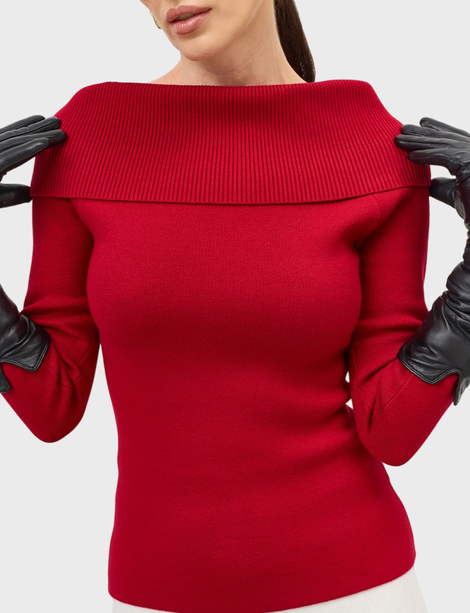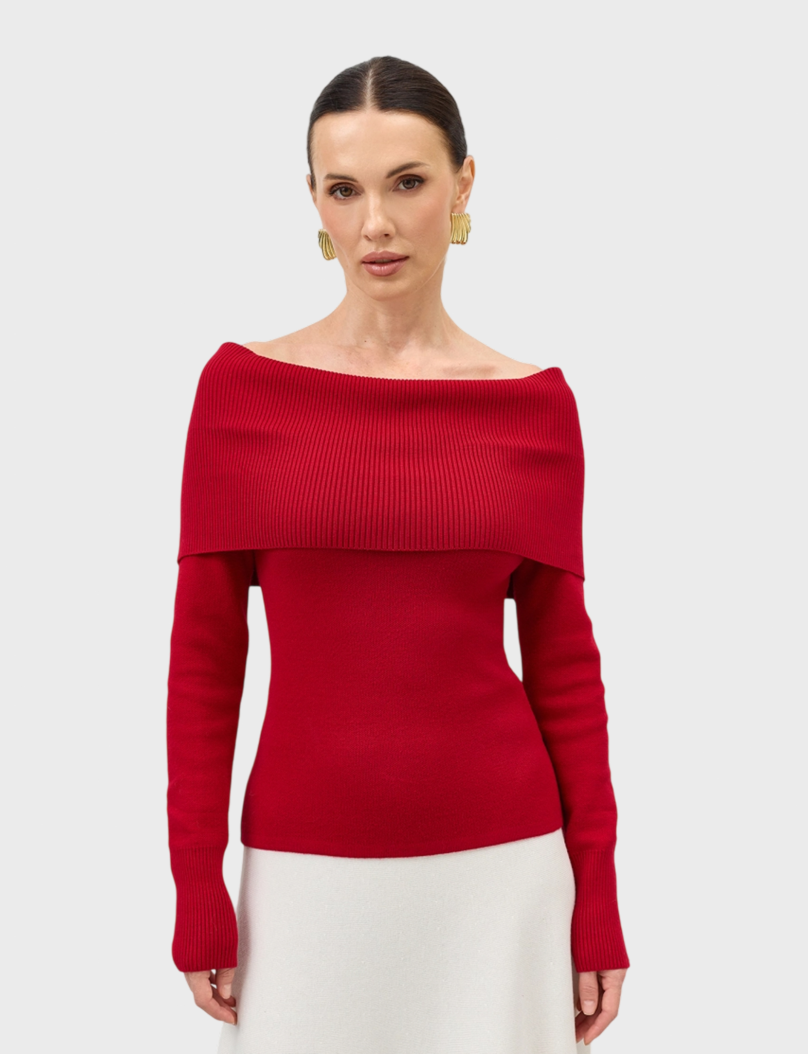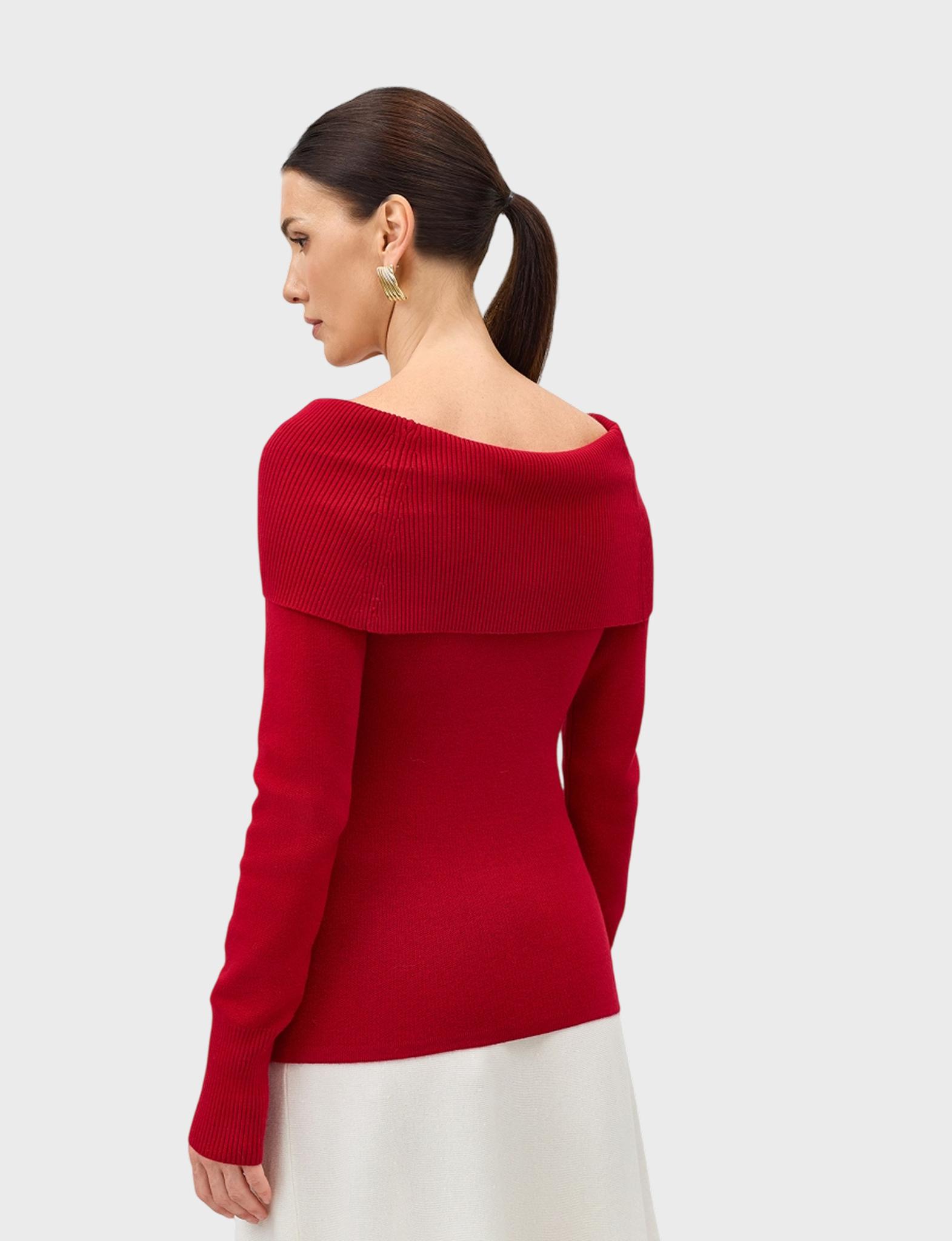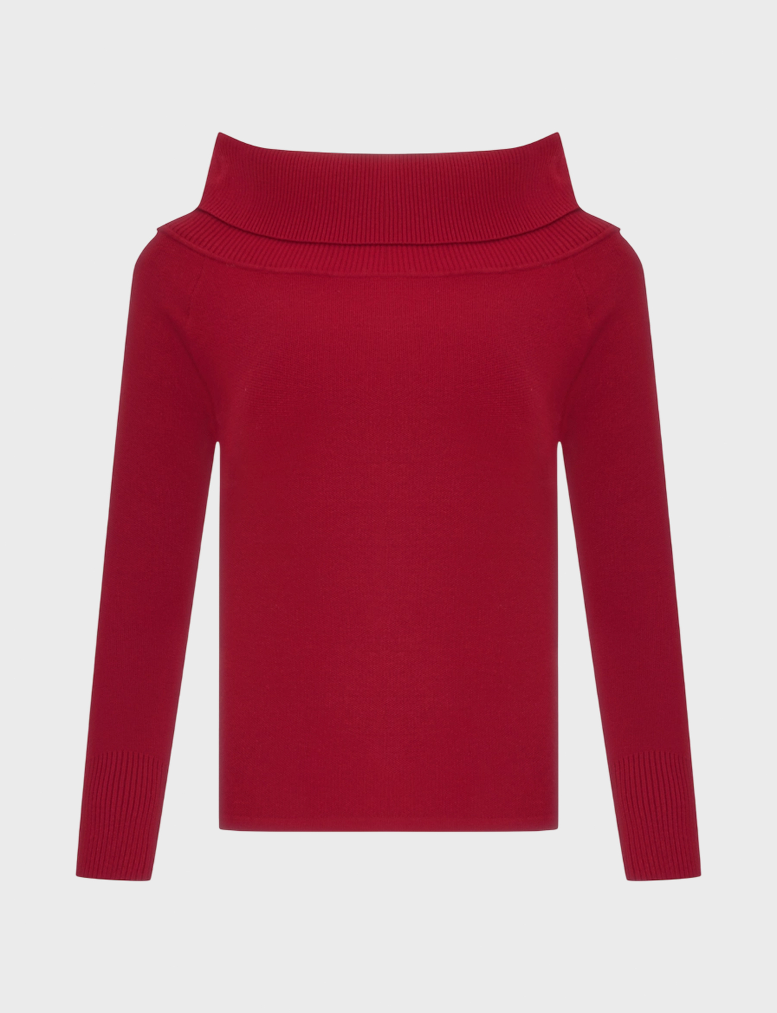 Вязаный джемпер с открытыми плечами из смесовой вискозы. Приталенный силуэт. Жакардовая плотная вязка. Отворот можно поднять на плечи.