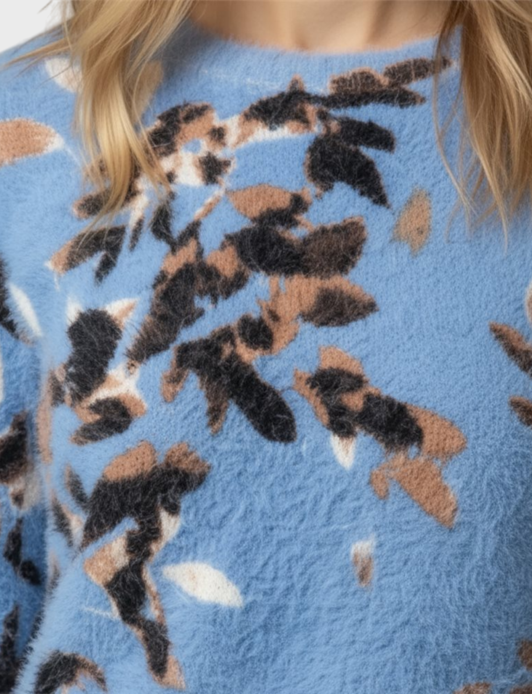 Этот джемпер сочетает в себе комфорт и нотку элегантности благодаря мягкой ворсистой поверхности и цветочному принту. Изготовленный из 60% полиамида и 40% полиакрила, он создает ощущение мягкости и уюта. Этот джемпер - универсальное изделие для повседневной носки с роскошным дизайном.