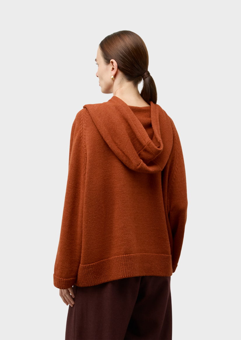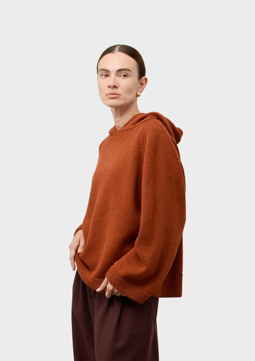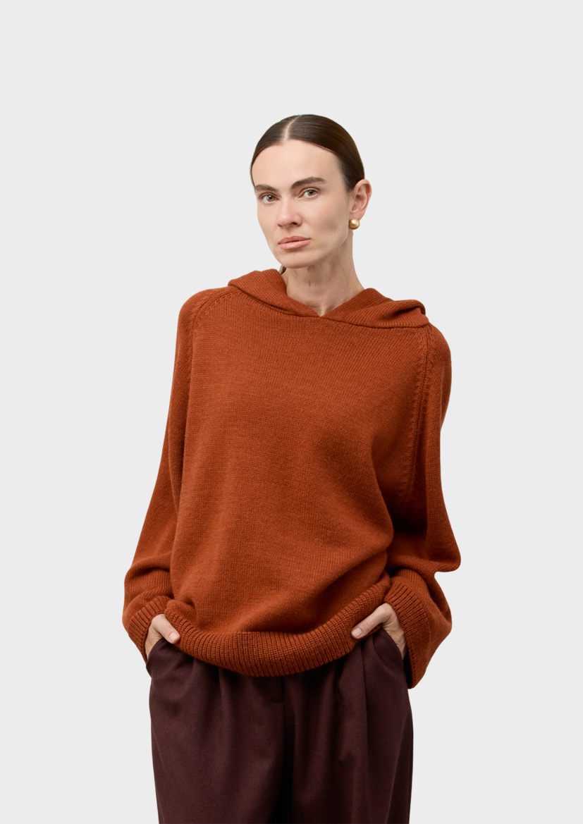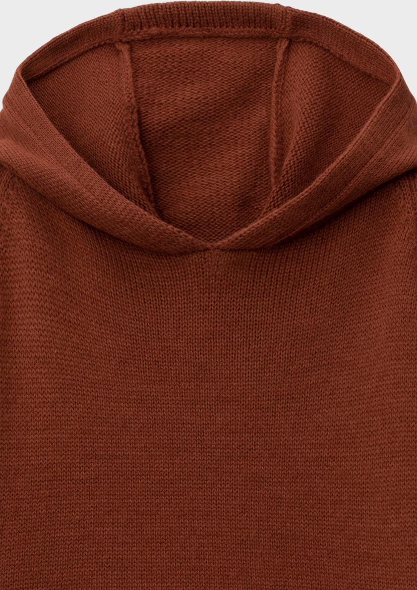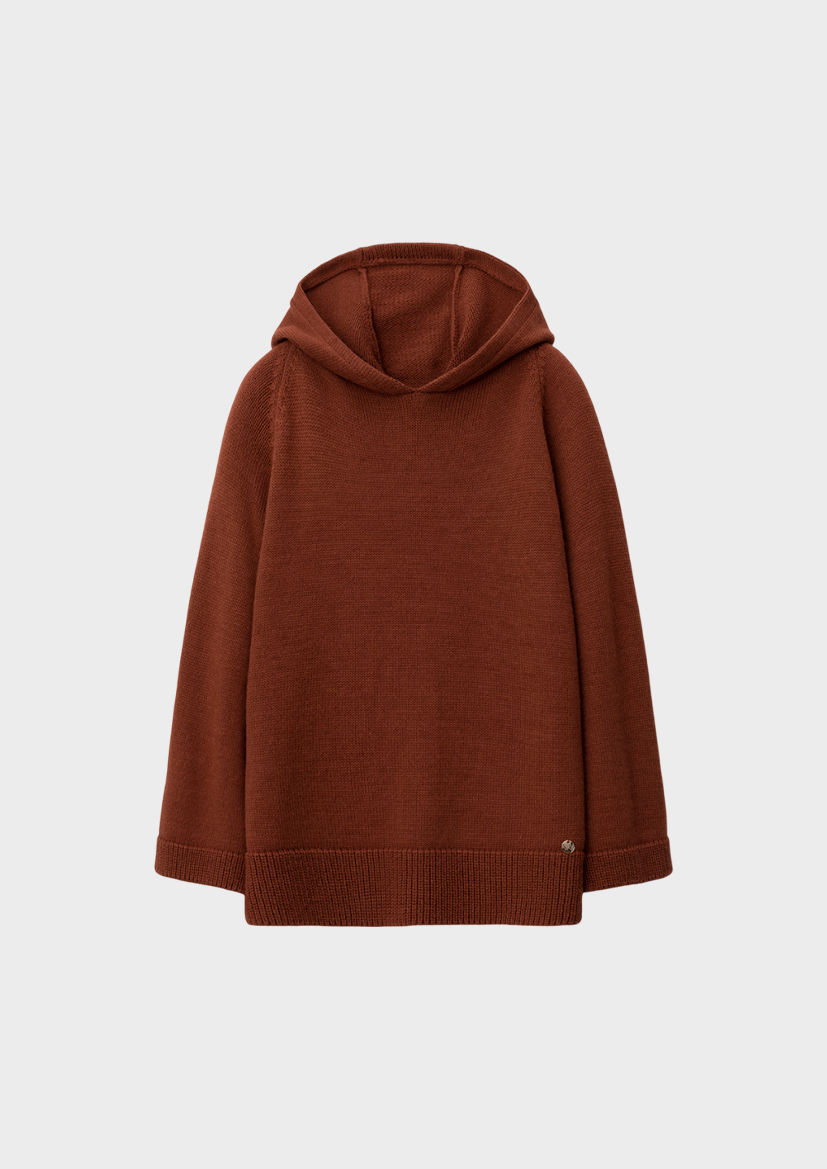 Мягкий джемпер с капюшоном, изготовленный из высококачественной пряжи. Уникальное сочетание шерсти и акрила дарит ощущение уюта, приятно прилегает к телу, является гипоаллергенным и отлично сохраняет форму. Капюшон добавляет стильную особенность изделию и становится практичным дополнением для ветренной погоды.