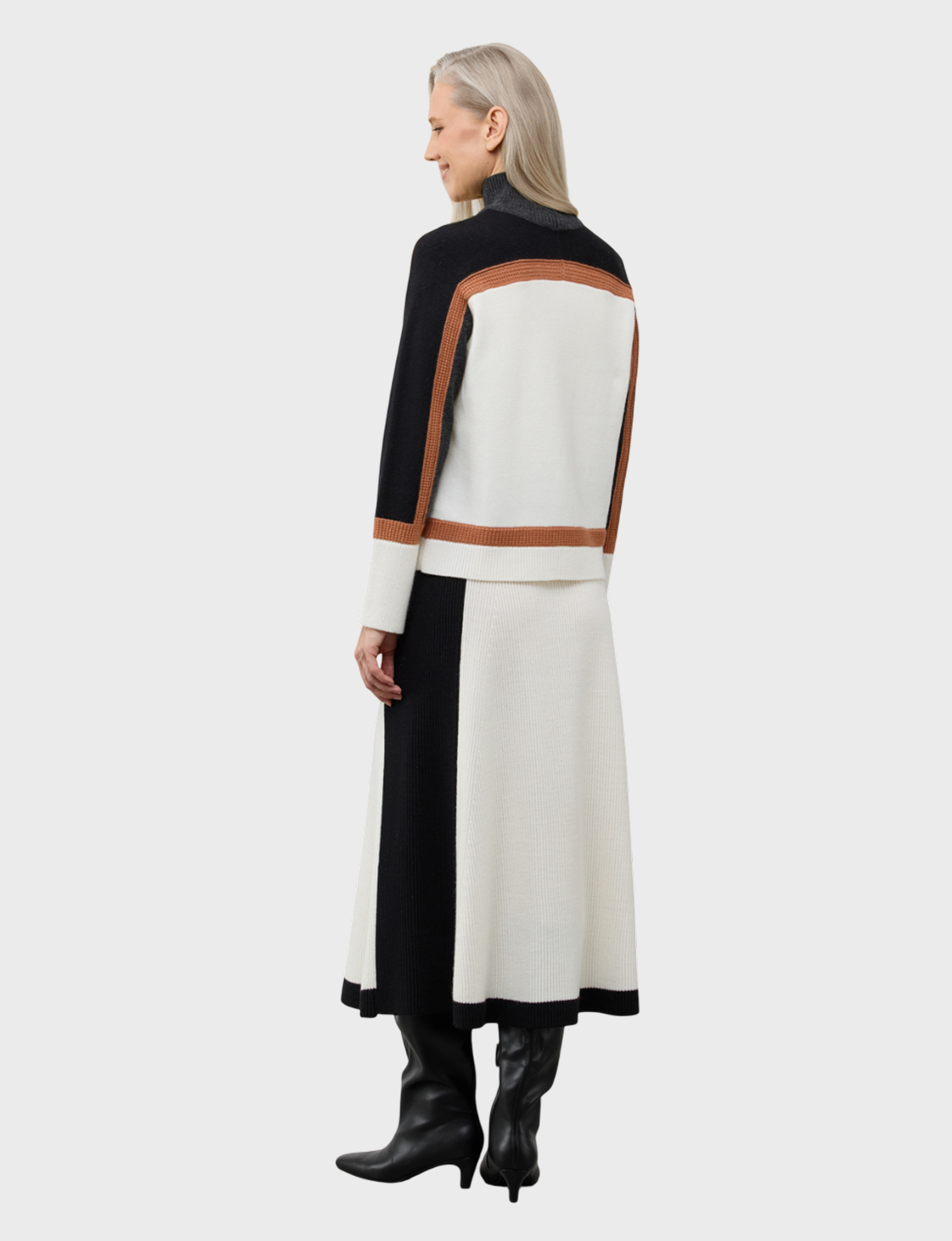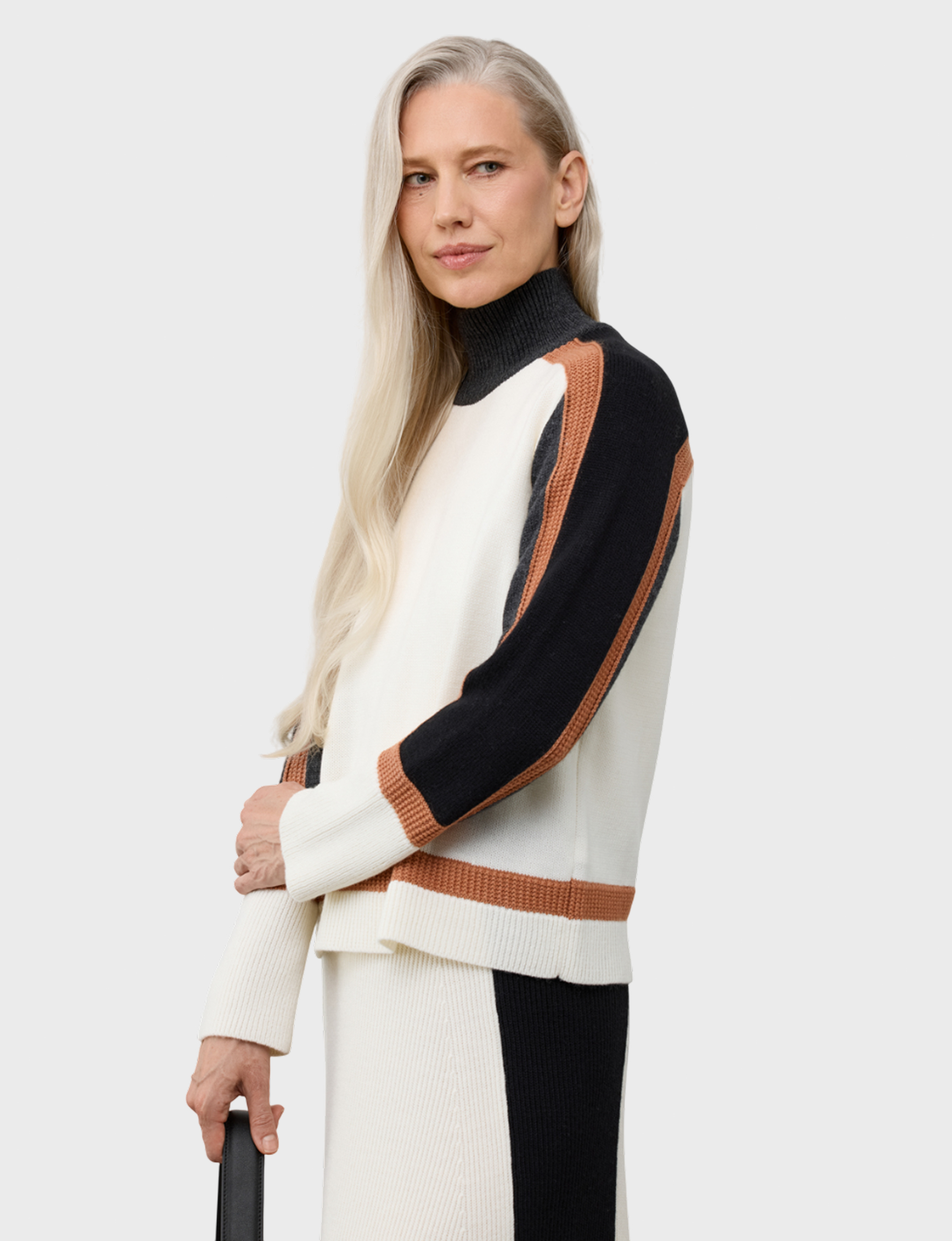 Мягкий вязаный джемпер из премиальной пряжи, созданный с использованием инновационной технологии смешанного волокна. Деликатное сочетание шерсти и акрила обеспечивает непревзойденный комфорт: изделие нежно облегает фигуру, гарантирует мягкость прикосновения и сохраняет безупречную форму даже после длительной носки