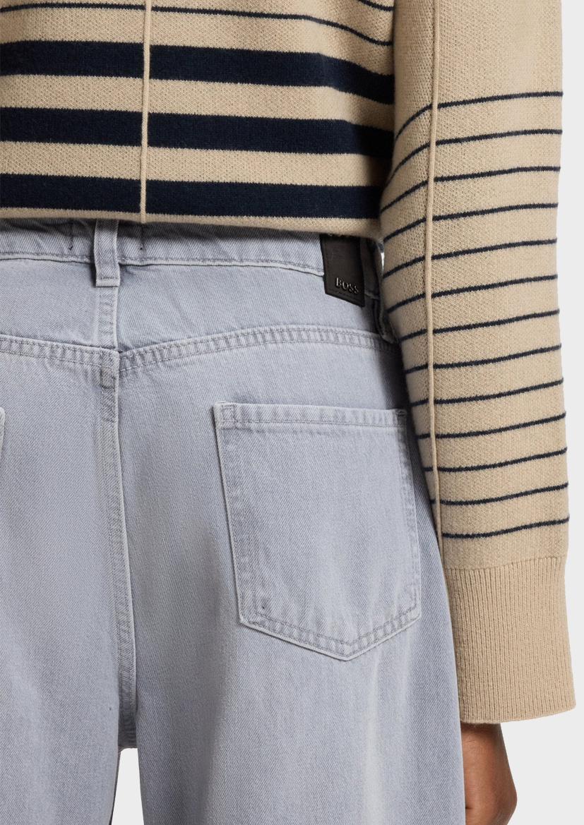Женские джинсы BOSS, выполненные из мягкого на ощупь плотного денима, имеют уникальный серо-голубой оттенок. Современный свободный крой и аутентичная отделка. В состав этого изделия частично входит органический хлопок.